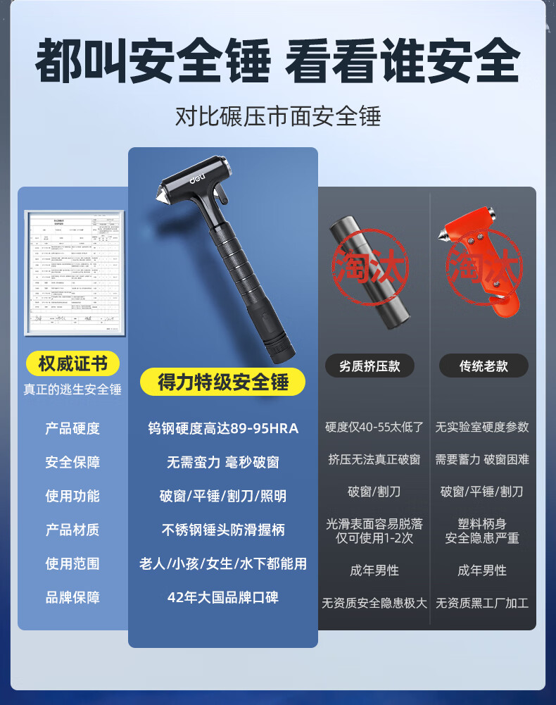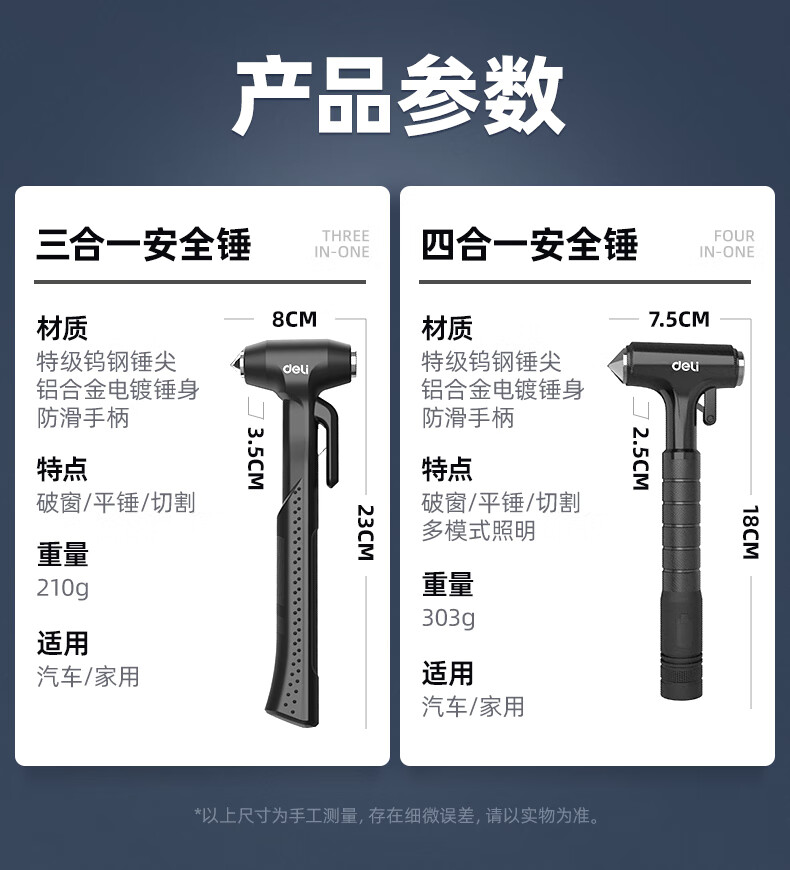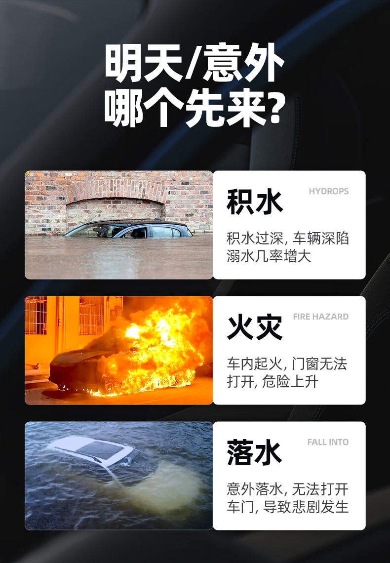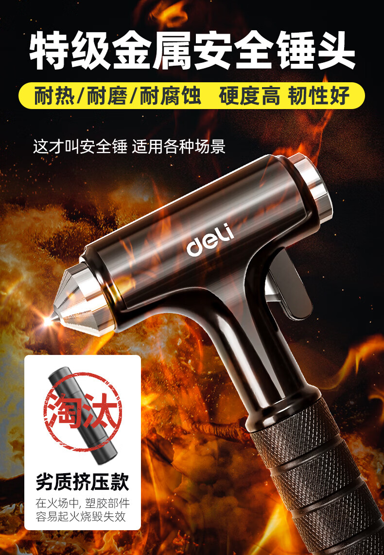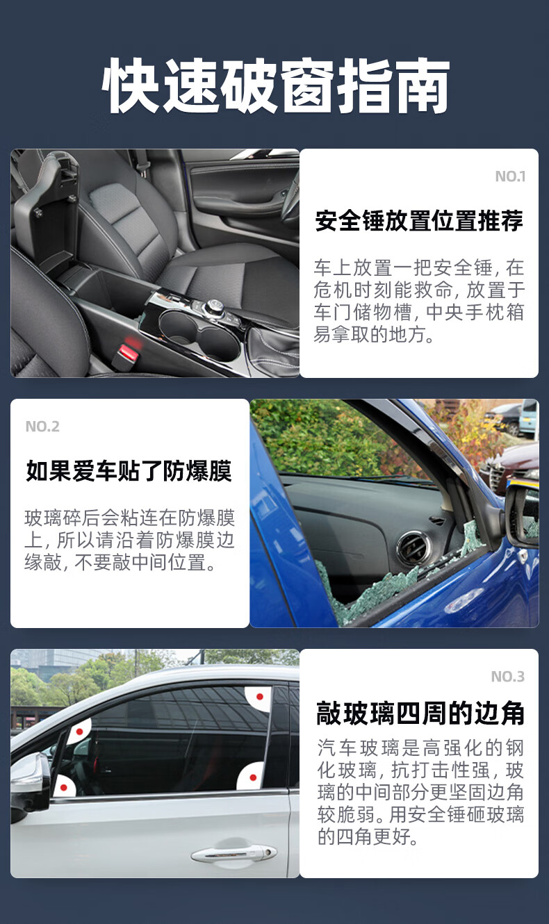 Jingyouyu German safety hammer, car window-breaking artifact with cutter, fire emergency life-saving hammer for escaping from broken glass in the car, special grade tungsten steel, black three-in-one