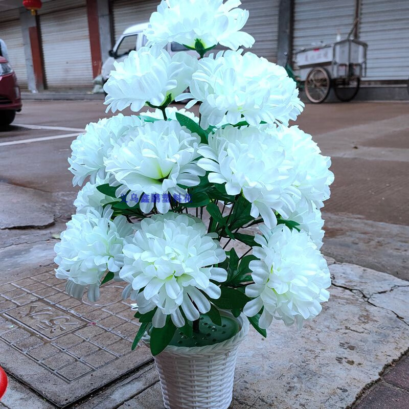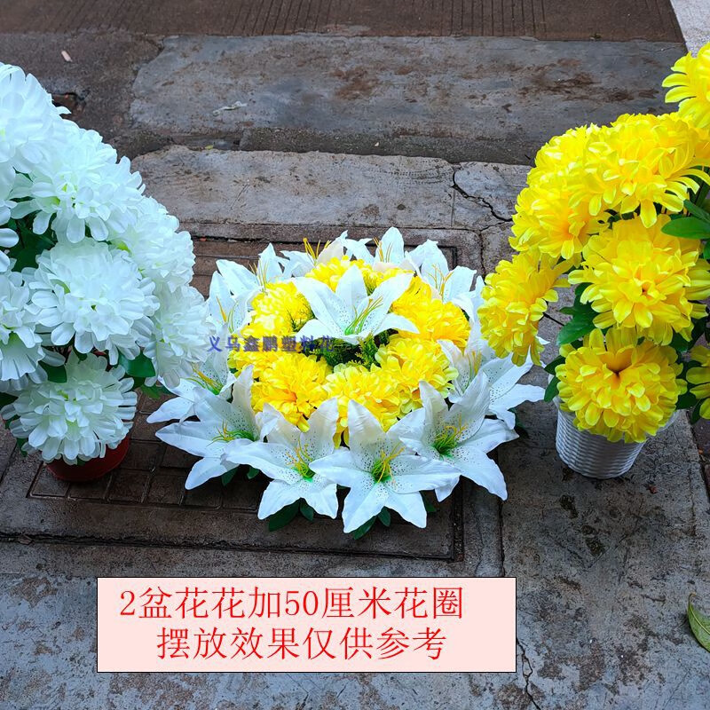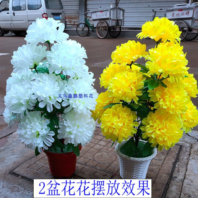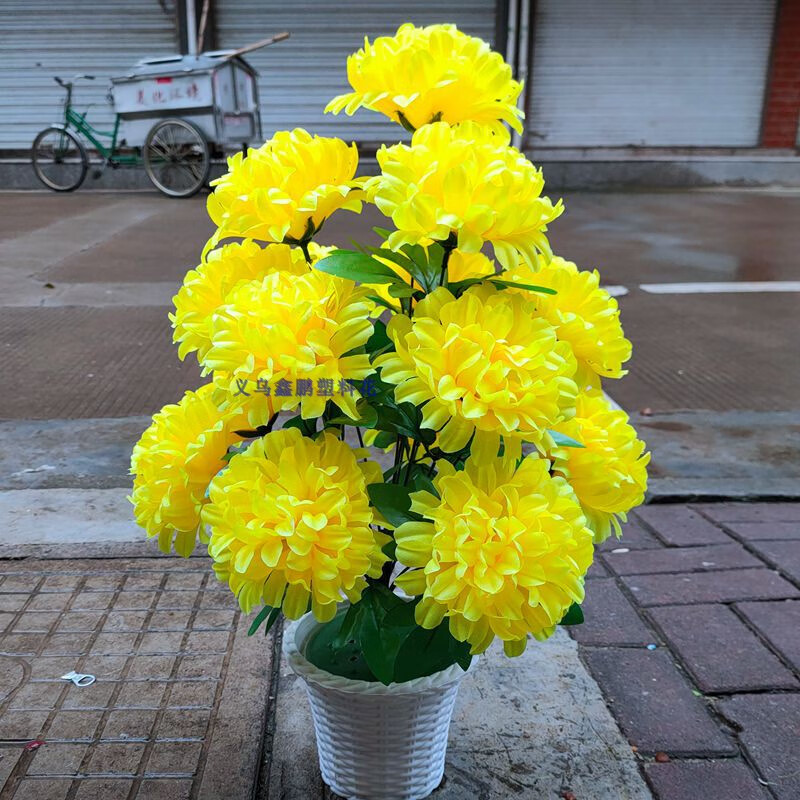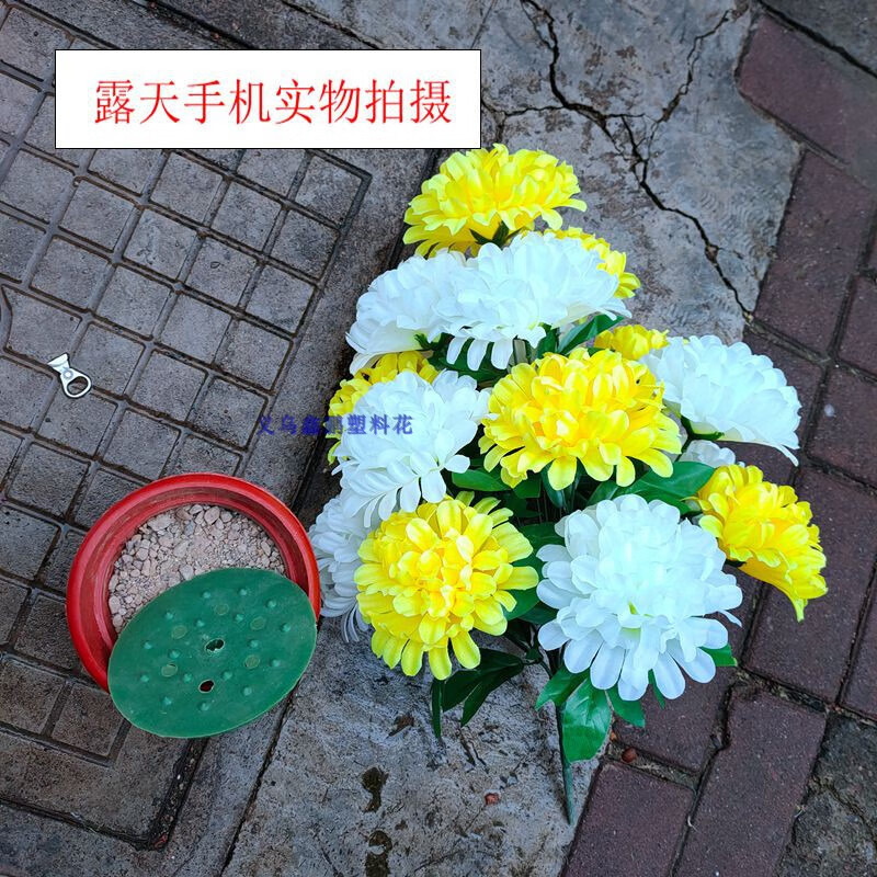 Qingming Tomb Sweeping Fake Chrysanthemum Sacrifice Artificial Flower Cemetery Place Everlasting Flower Graveside Flower Decoration Fabric Juana Yellow Bouquet Does Not Include Pots