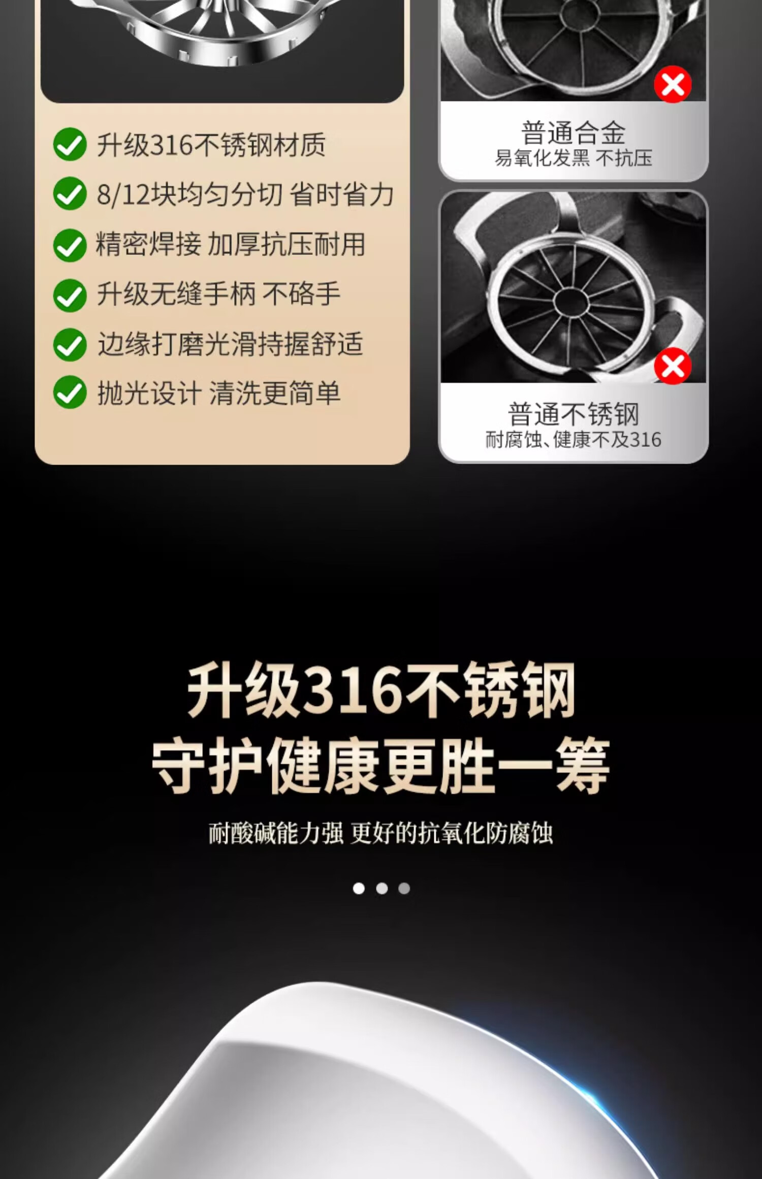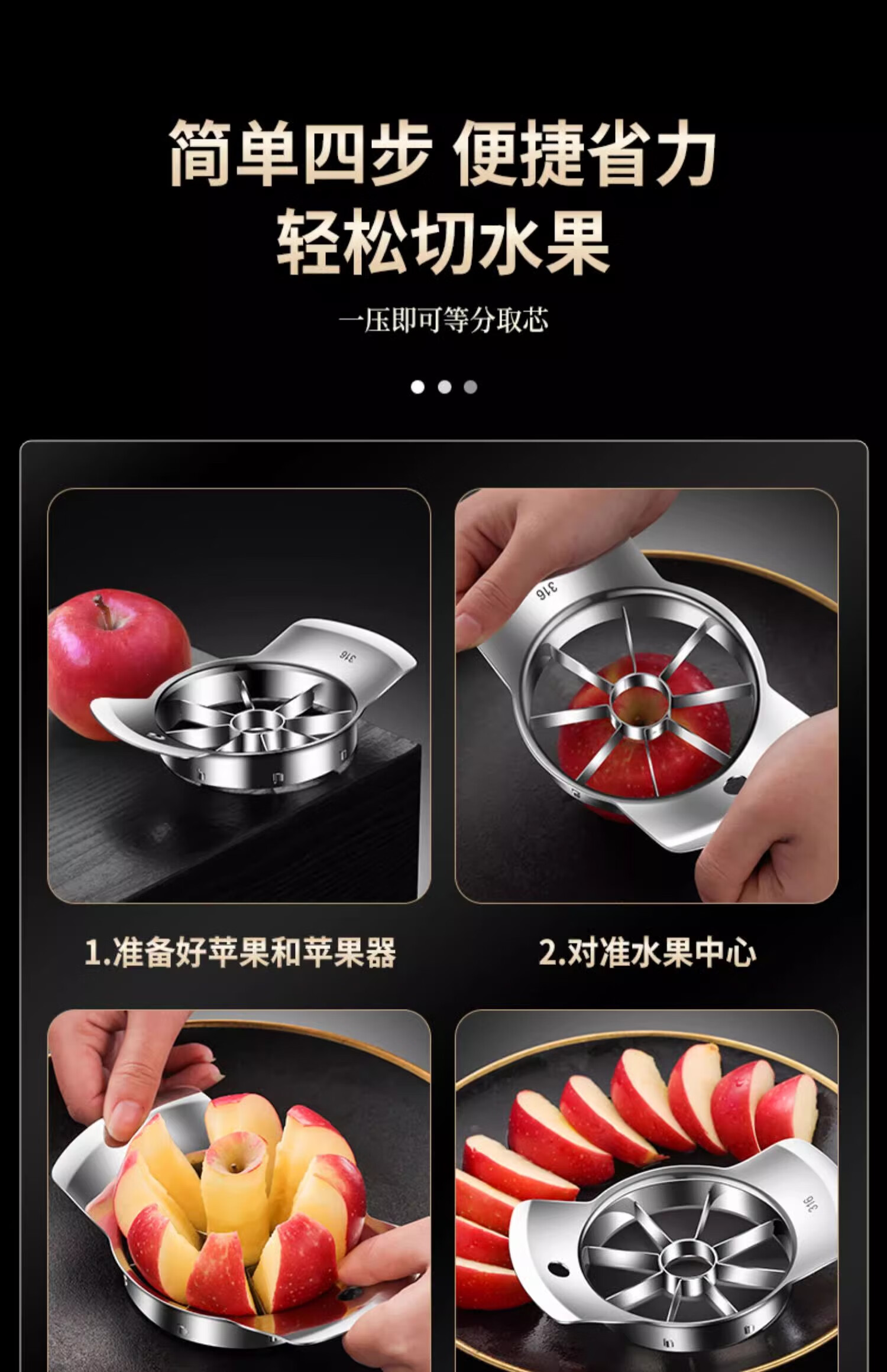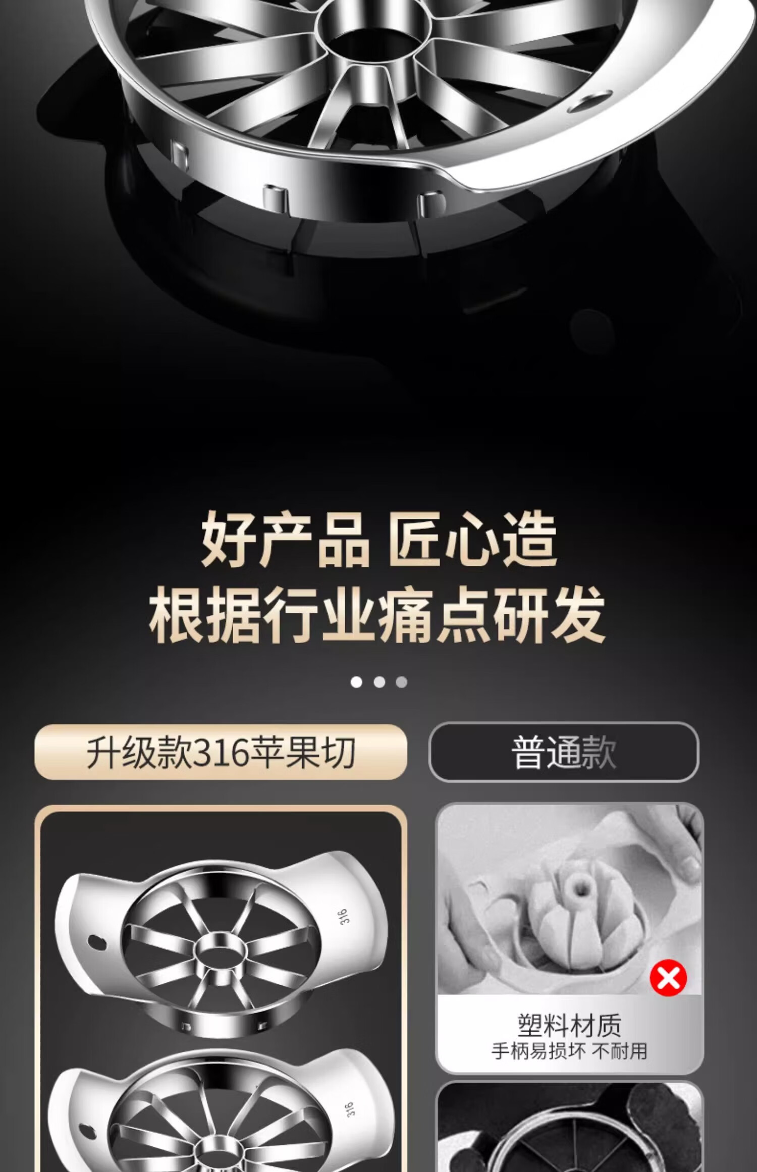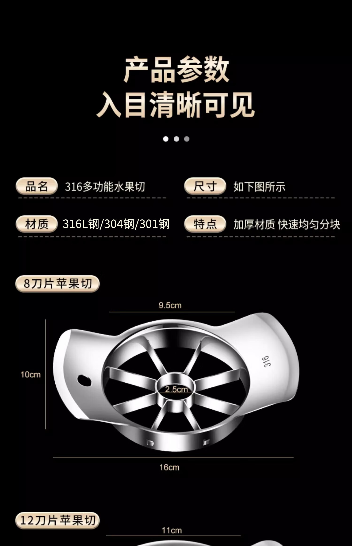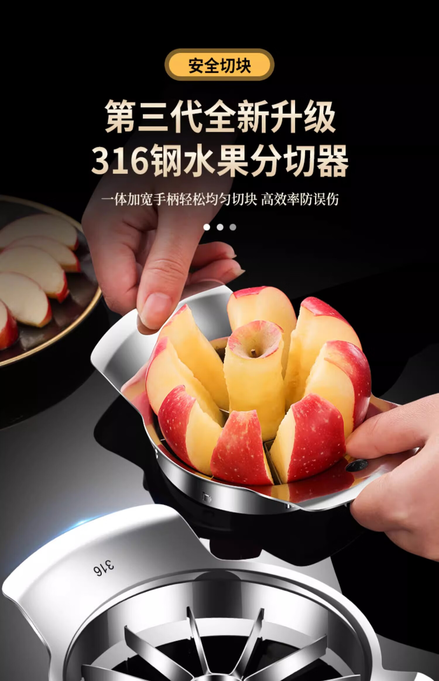 CM live316 stainless steel apple slicer multi-functional household core remover artifact fruit cutting apple artifact 316 steel apple slicer (12 points)