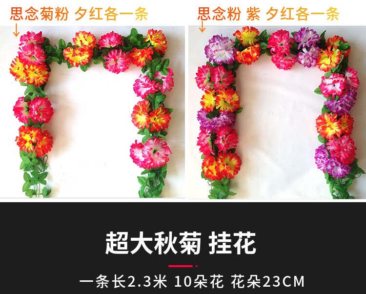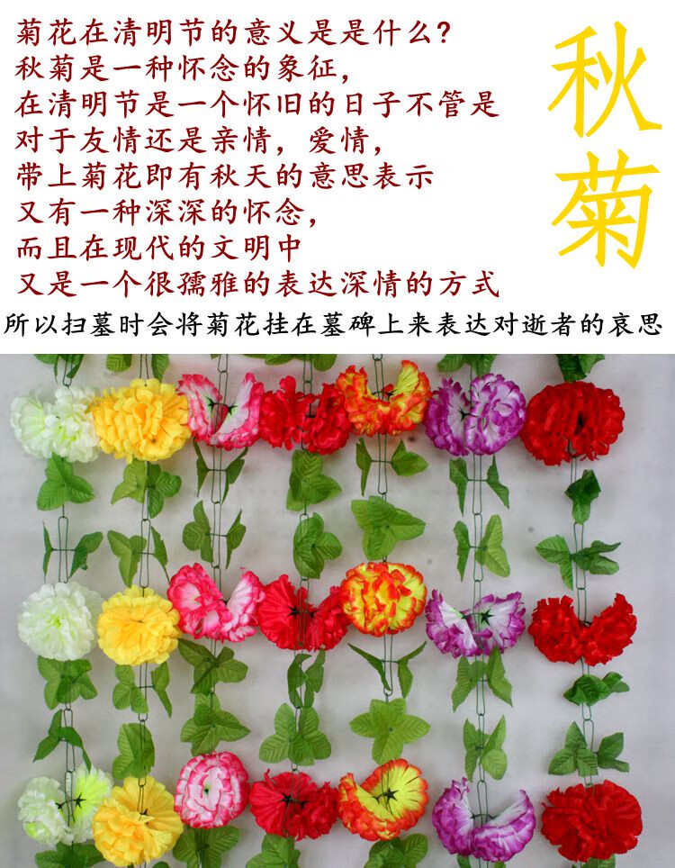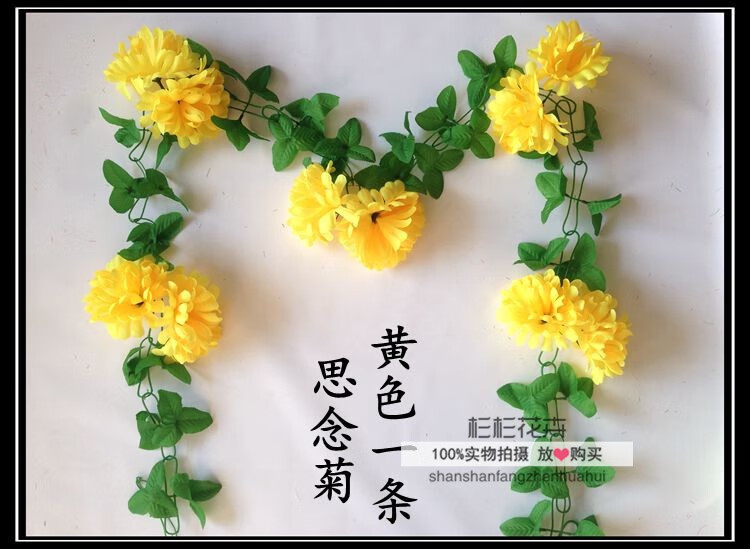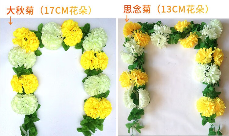 Simulated chrysanthemum strips, flower vines, cemetery tombstones, hanging flowers, decorative silk flowers, artificial flowers, plastic pull flowers, Qingming memorial 23CM extra large autumn chrysanthemum, yellow and white, one each