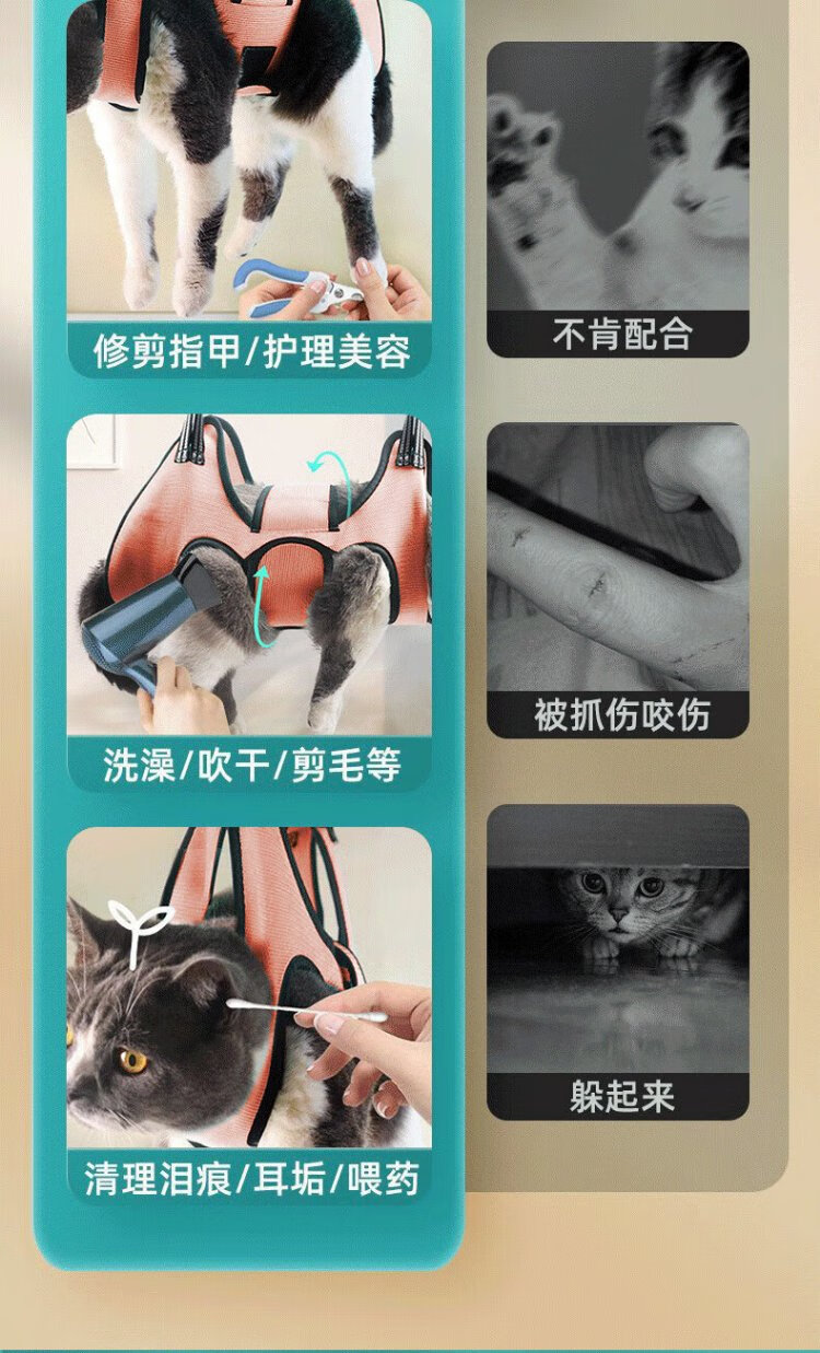 Dipur cat nail clipper fixed bag cat pet grooming hammock artifact bag hanging harness control washable cat bag pocket anti-scratch* pink M recommended 20Jin Jin is equal to 0.5kg within