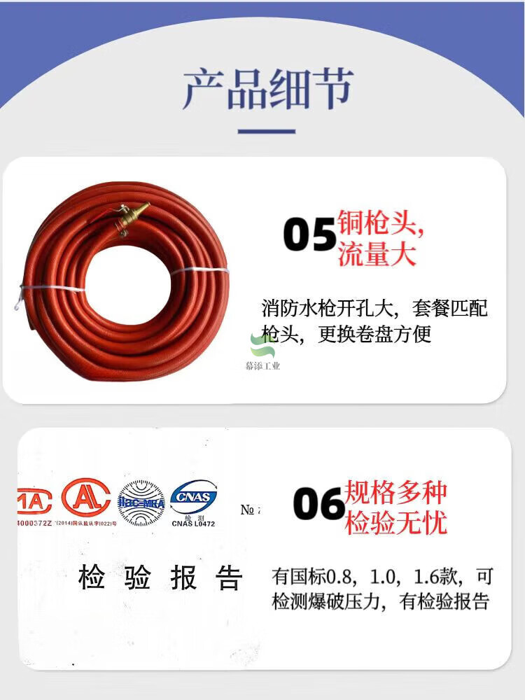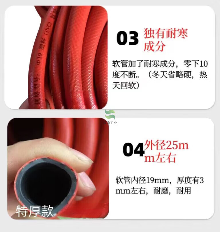 National standard fire reel self-rescue hose thickened extra thick high pressure cold resistant 1 meter 20/25/30 meters 6 branch pipe inner diameter 19 mm 30 meters thickened hose (2 buckles included)