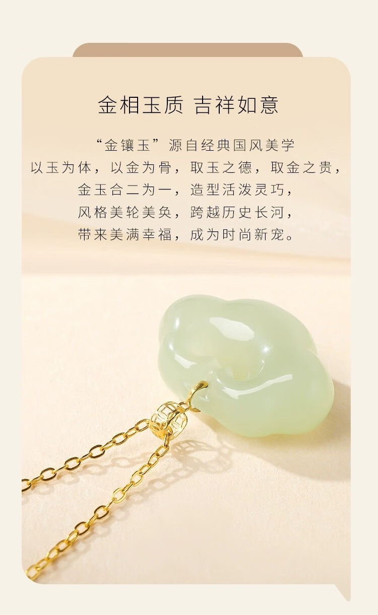 Chihuan Hotan Ruyi Xiangyun Pendant Women's New Chinese Style S925 Silver Necklace 18k Gold Inlaid Peace Clavicle Chain Hotan Jade Ruyi 18k Gold Buckle Single Pendant Mini