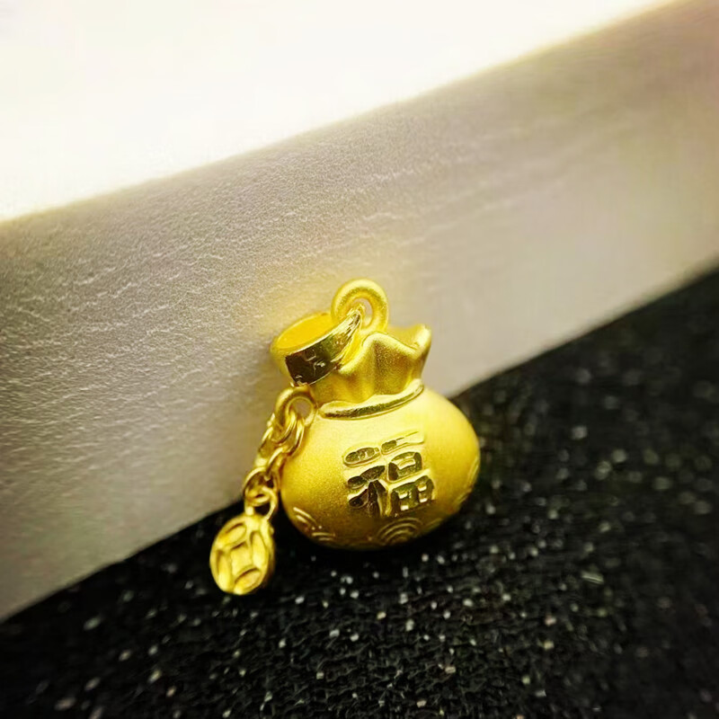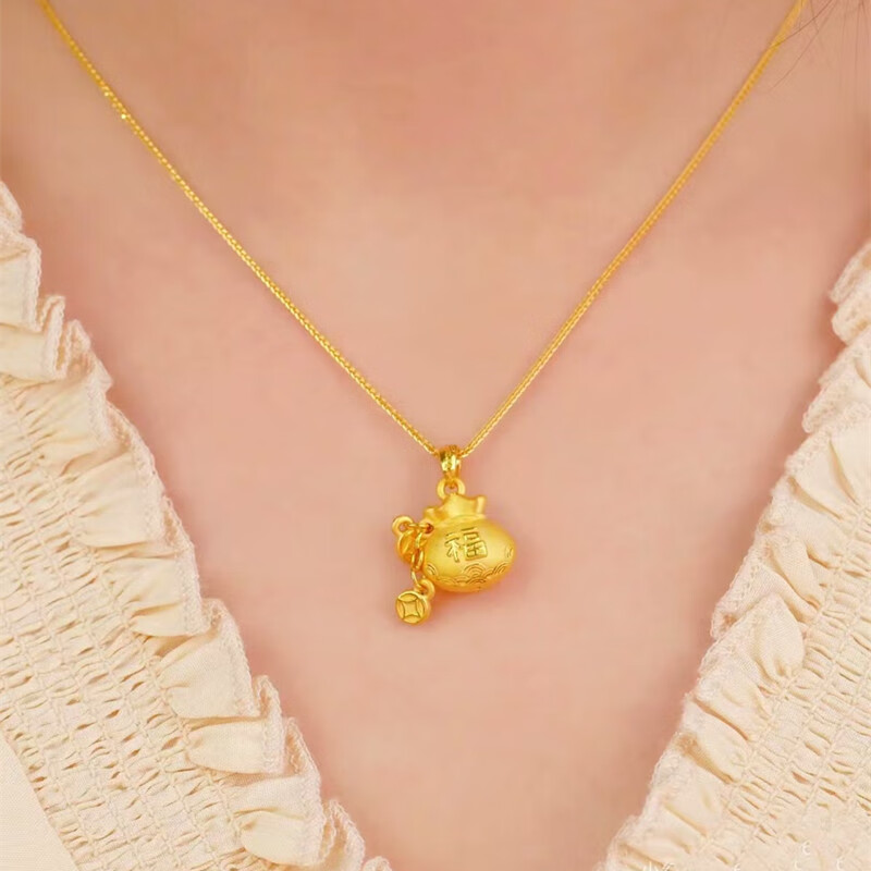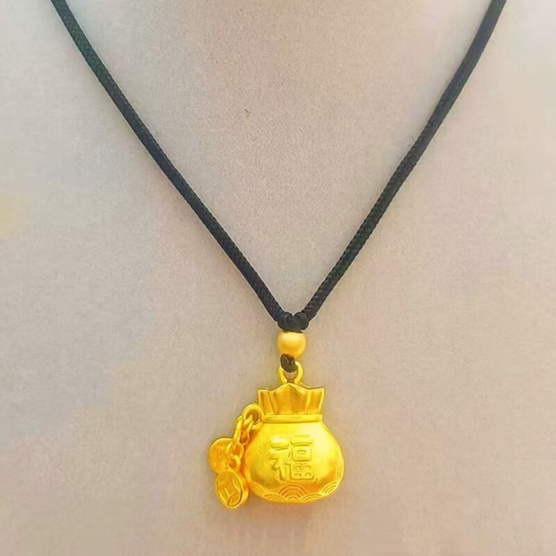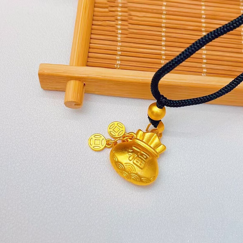 Chihuan's new versatile small lucky bag 18K gold pendant for women's transfer ancient money coin lucky bag imitation 999 gold necklace gift Kirin lucky bag pendant + lanyard