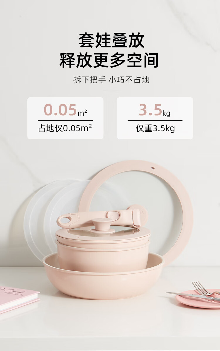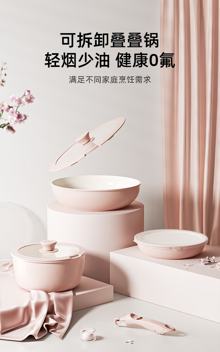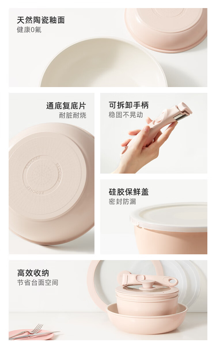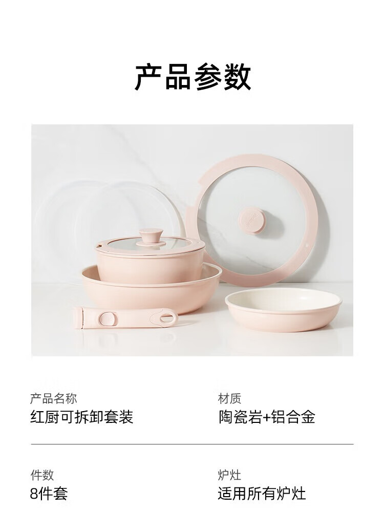 Hongchu ceramic removable handle non-stick pot household pot set non-stick pot full set wok soup pot pan frying pan detachable stacking pot 8-piece set