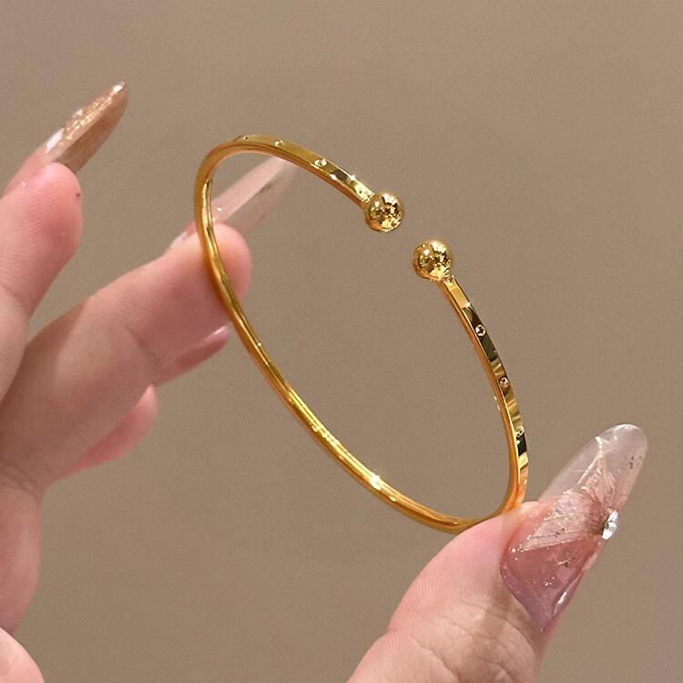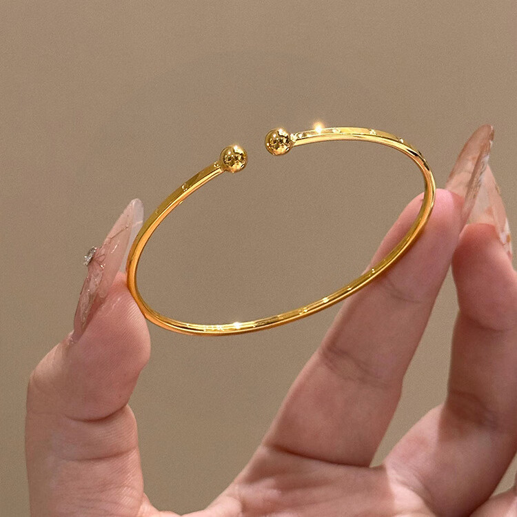 France's Michelle France Michelle Aperture Round Bead Bracelet 18K Gold Plain Circle Smooth Living Bracelet 18K Gold Bracelet Thin and Elegant