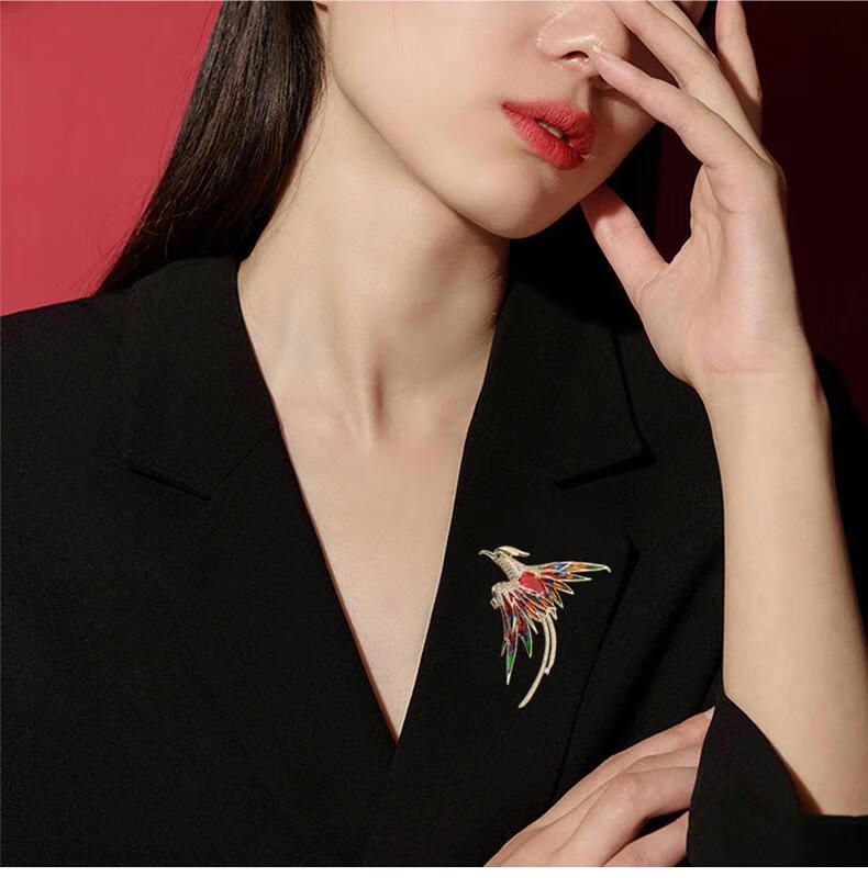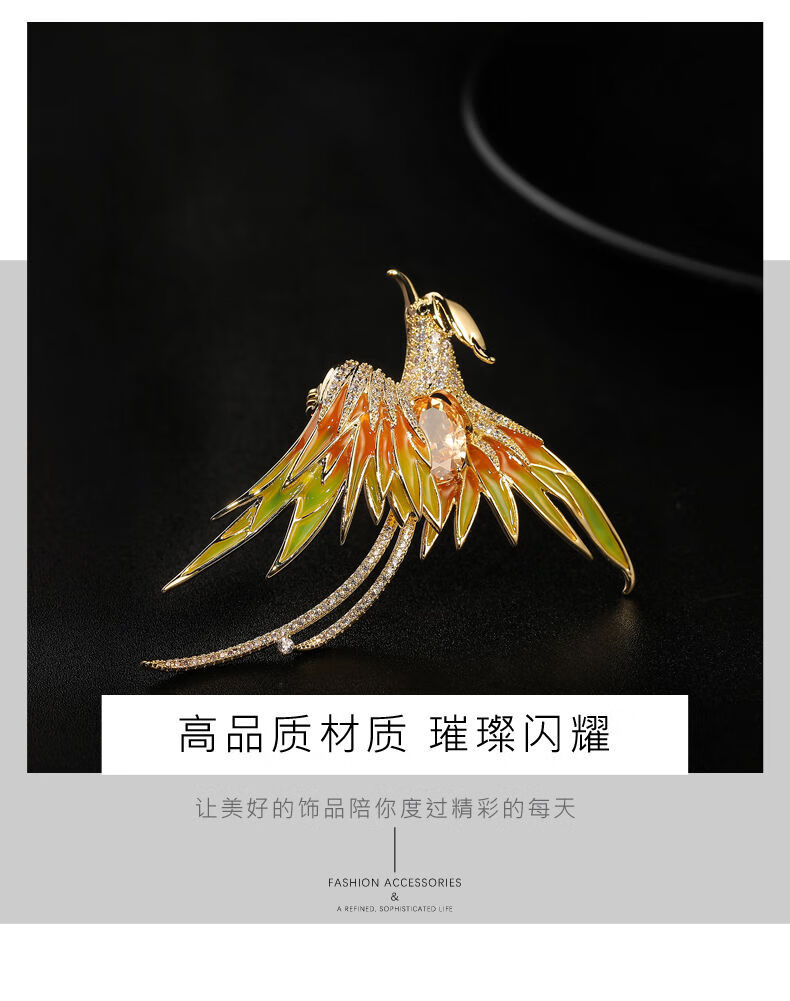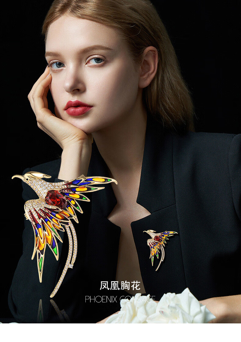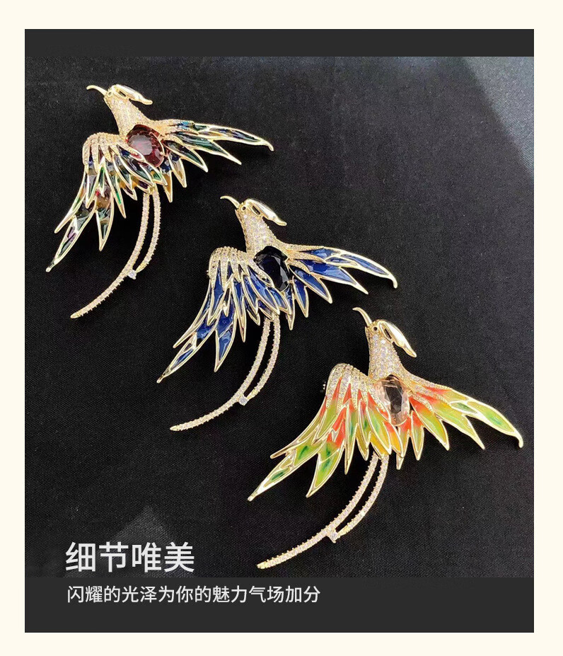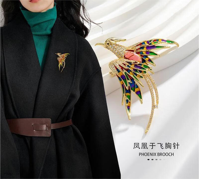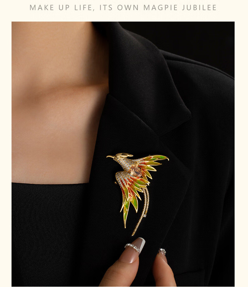 Juke high-end phoenix brooch 2025 new fashion light luxury niche corsage brooch high-end suit female temperament accessories Korean version phoenix brooch green