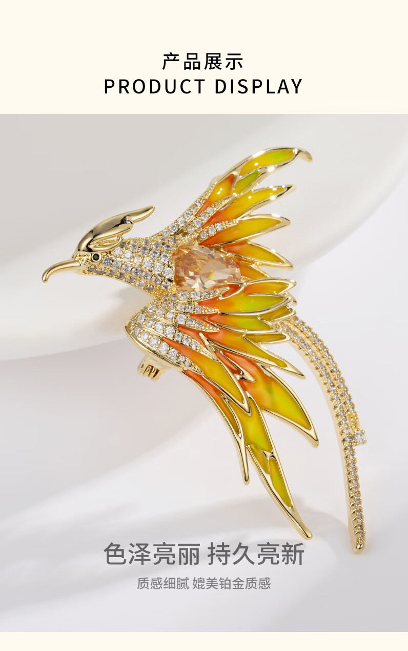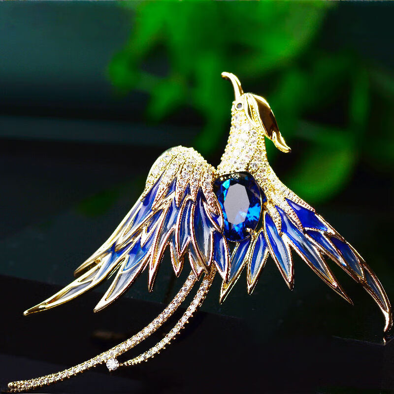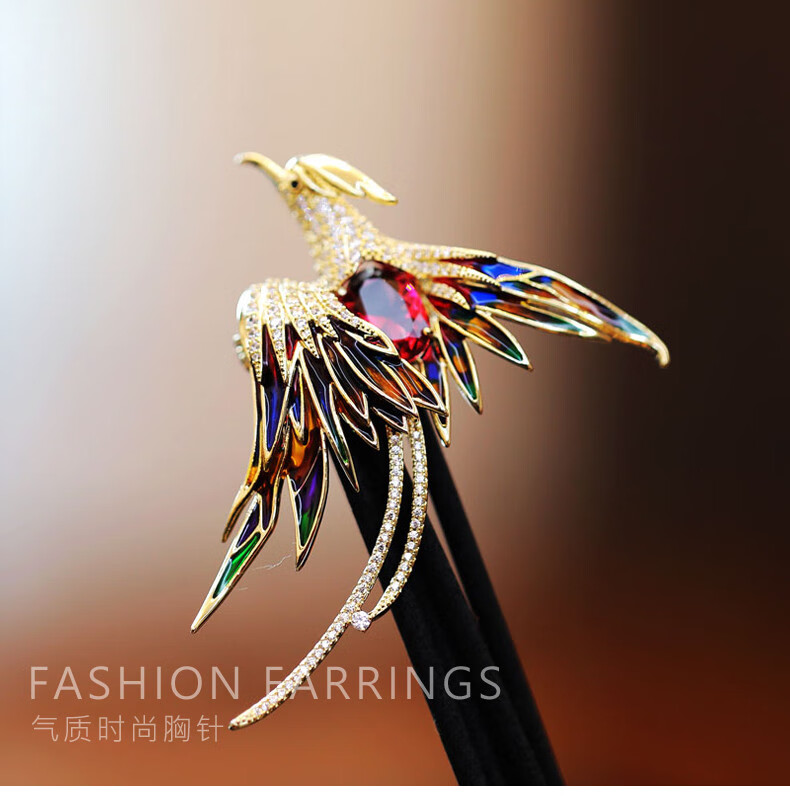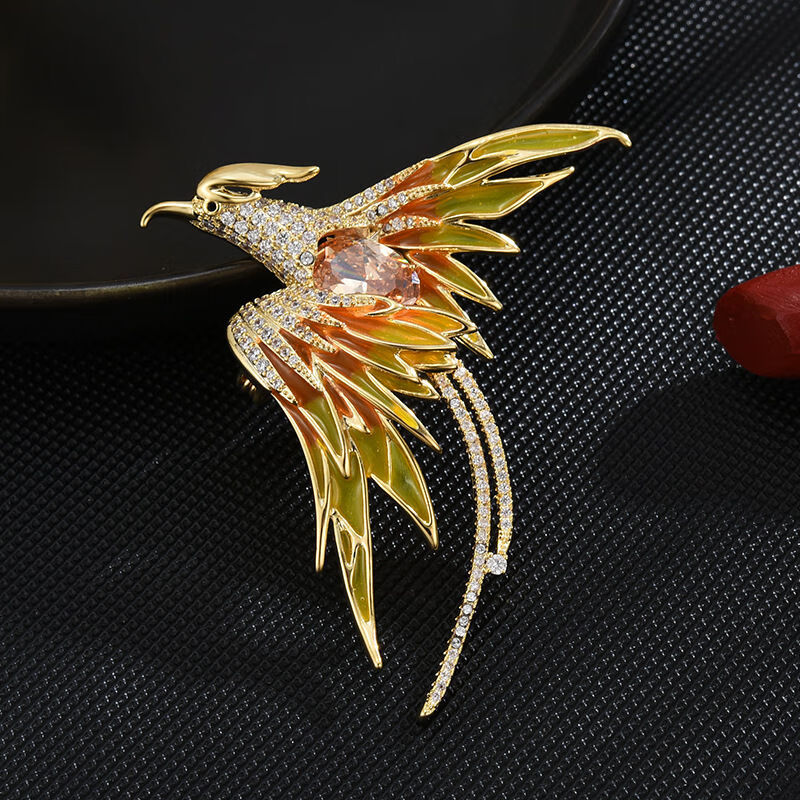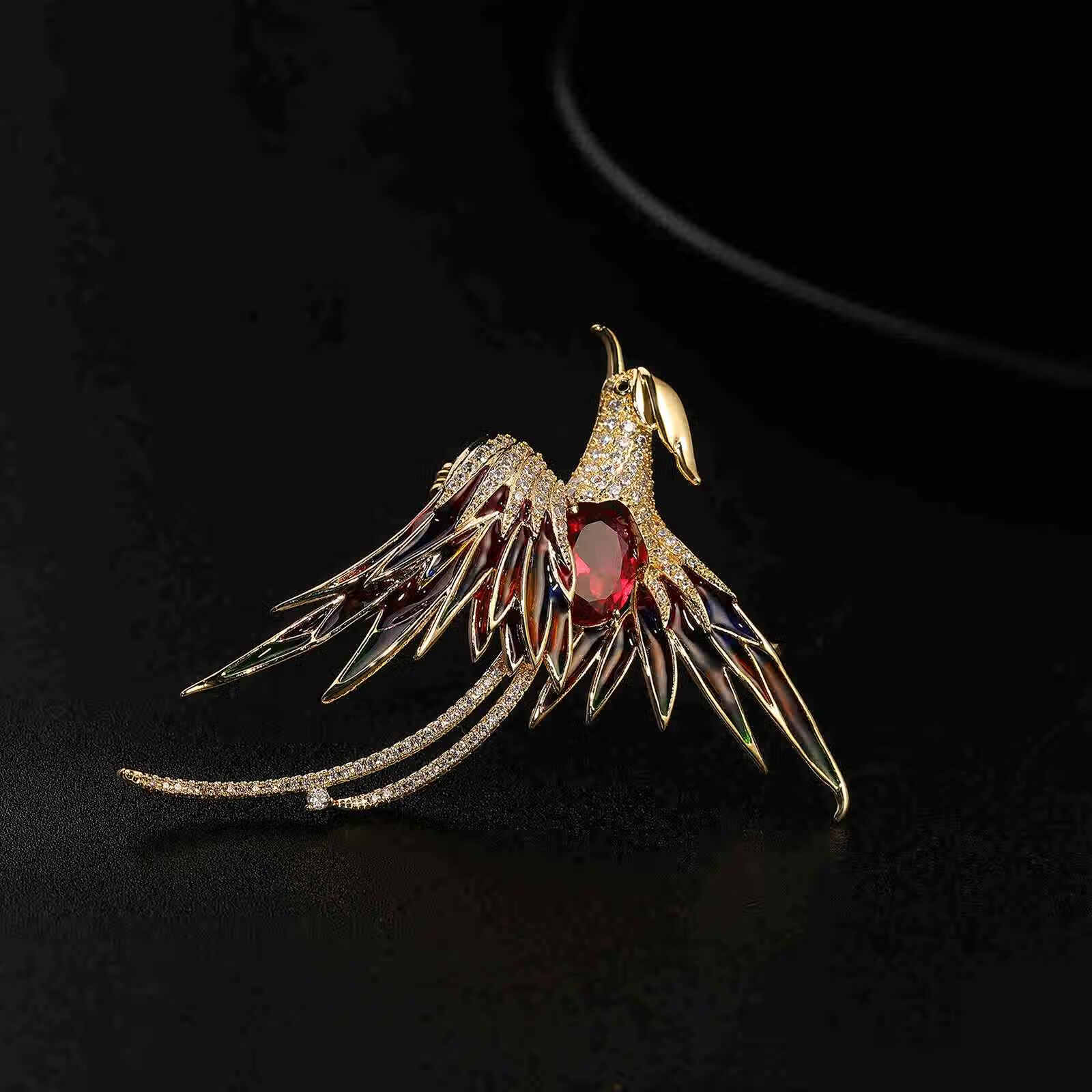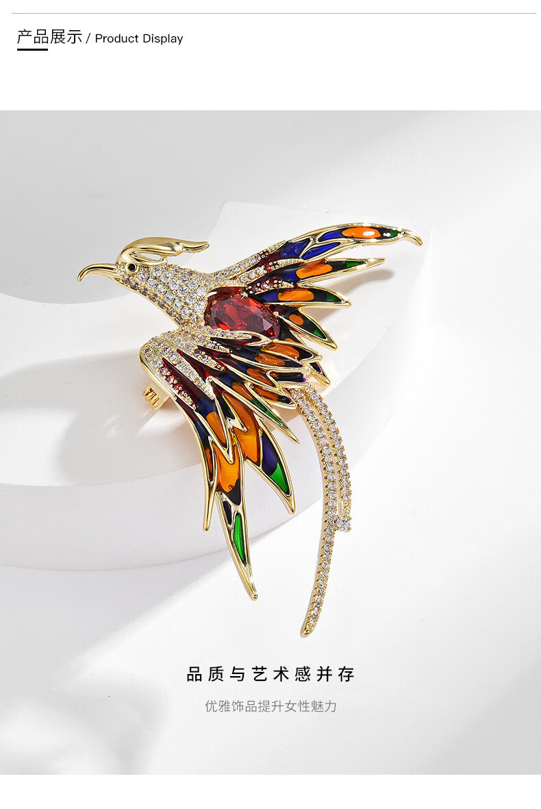 Juke high-end phoenix brooch 2025 new fashion light luxury niche corsage brooch high-end suit female temperament accessories Korean version phoenix brooch green