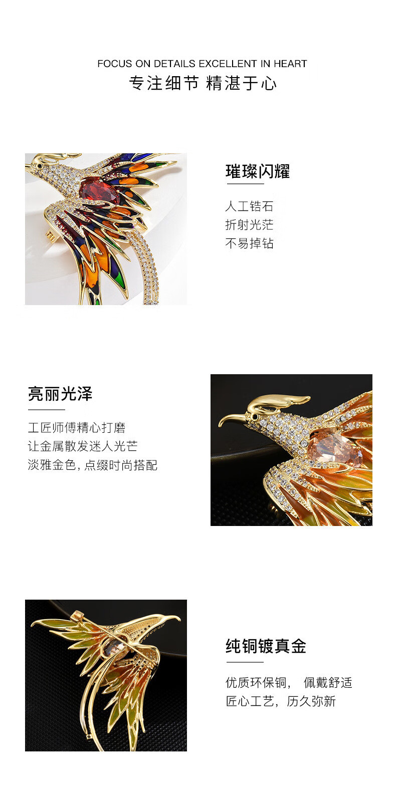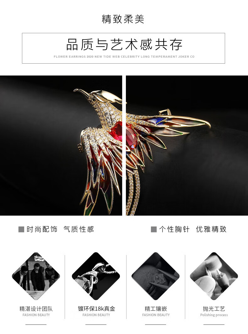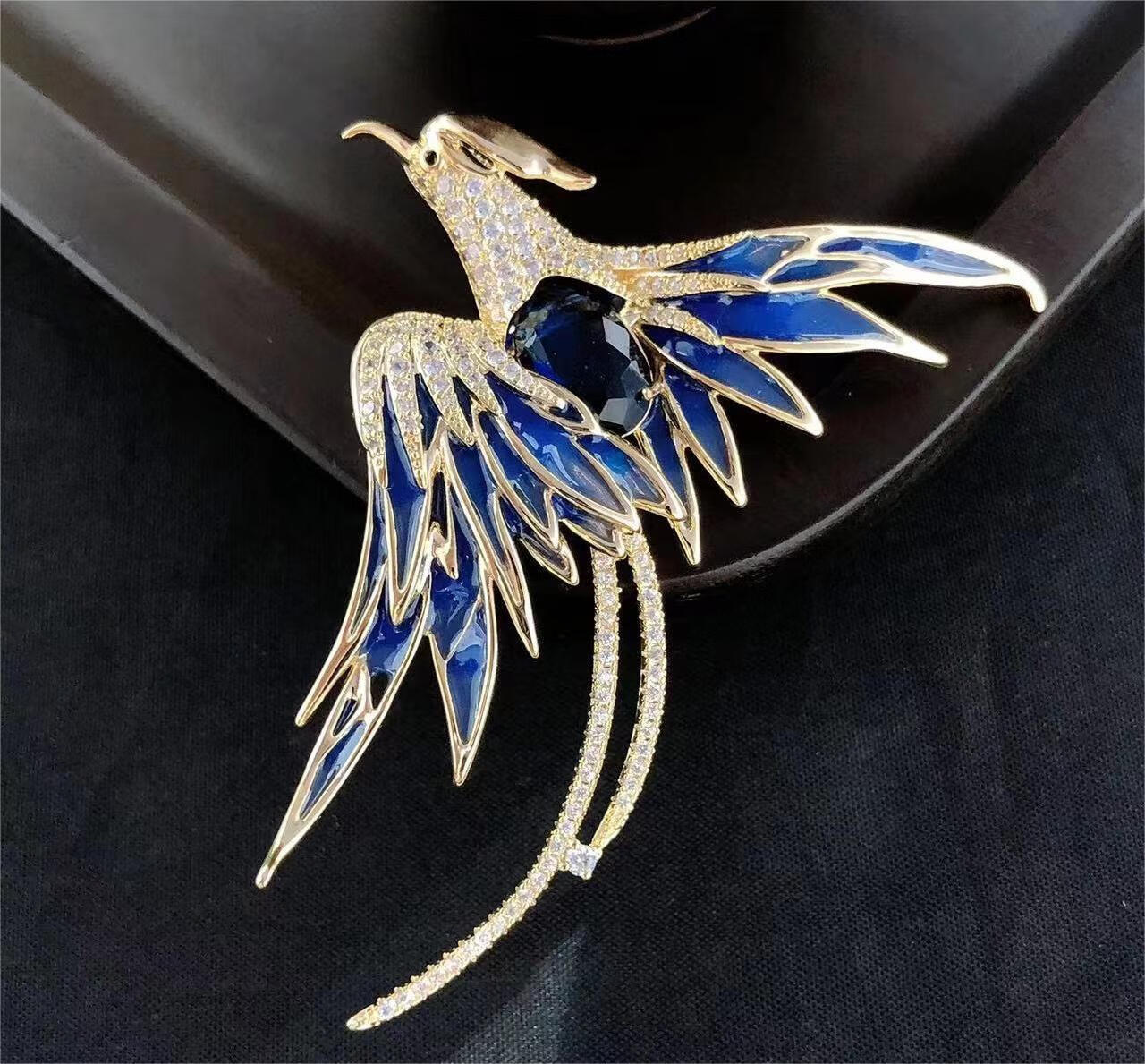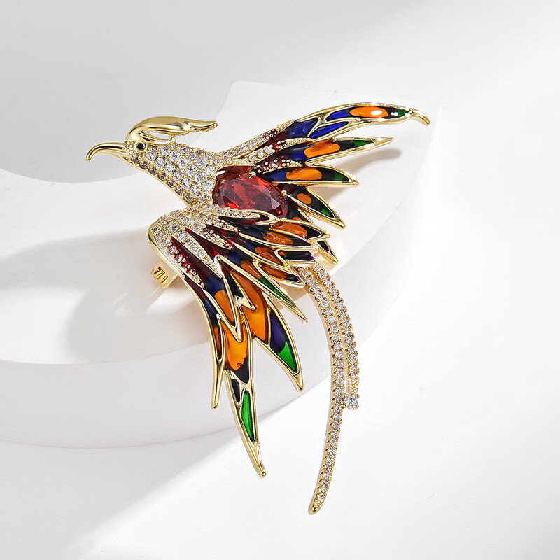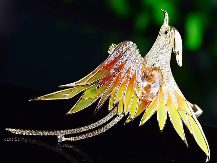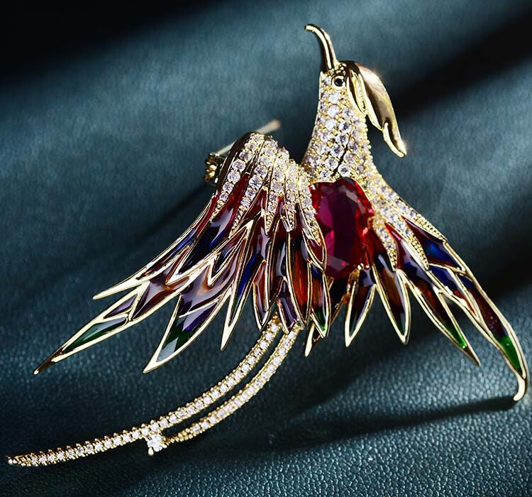 Juke high-end phoenix brooch 2025 new fashion light luxury niche corsage brooch high-end suit female temperament accessories Korean version phoenix brooch green