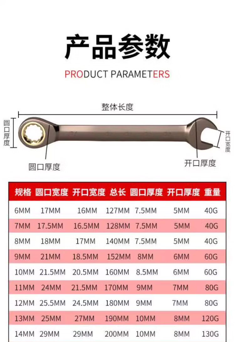 Open ratchet wrench fast dual-purpose thorn wheel thorn wheel thorn small two-way double-headed gear sleeve gold 17mm