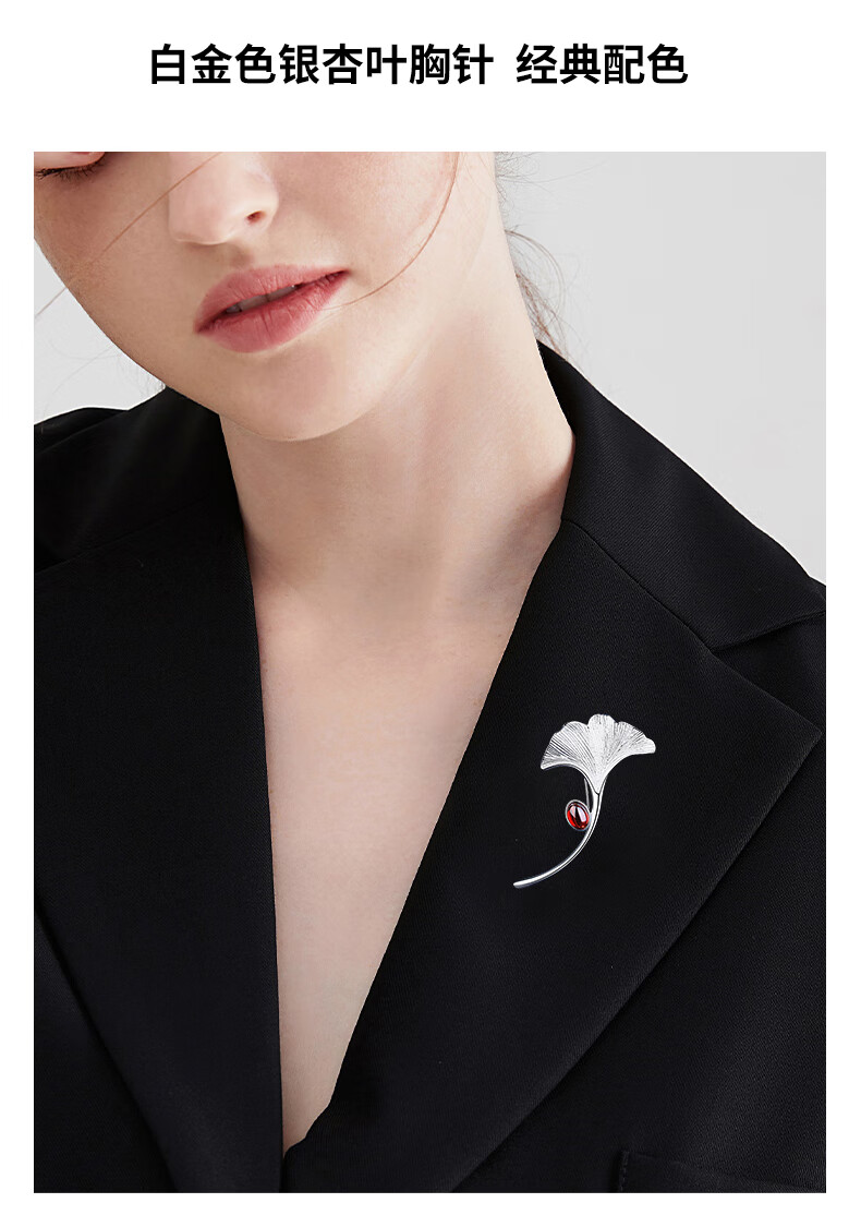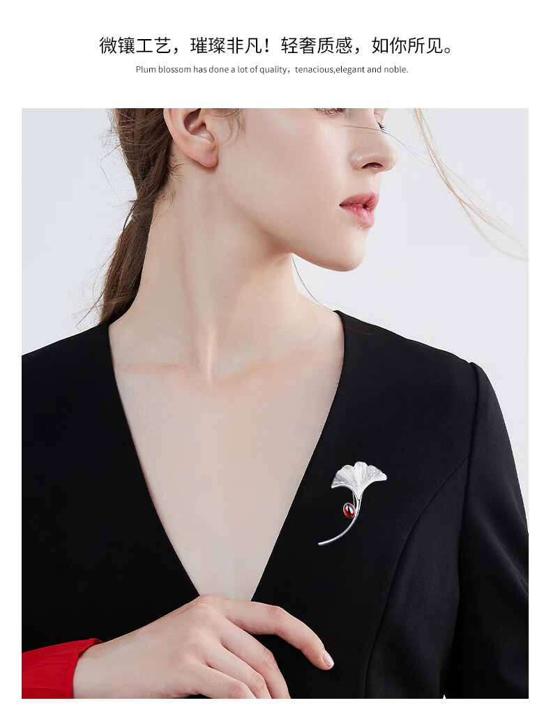 Chinese gold apricot leaf high-end brooch for women light luxury silver brooch girl birthday gift girlfriend wife wedding anniversary apricot leaf brooch-red heart gift box Jingsuda
