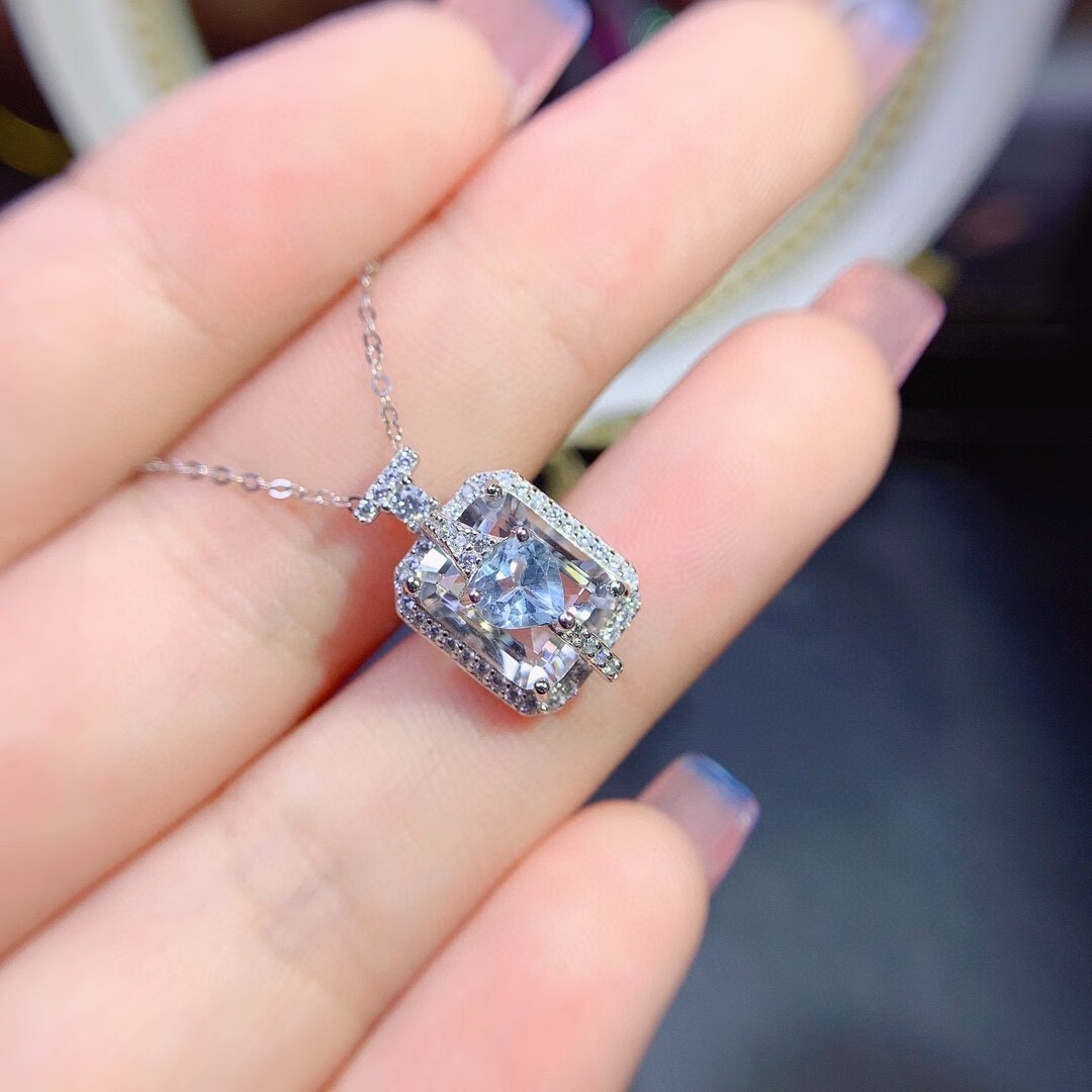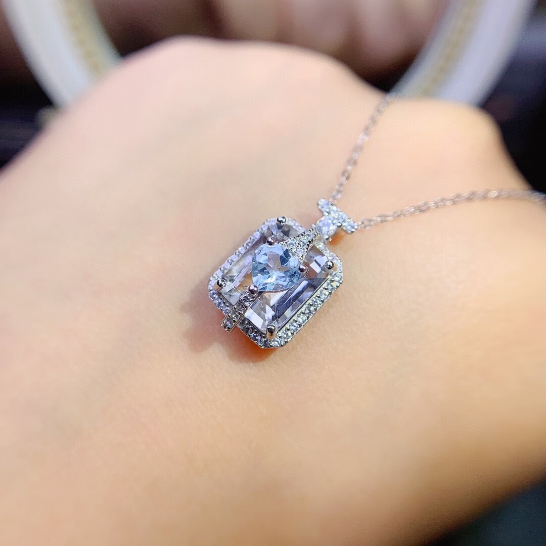Li Shen's new sky blue stone pendant 925 silver K gold precision inlaid heart 5*5MM perfume bottle pendant