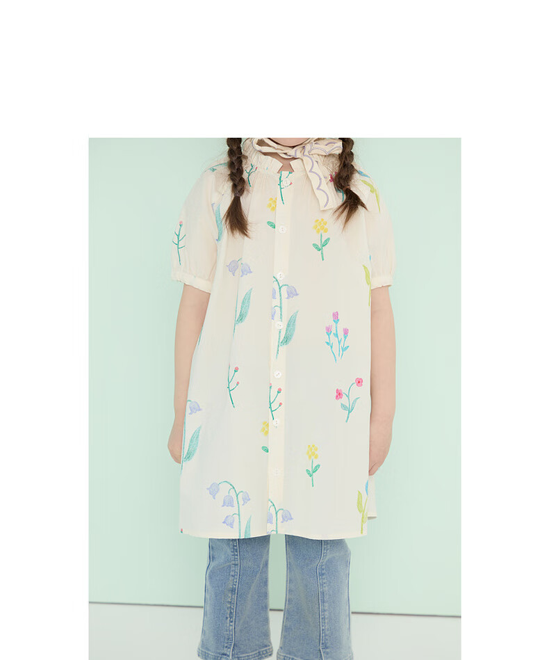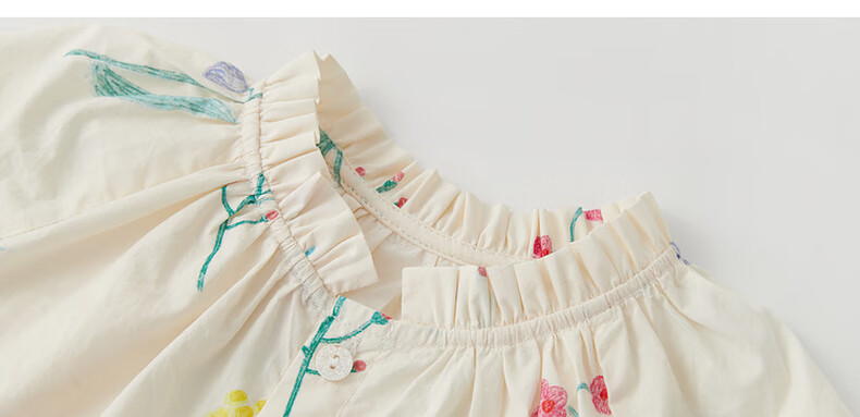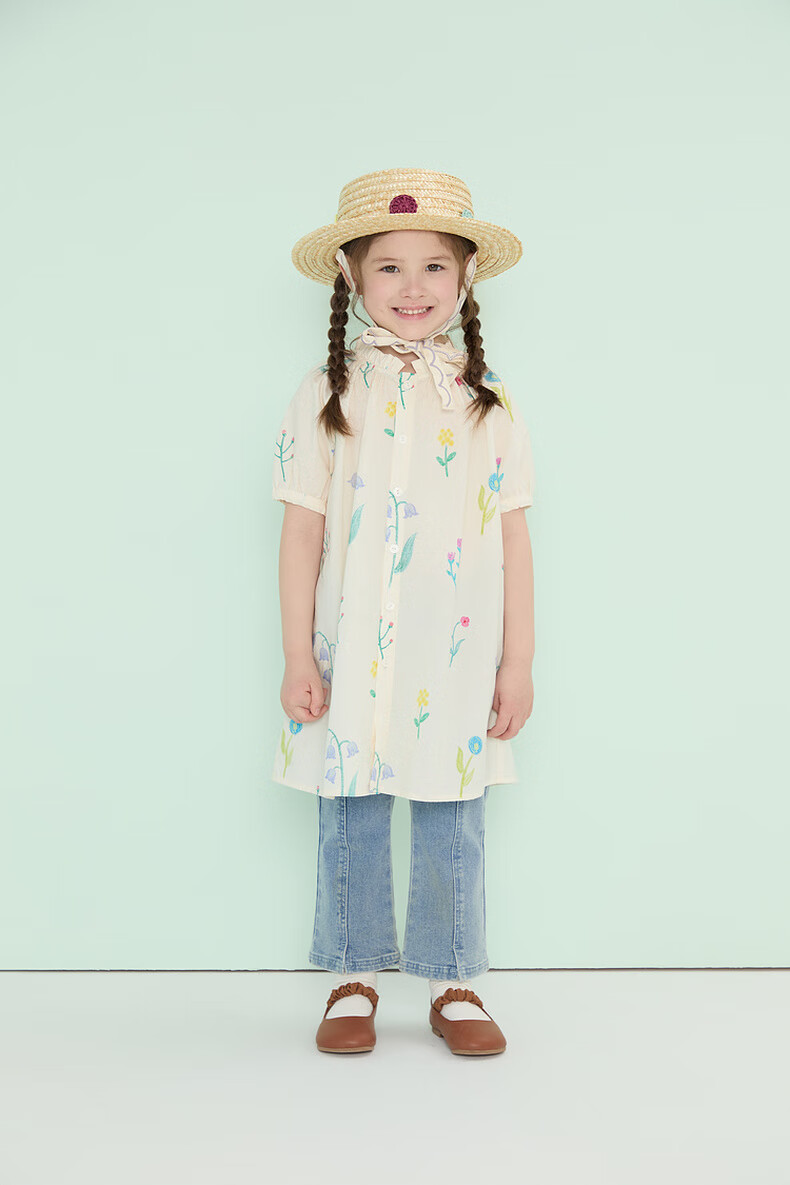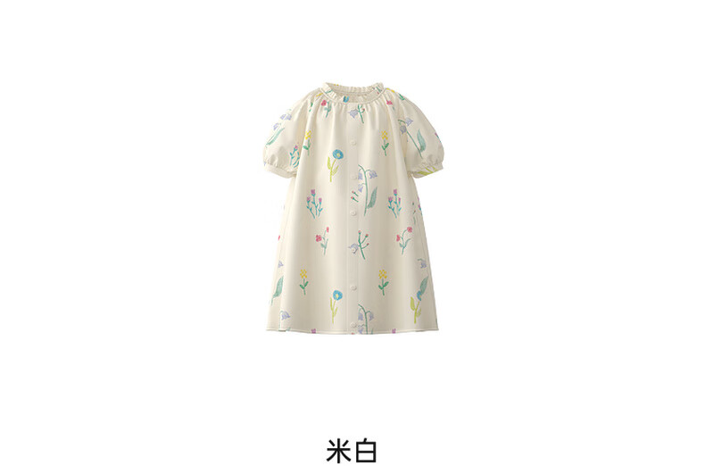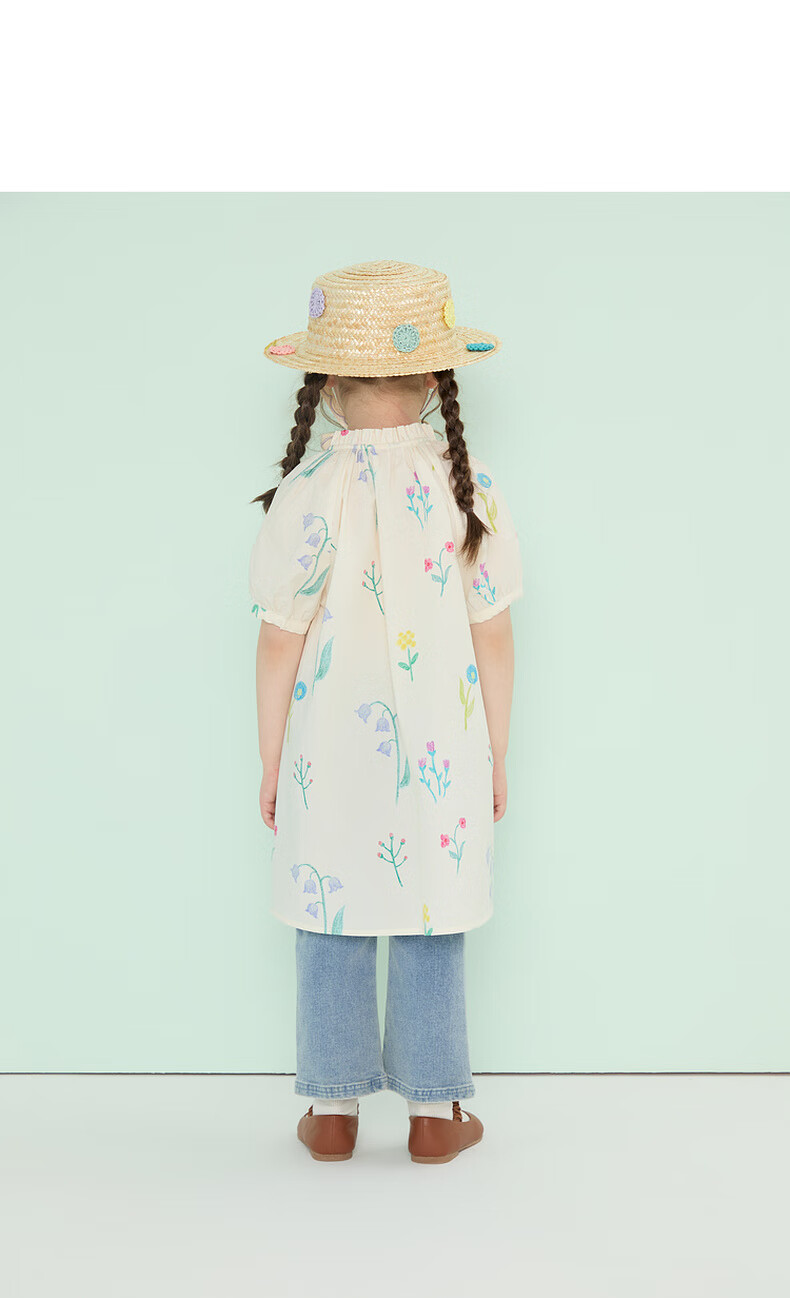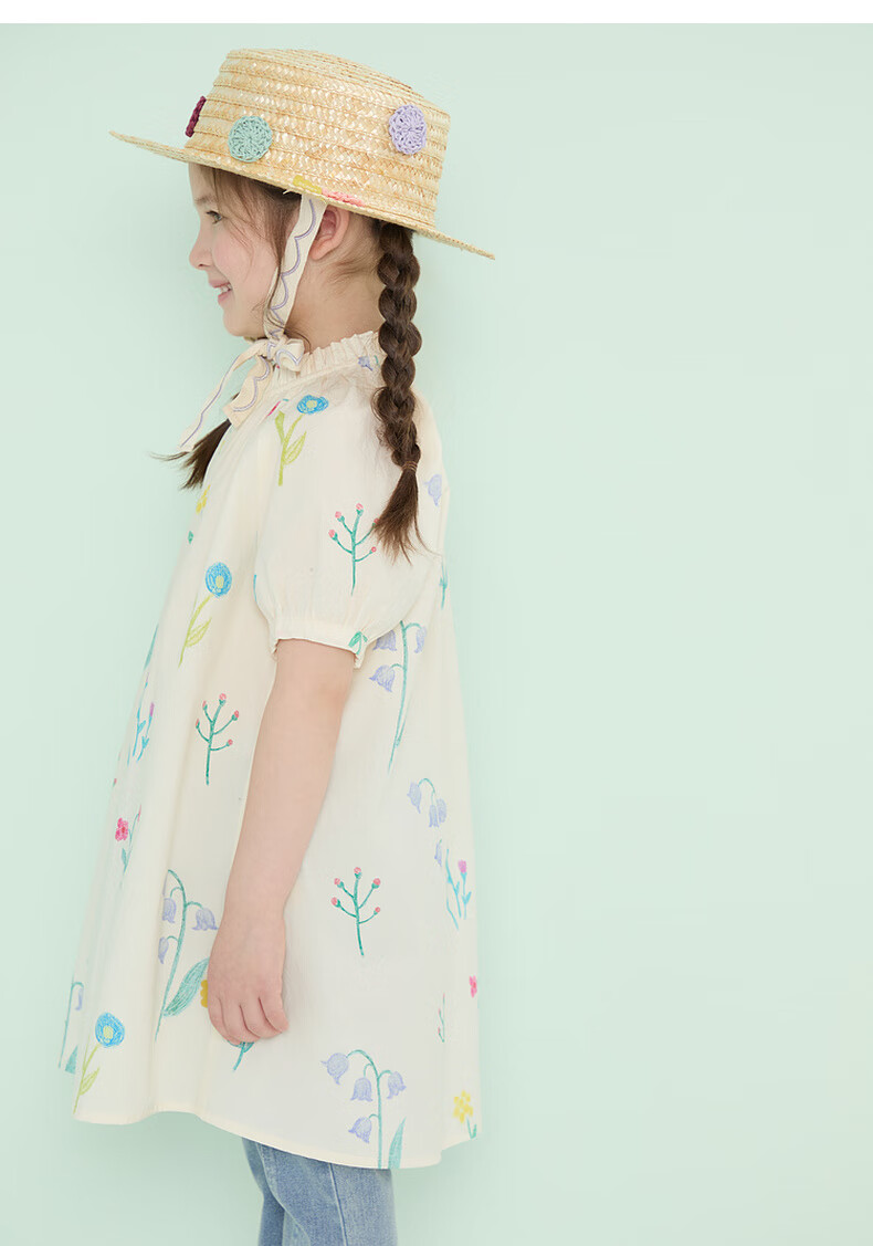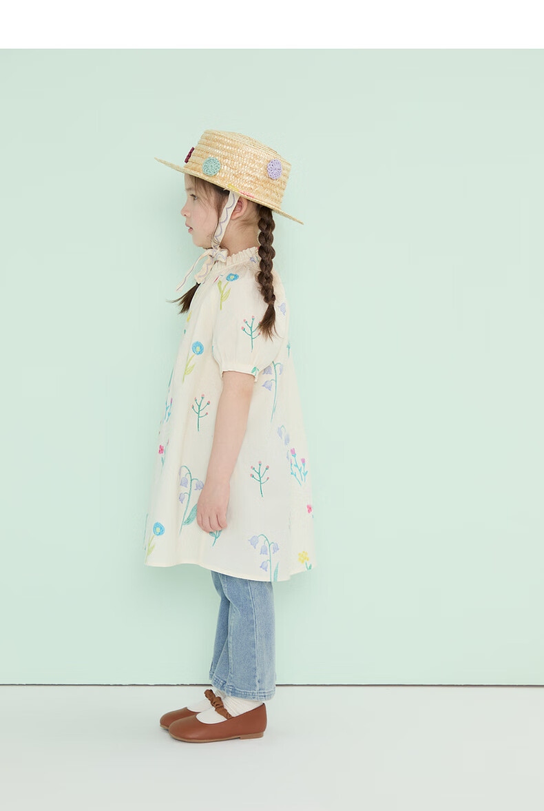 Papa climbing summer girls dress pure cotton floral skirt girl versatile cute and stylish off-white 90 cm