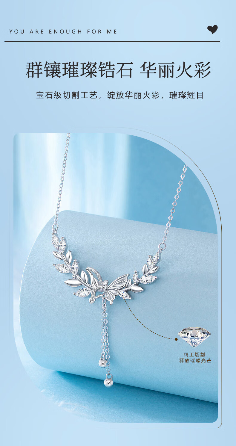 Grace Girl platinum tassel peace necklace female butterfly clavicle chain light luxury high-end design gift for girlfriend's mother's birthday platinum tassel peace necklace + light luxury gift box