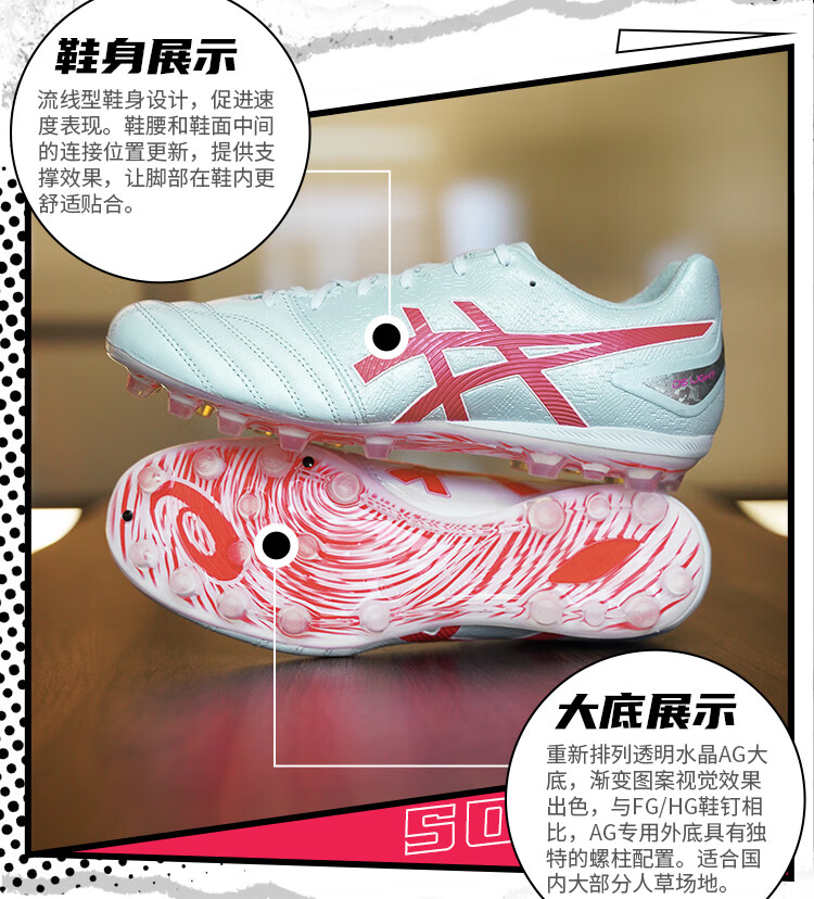 ASICS Tannoy Football ASICS DS LIGHT New AG Short Nail Kangaroo Leather Crystal Soled Football Shoes Men's 1103A096 Silver Blue #1103A096-104 Spot 40.5 JP255