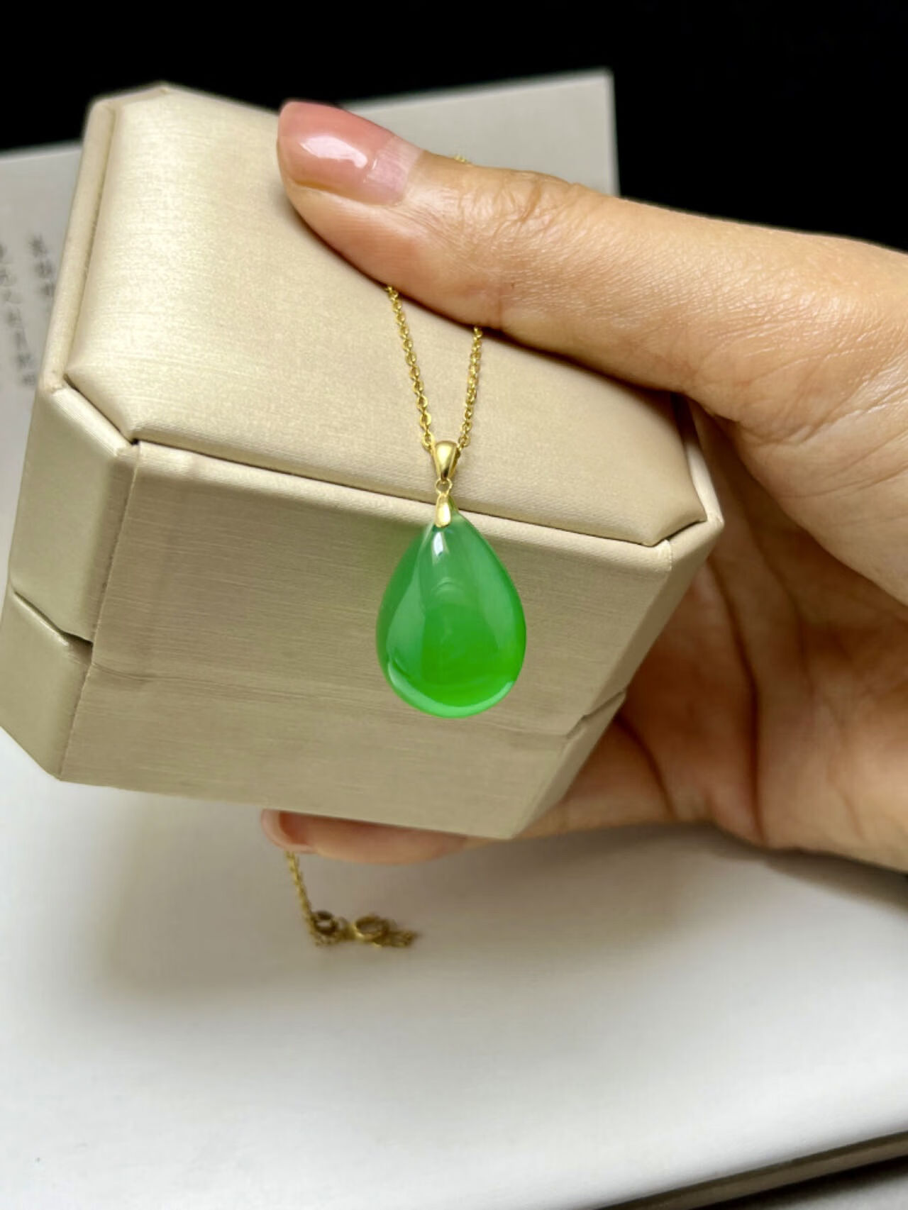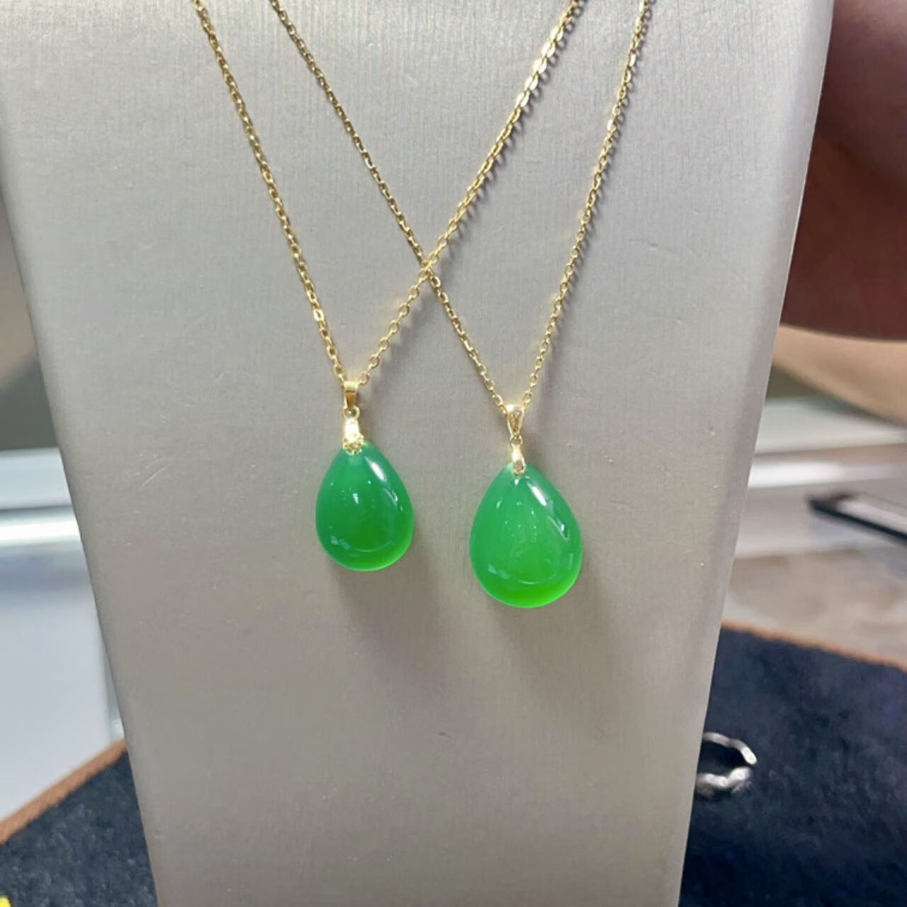 Li Shen 18K gold natural chalcedony water drop pendant necklace green jade pendant large size 15x20mm jewelry gift 15x20mm 18k gold without chain