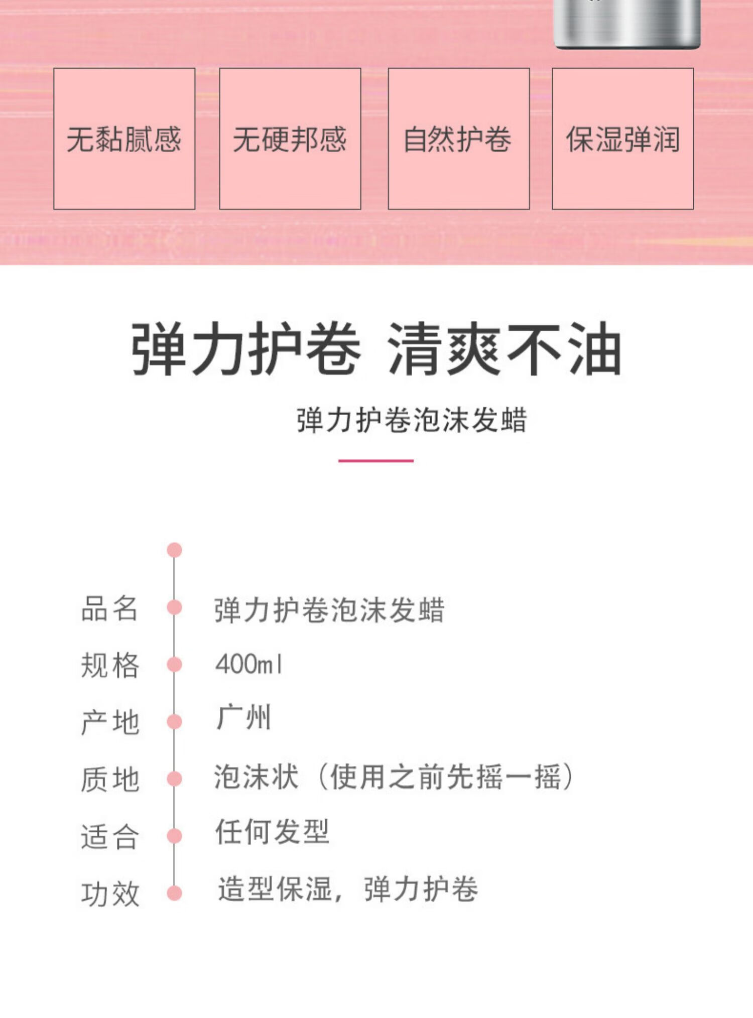 Foam hair wax elastic for women's curly hair moisturizing and styling men's hair gel fluffy wool curl bubble mousse elastic curl protecting foam hair wax 400ml single bottle