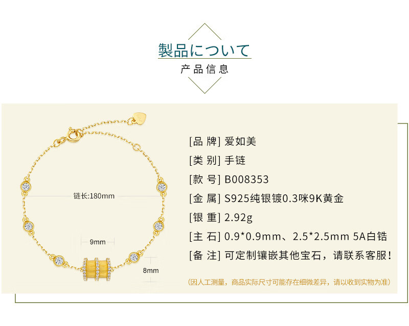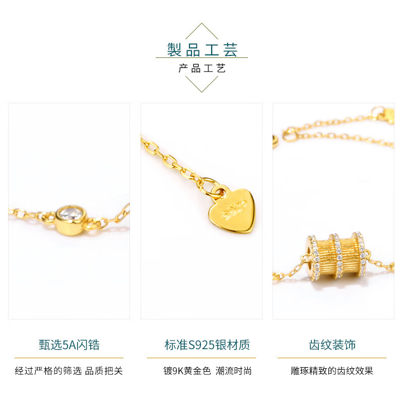 Li Shen's new small waist bracelet for women s925 silver plated 9K gold zircon bracelet retro light luxury hand jewelry for friends white zirconium