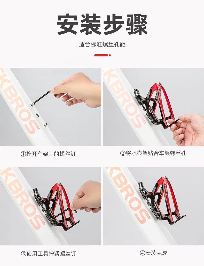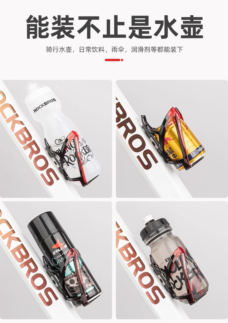 Rock Brothers Bicycle Water Bottle Cage Colorful Road Bike Mountain Bike Water Cup Holder Cycling Bracket Equipment Accessories Ultra-Light Water Cup Holder Black and Red