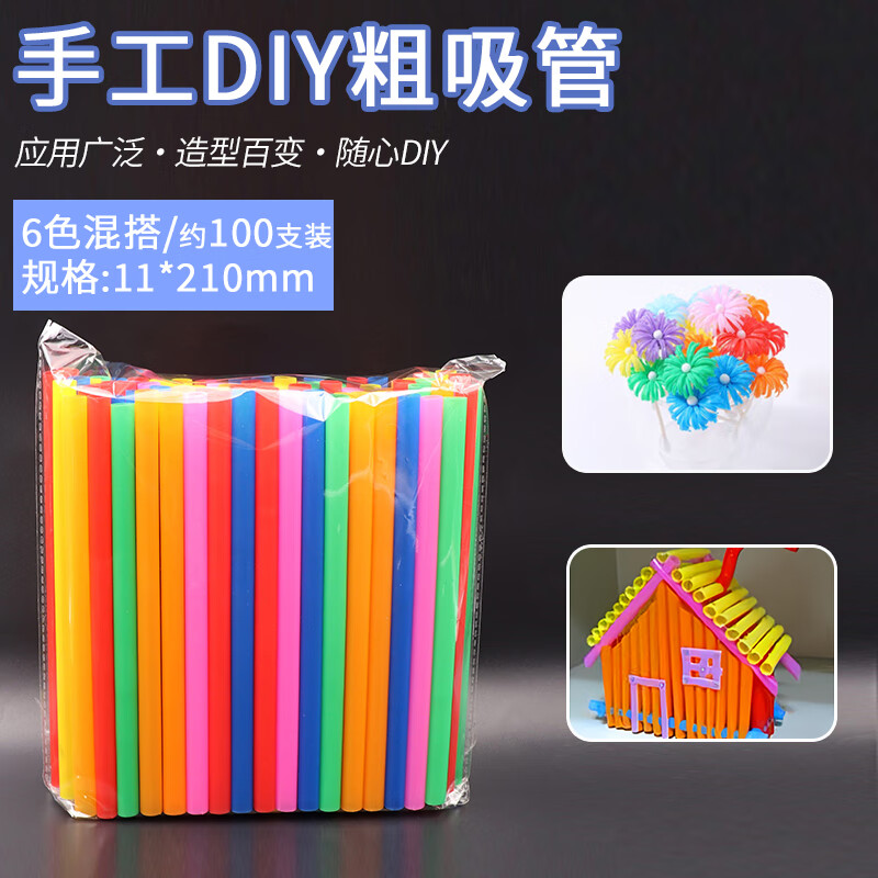 Dongzhitiandi creative handmade diy colorful straws for kindergarten children disposable plastic straws handmade special straight tubes 100 pieces 6*260mm 8-color mixed straws