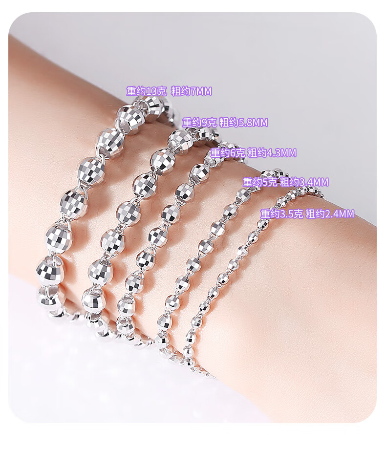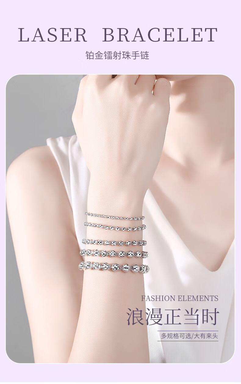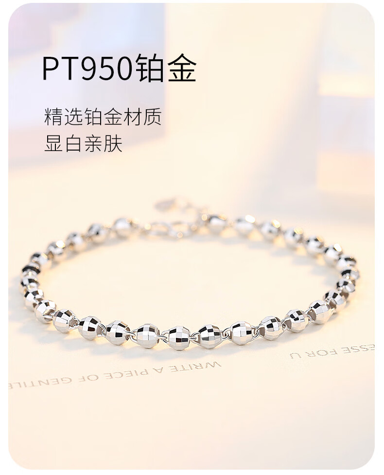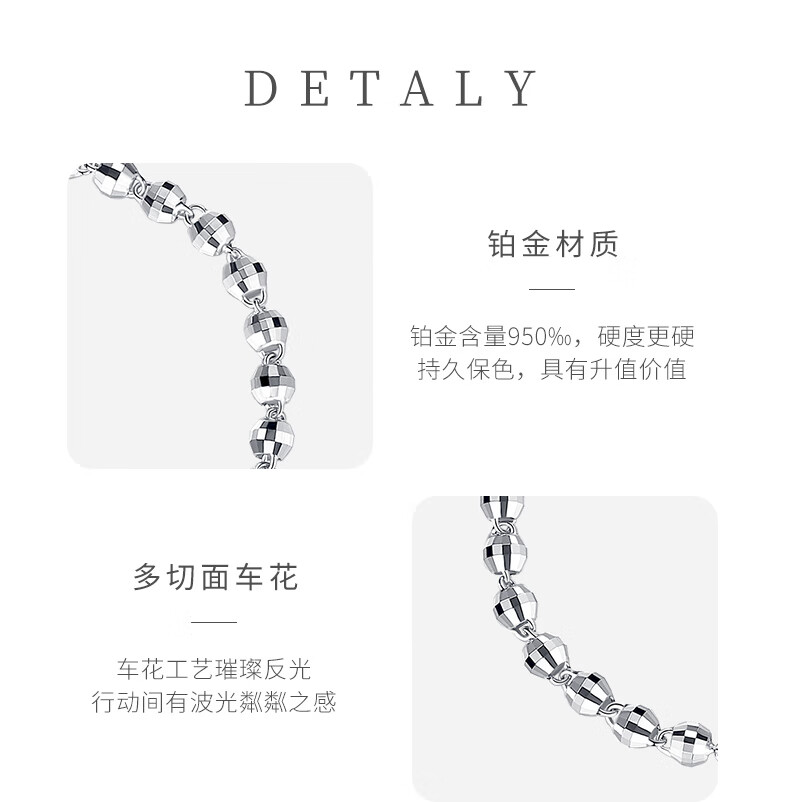 TTMIX shiny platinum bracelet for women pt950 platinum faceted laser beads bracelet for girlfriend 4.3-4.5g 17+2cm thick 3.5mm