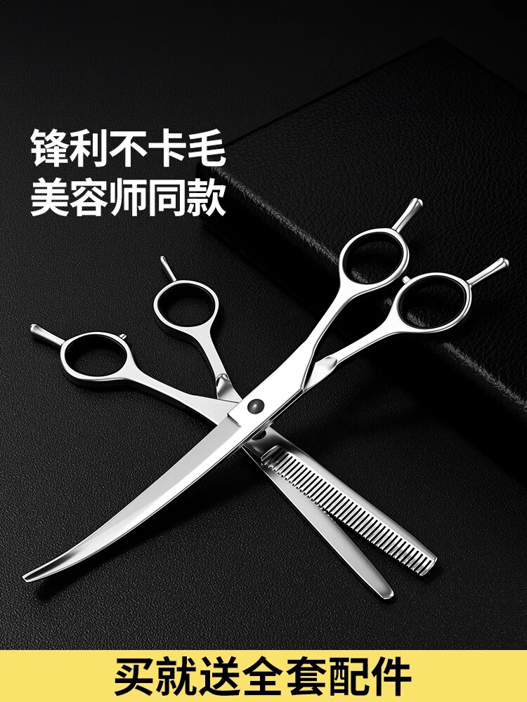 Qioh special scissors for dog hair cutting, pet grooming scissors, trimming scissors set, curved scissors, Teddy dog hair cutting tool, 7-inch curved scissors, suitable for arc trimming