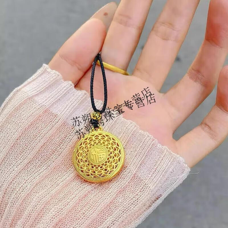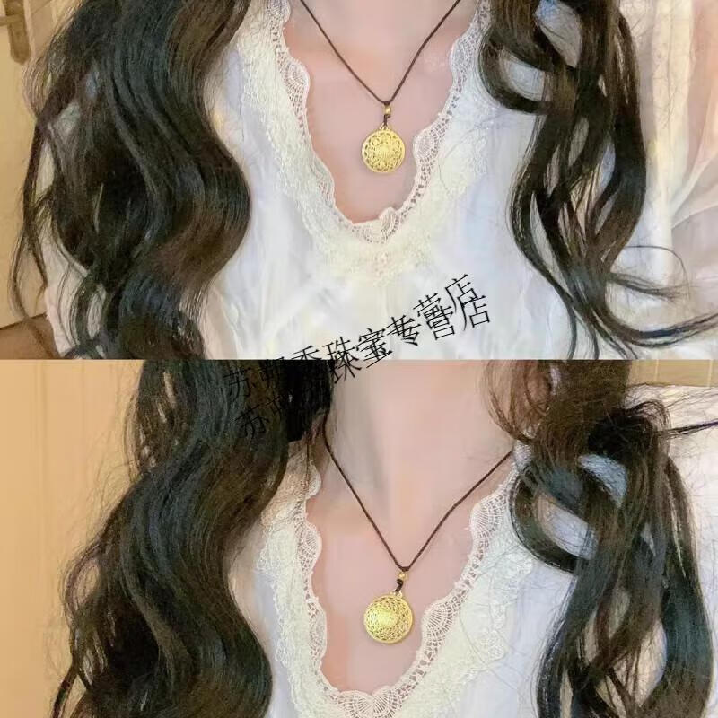 KERLA Old Phoenix Gold Store Model Plated 999L Gold Necklace Silver Women's Yellow Plated L Gold Eight Treasure Compass Pendant Retro Niche Medium Ancient Style Imperial Concubine Model-Eight Treasure Compass/Sand Gold