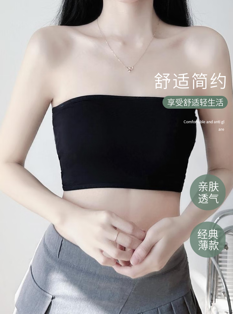 Ji Yafu Black Modal One Piece Tube Top Anti-Light Covering Breast Covering Bottoming Bra Strapless Anti-Slip Underwear Women Summer White + White + Black (No Breast Pad) One Size 70-110 Jin Jin is equal to 0.5 kg