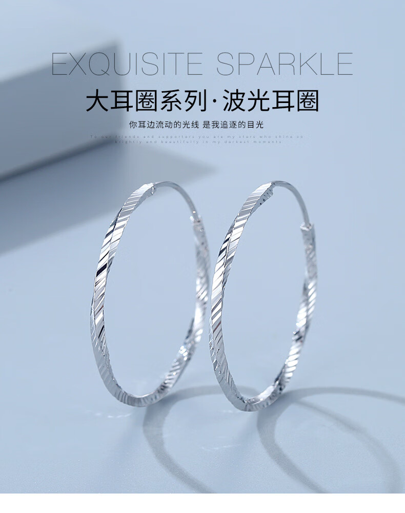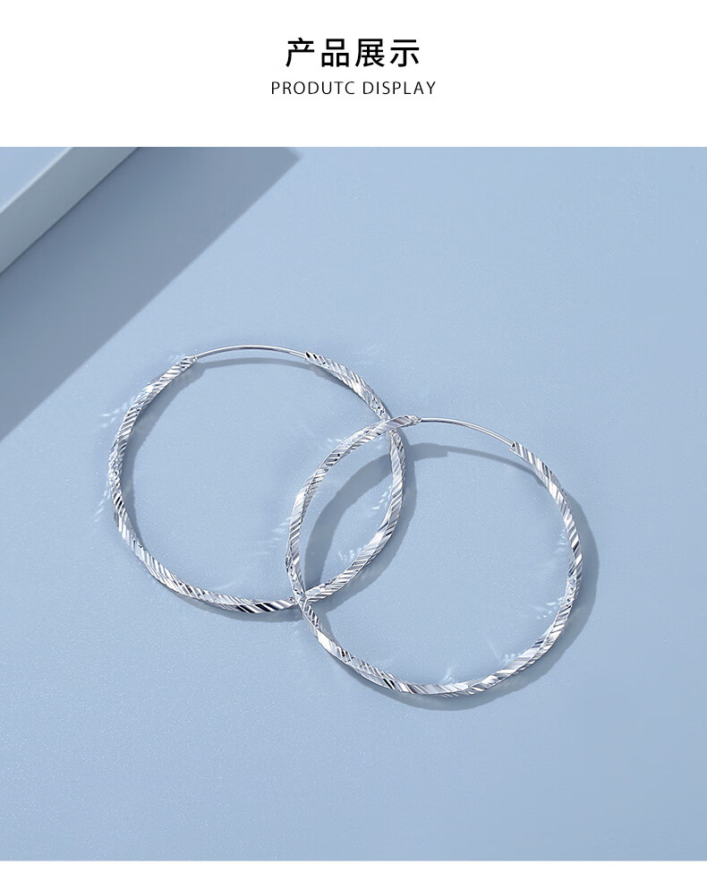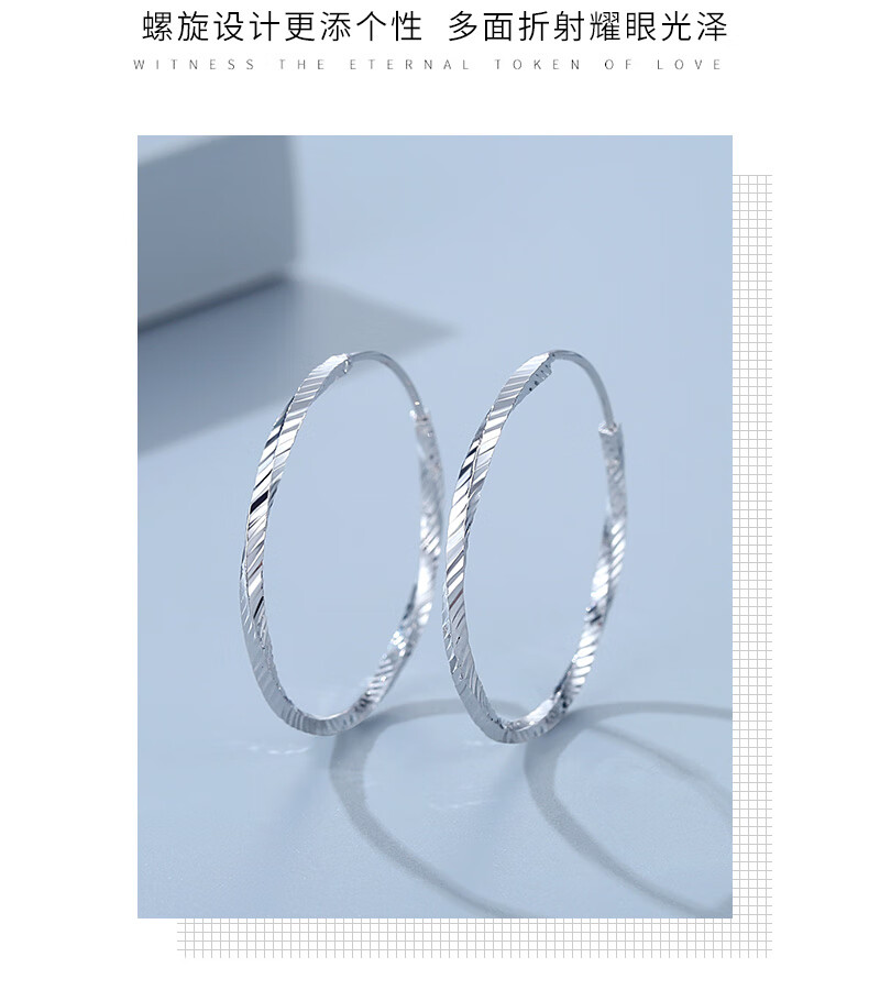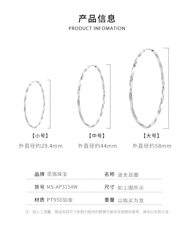 Misu pt950 platinum women's earrings platinum large hoop mouth earrings sparkling earrings for girlfriend earrings gift, diameter 4.0cm, weight 4.3-4.5 grams