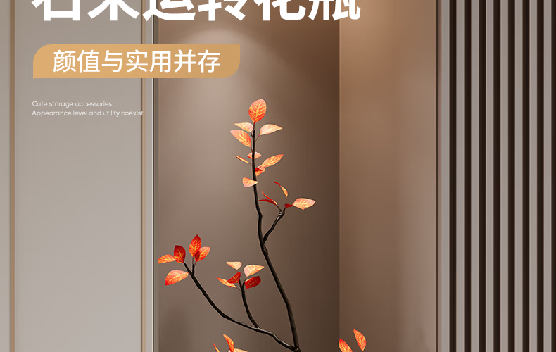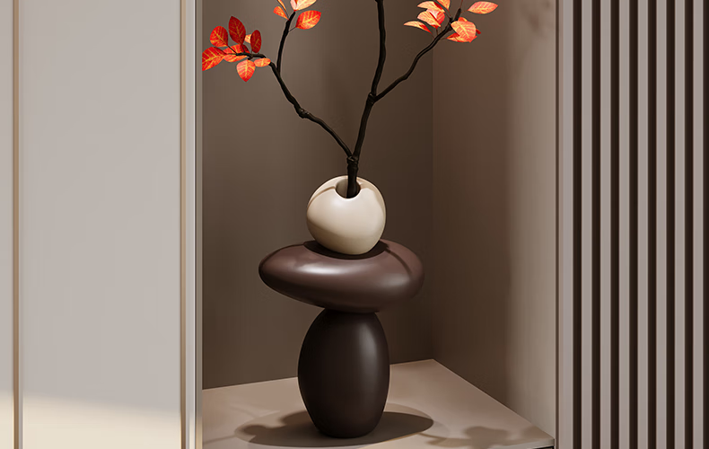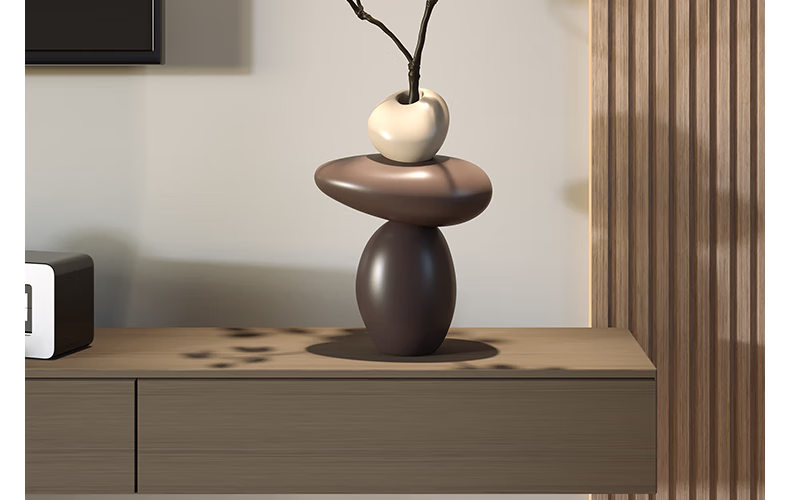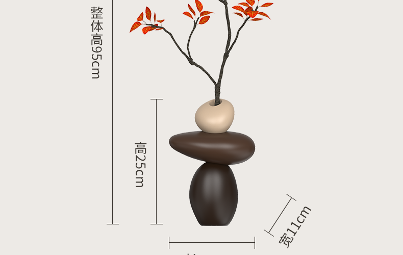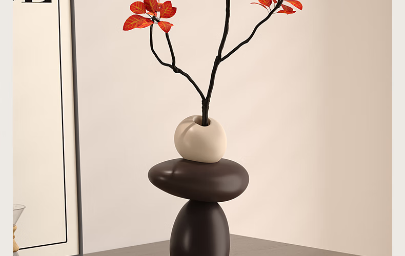 Entrance hall niche decorative ornaments stone to run simulated green plant vase living room TV cabinet home decoration stone to run vase - brown (free simulated green plant