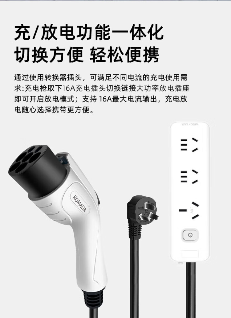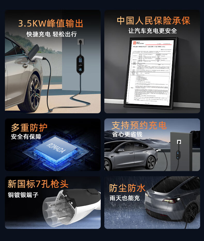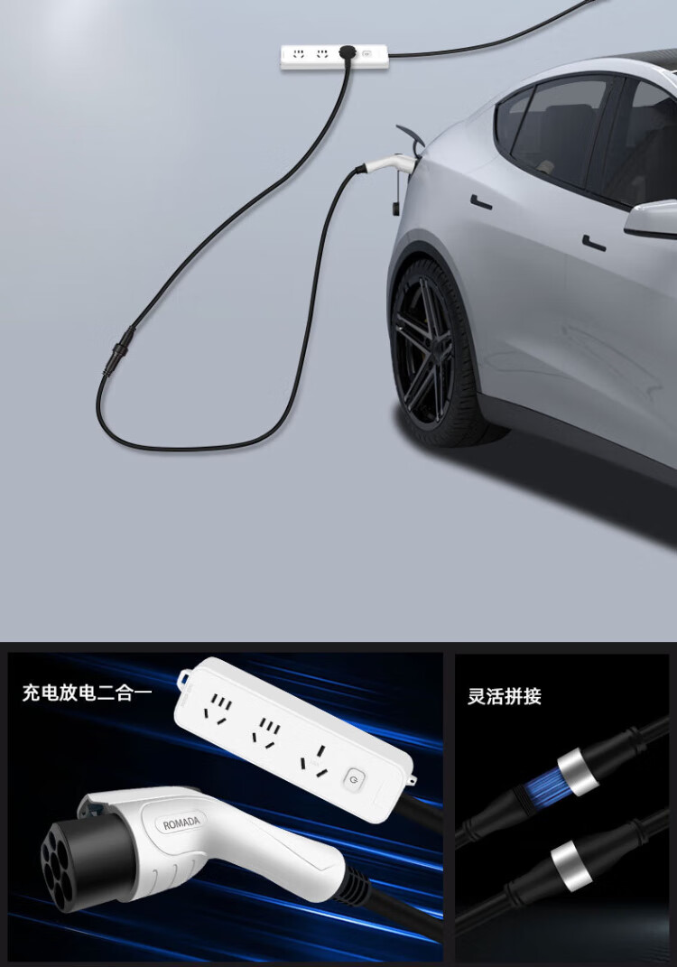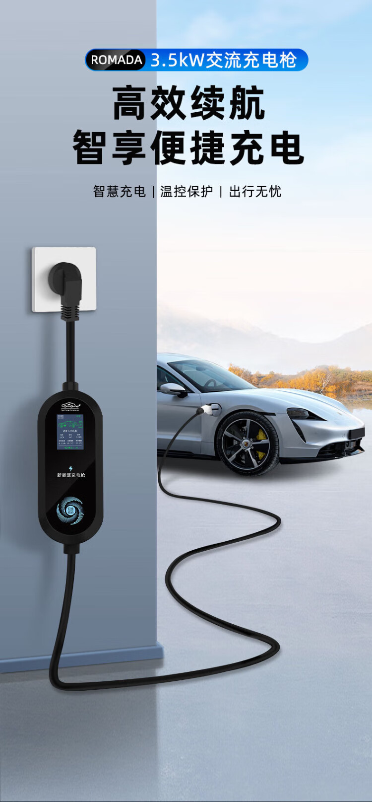 ROMADA vehicle-mounted charging gun 3.5kw new energy electric vehicle portable pile charger is suitable for Geely Xingyuan Xiaomi su7 BYD Ideal Zero Wuling Hongguang integrated charging and discharging gun 3.5KW two-speed indicator light 5 meters long universal for 99% new energy vehicles