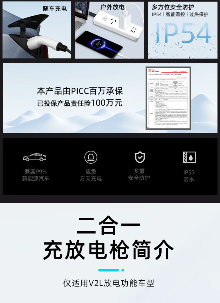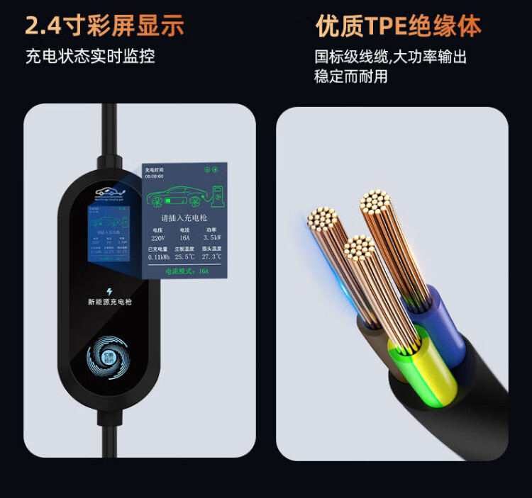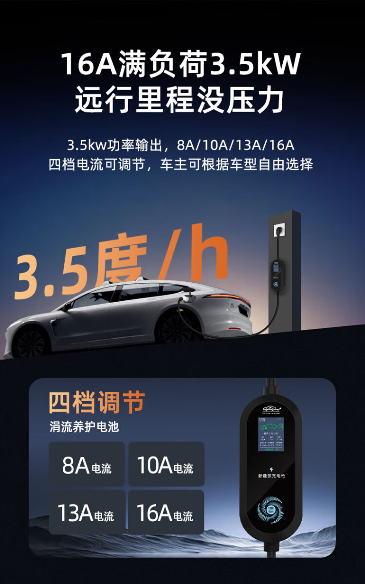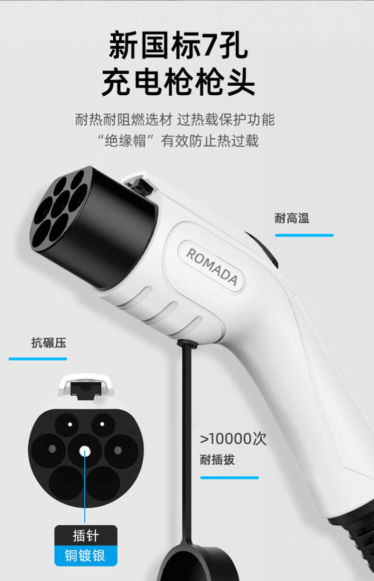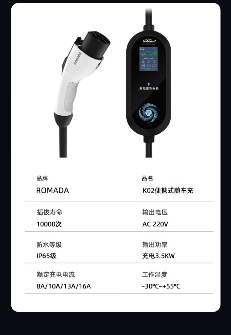 ROMADA vehicle-mounted charging gun 3.5kw new energy electric vehicle portable pile charger is suitable for Geely Xingyuan Xiaomi su7 BYD Ideal Zero Wuling Hongguang integrated charging and discharging gun 3.5KW two-speed indicator light 5 meters long universal for 99% new energy vehicles