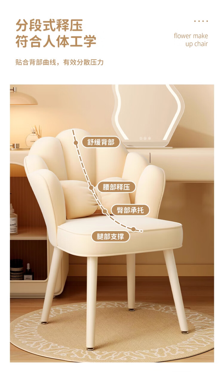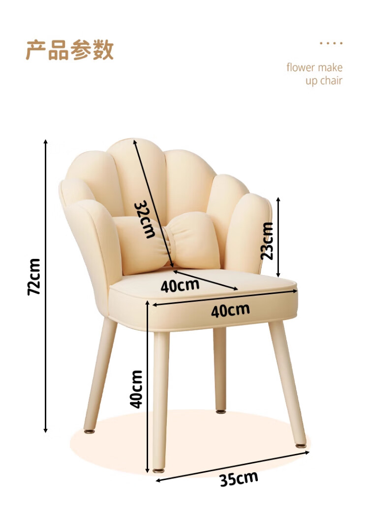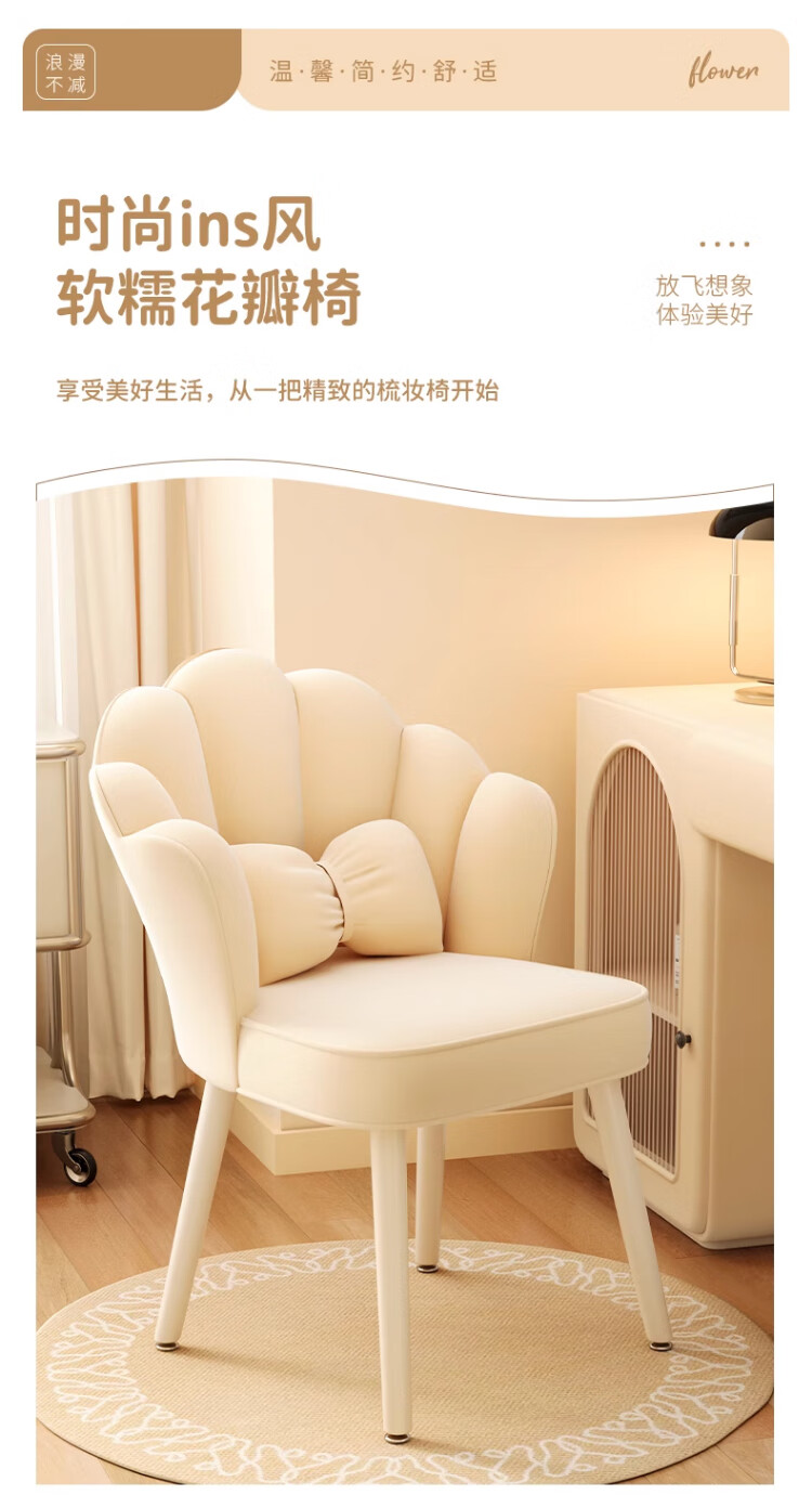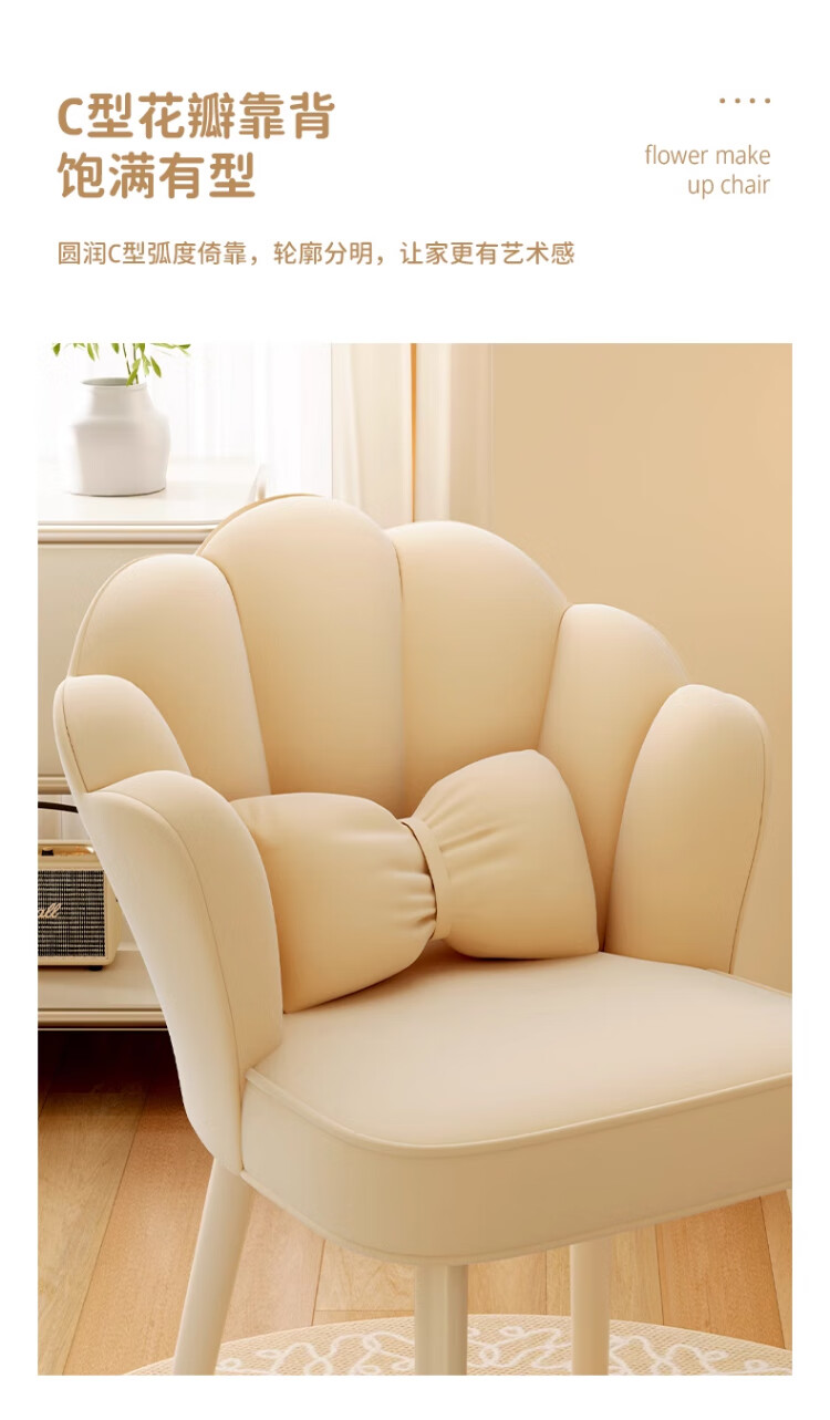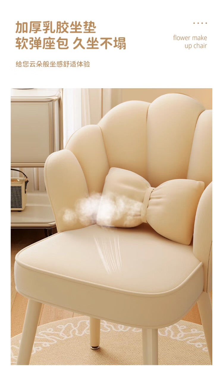 Fat Donglai quality dressing table chair with backrest Internet celebrity petal chair home girls' bedroom dressing table stool light off-white - petal backrest - high elastic sponge - white