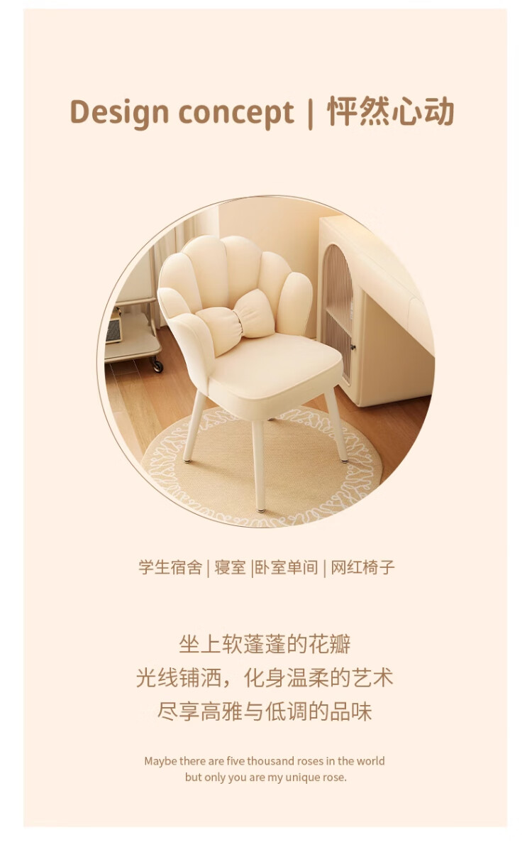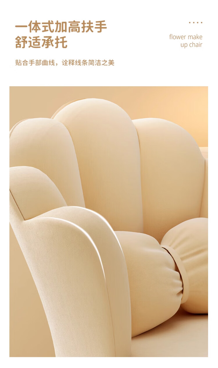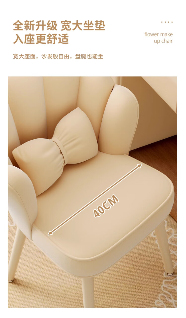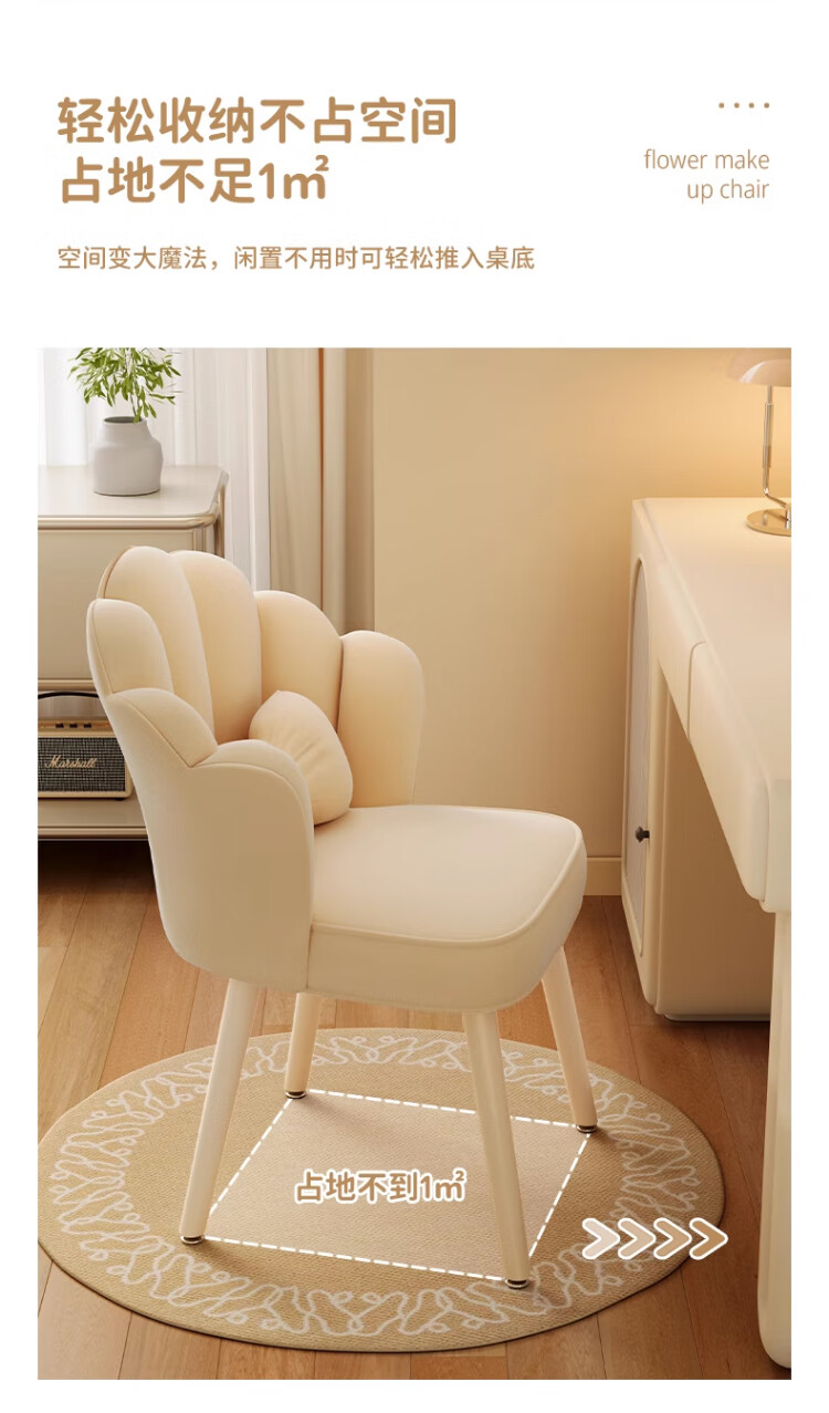 Fat Donglai quality dressing table chair with backrest Internet celebrity petal chair home girls' bedroom dressing table stool light off-white - petal backrest - high elastic sponge - white
