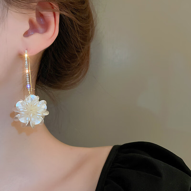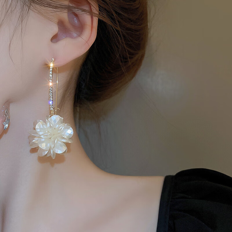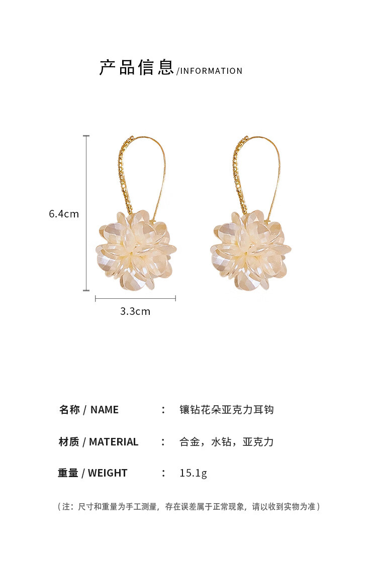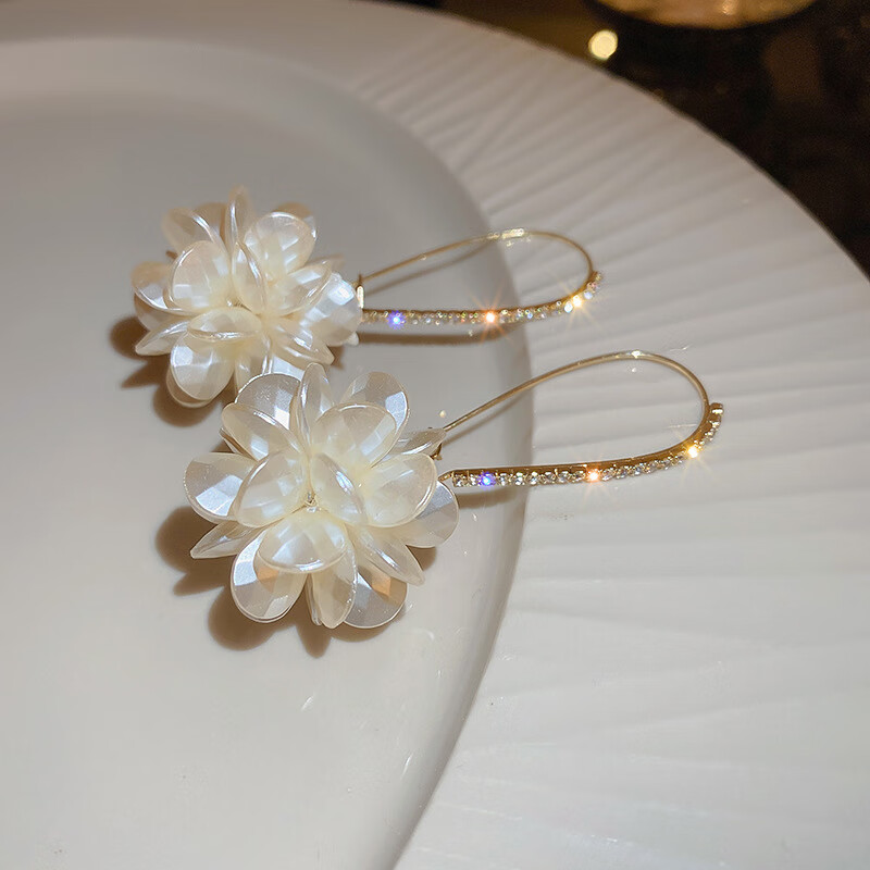 Diamond Flower Pearl Earrings for Girlfriend Gift Ear Hook Earrings Versatile High-end Gift Earrings Wholesale Ear Hooks-Gold