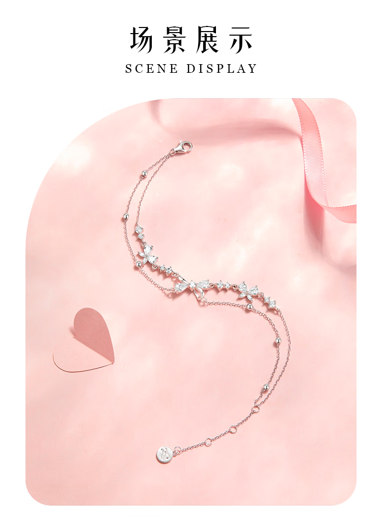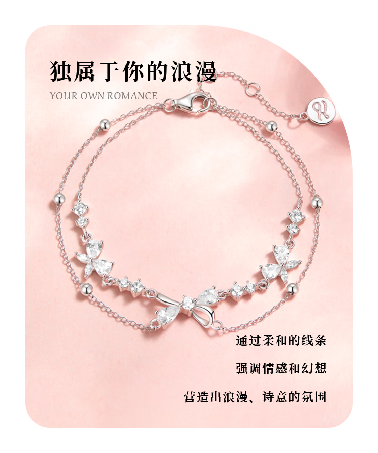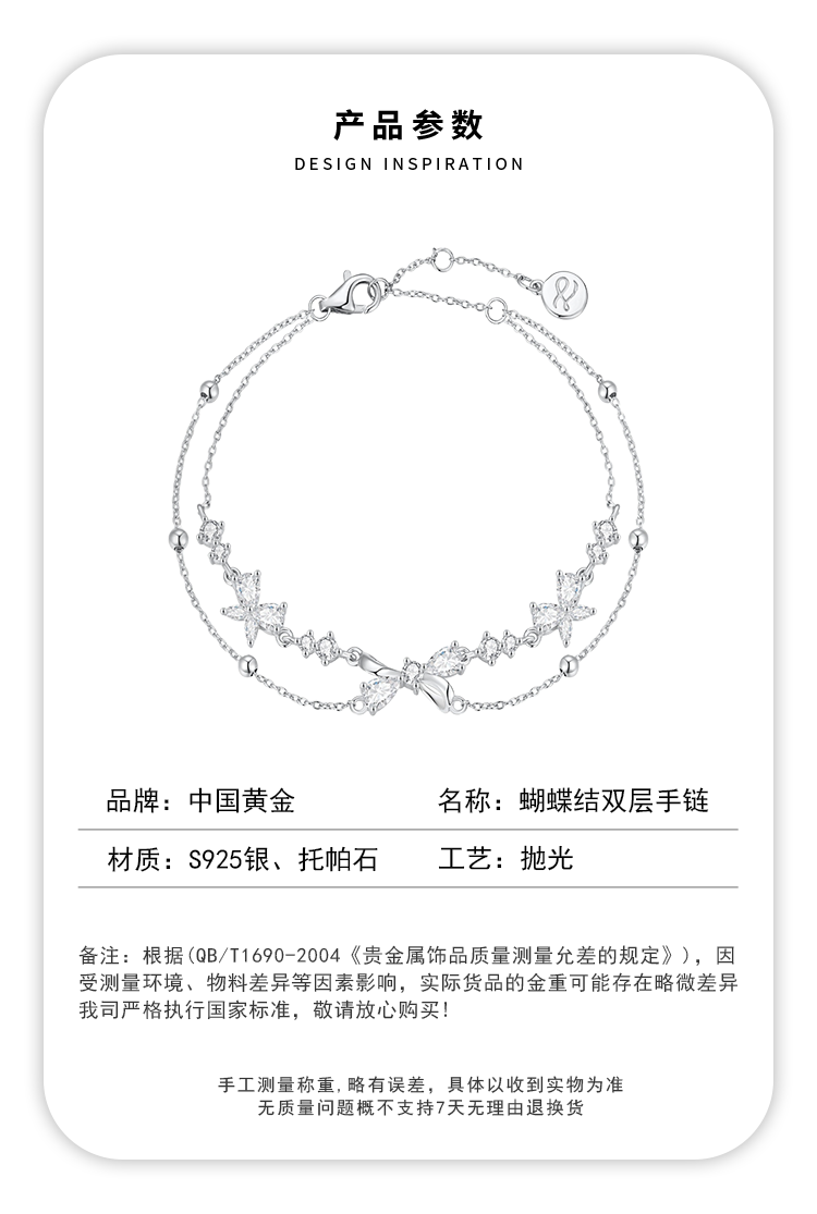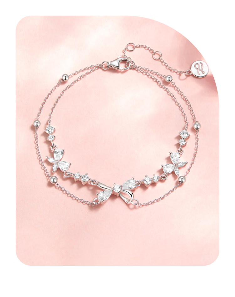 CHINA GOLD S925 silver bow double-layer bracelet for women, light luxury niche hand jewelry, Valentine's Day birthday gift for girlfriend, delivery today/next day, bow double-layer bracelet
