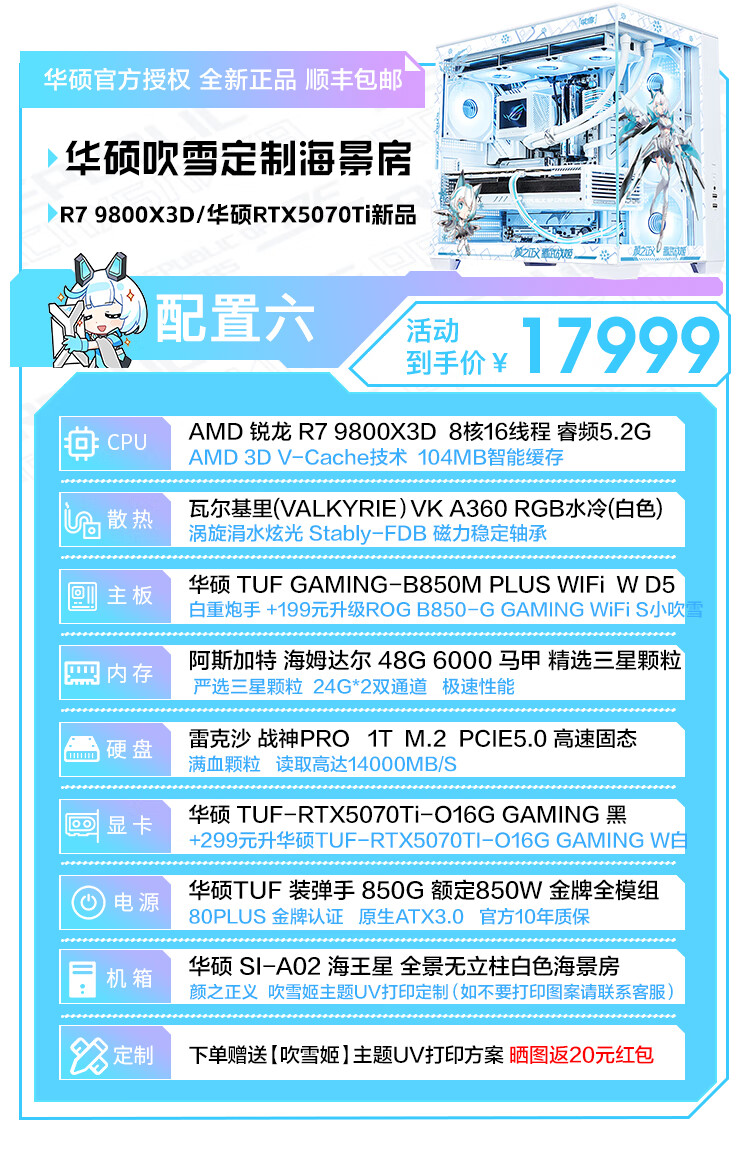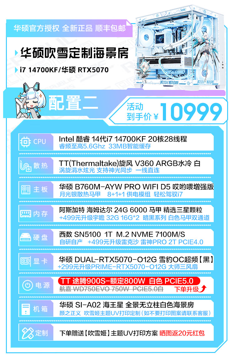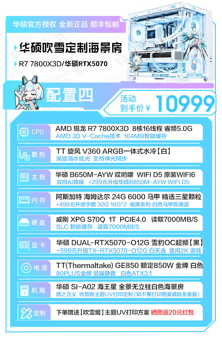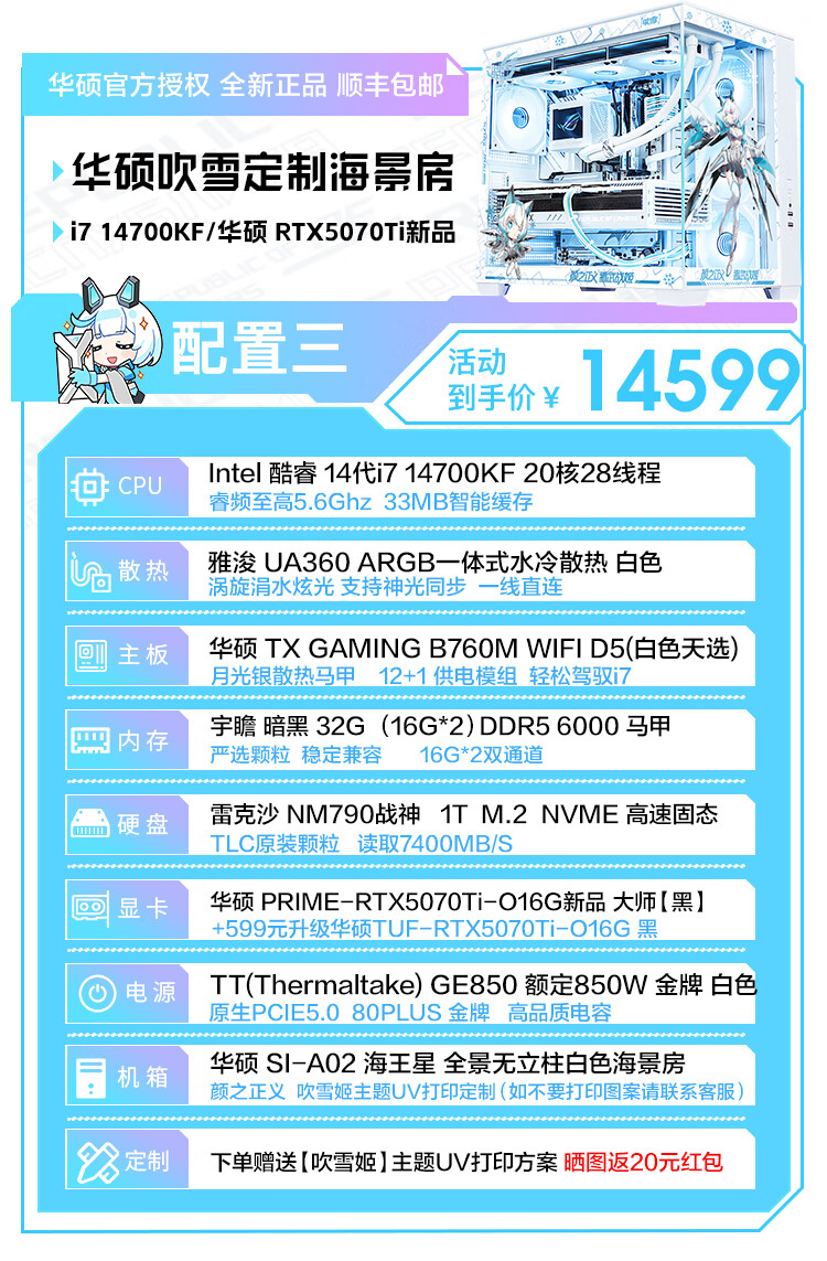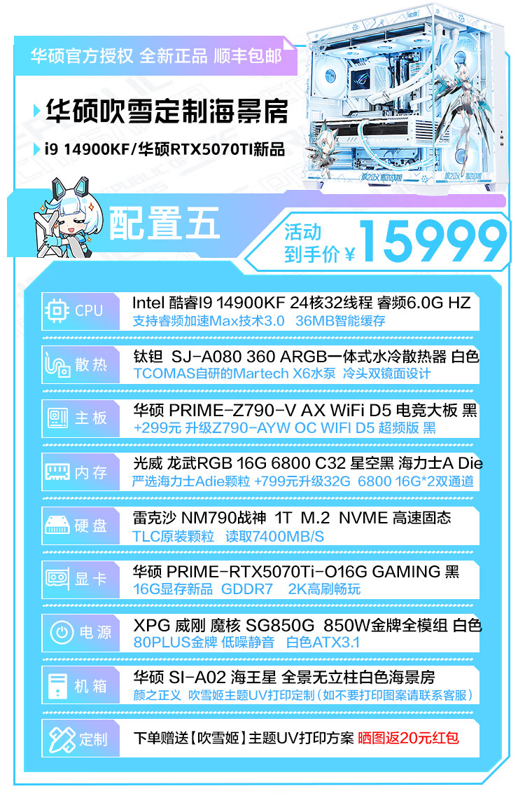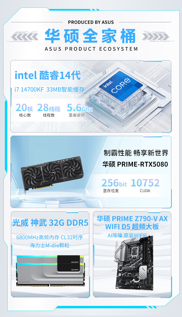 ASUS 24-issue interest-free ROG i9 14900KF/ASUS RTX5070Ti independent display high-end e-sports game computer host AI rendering DIY assembly machine computer complete machine configuration 4 R7 7800X3D + ASUS RTX5070