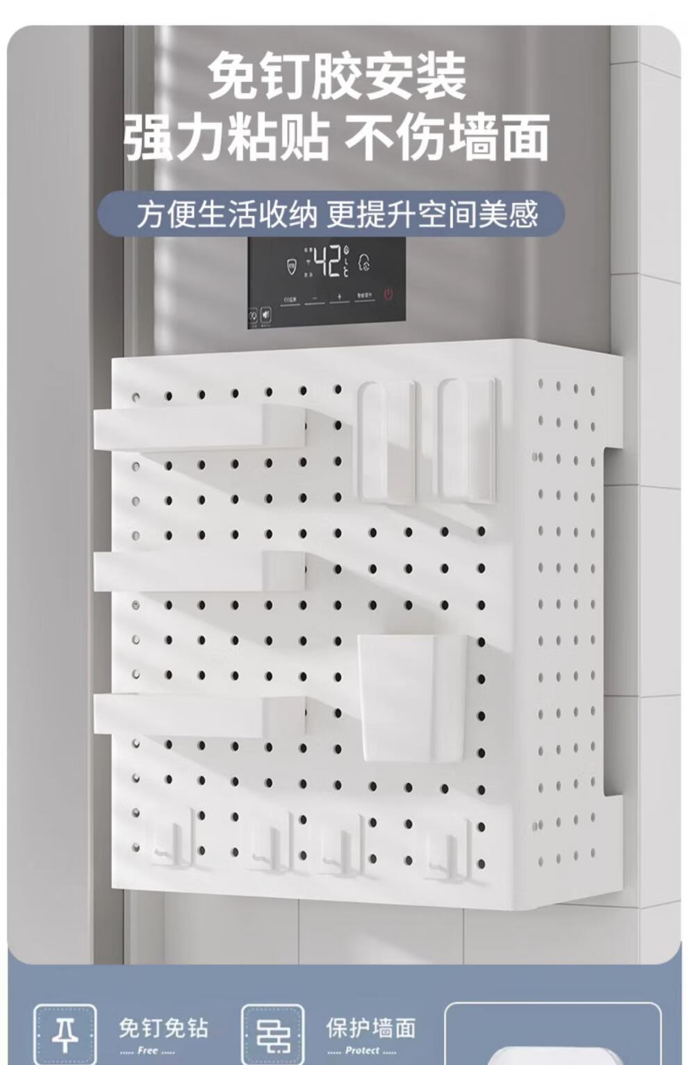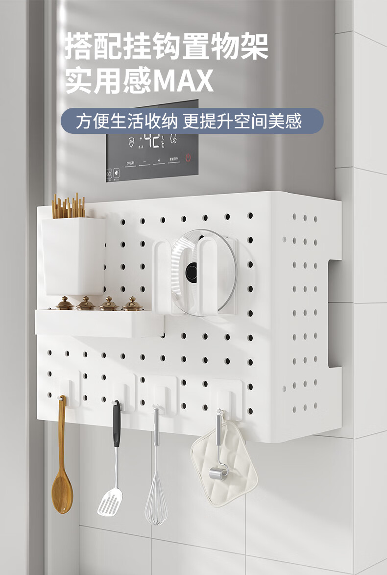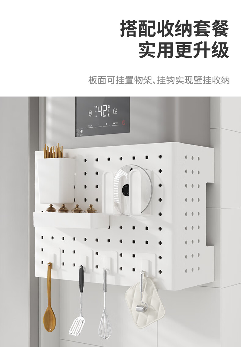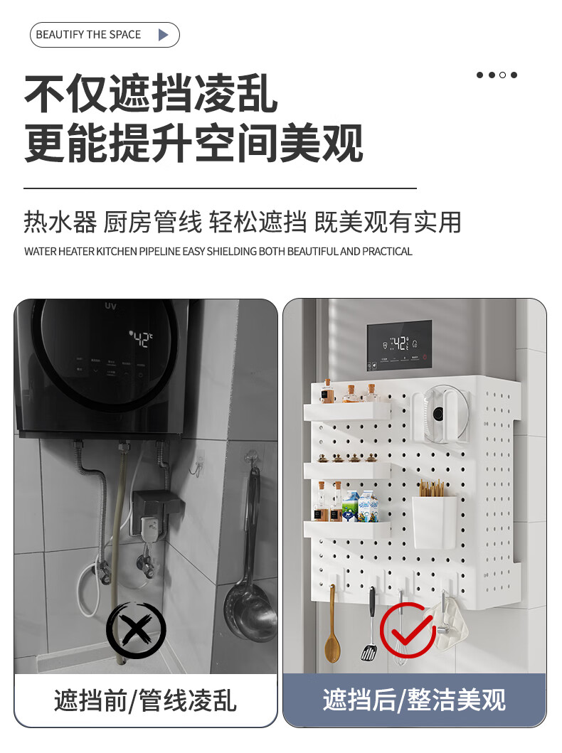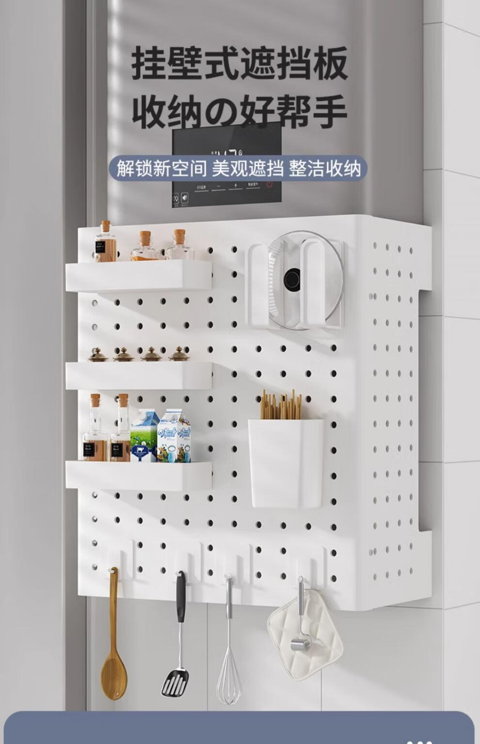 DEATKN German Gas Water Heater Pipe Cover Decorative Perforated Board Kitchen Wall Cover Boiler Stove Storage Rack White - Width 35 Height 40 Depth 17 Free Storage Set