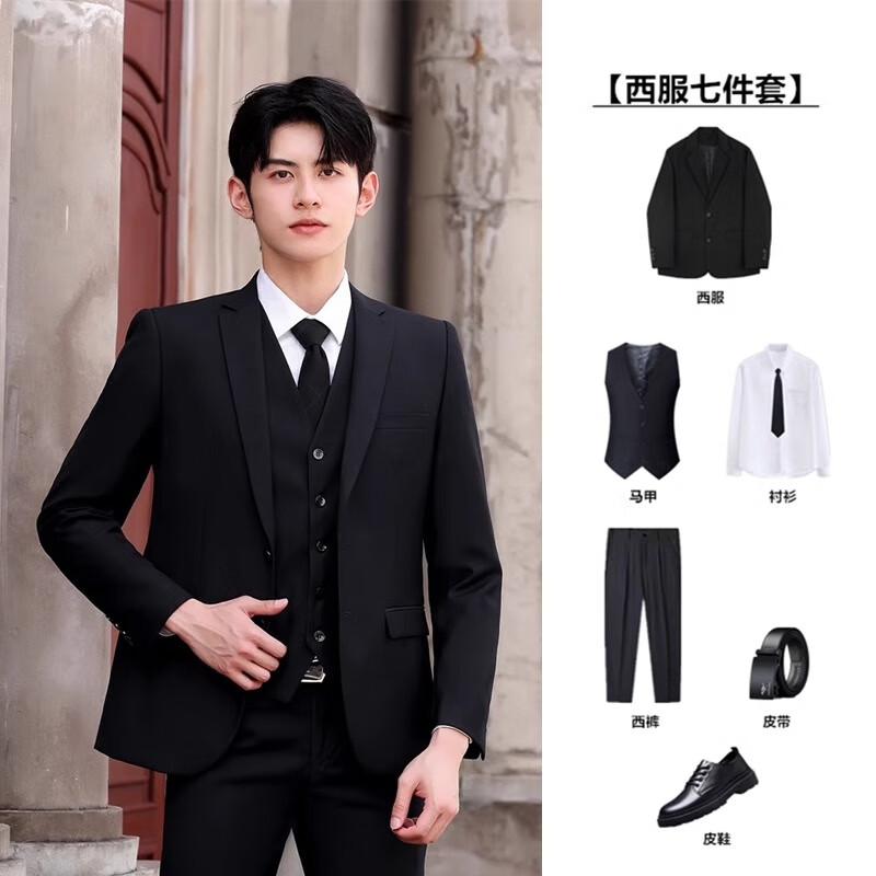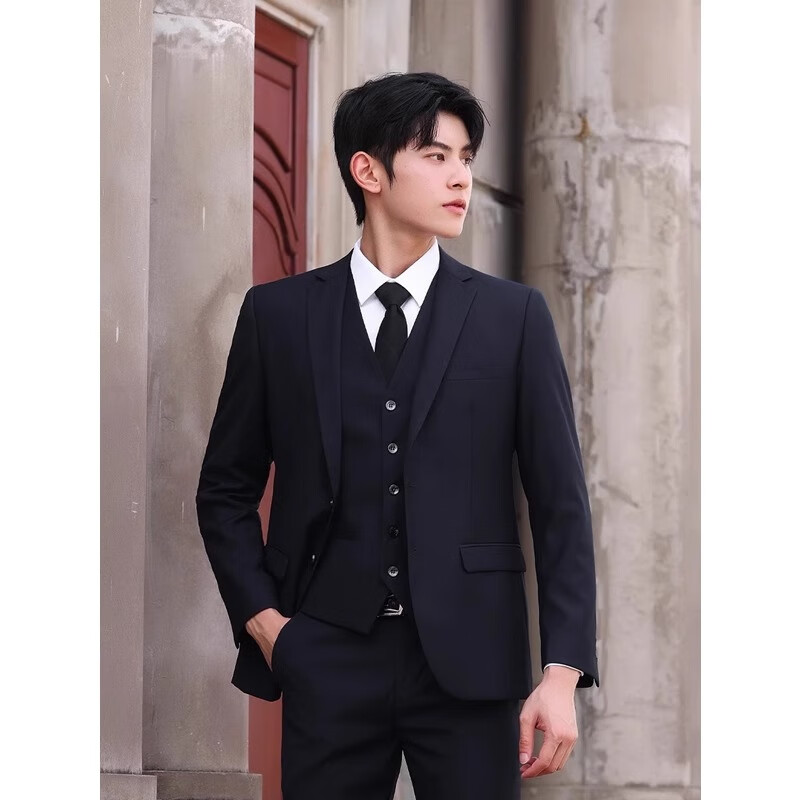 Pierre Cardin suit men's slim fit groomsmen and grooms wedding business casual professional British style full small suit men full suit L recommended 115-130 Jin Jin equals 0.5 kg
