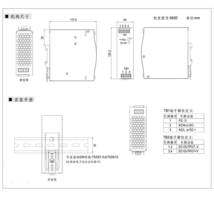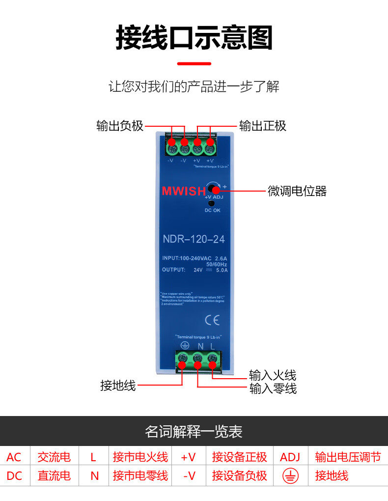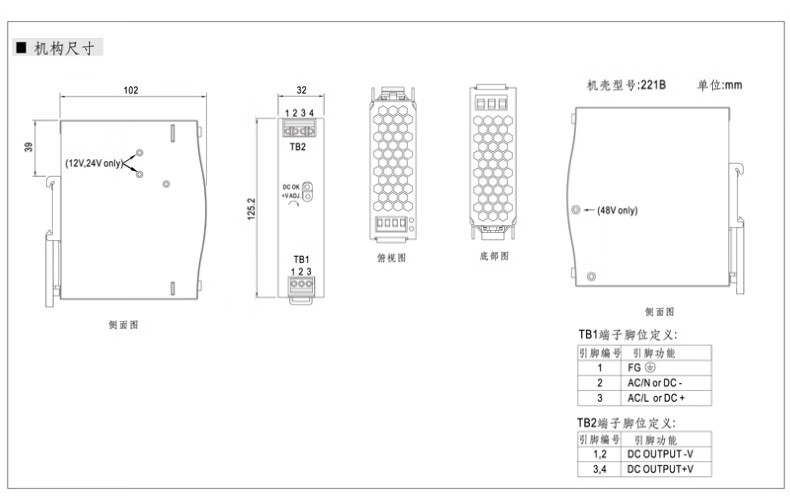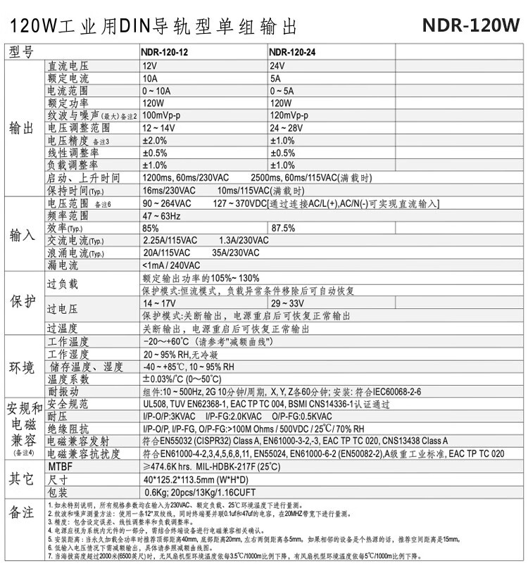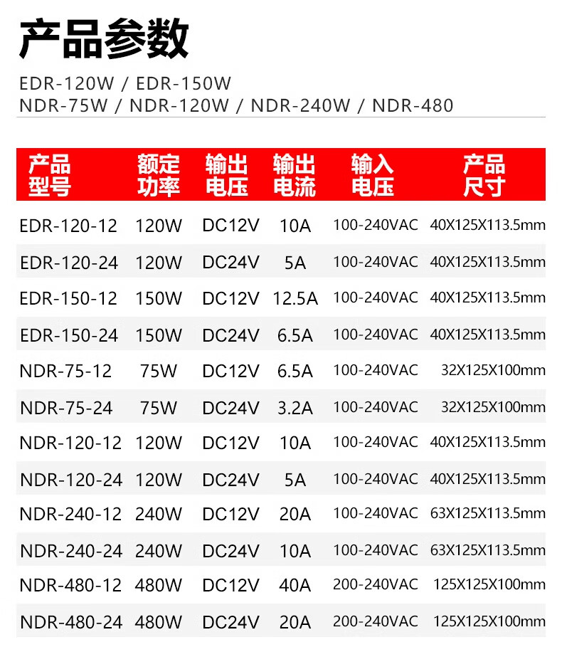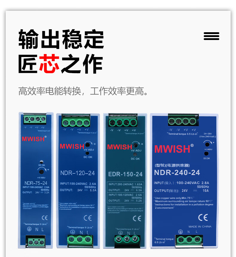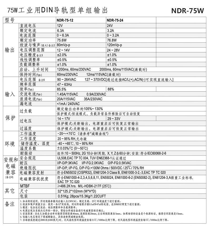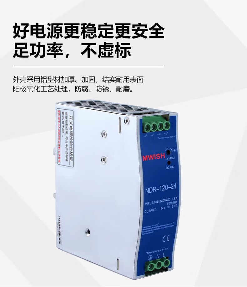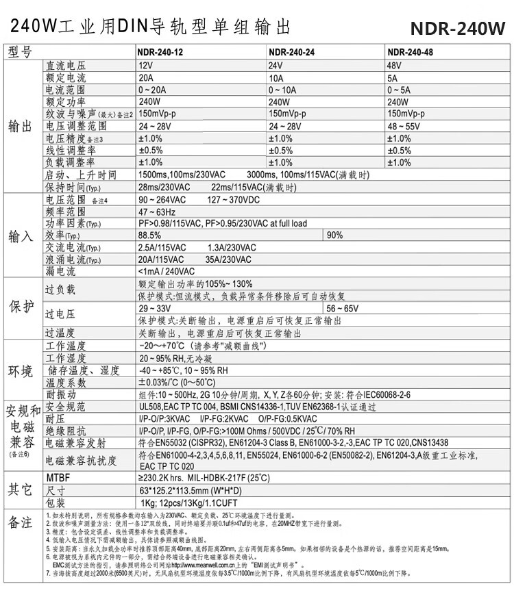 Shenzhen Mingwei EDR/NDR rail-type 24V/12V switching power supply 75/120-240/480W DC 5A10A MDR-60-12|12V5A