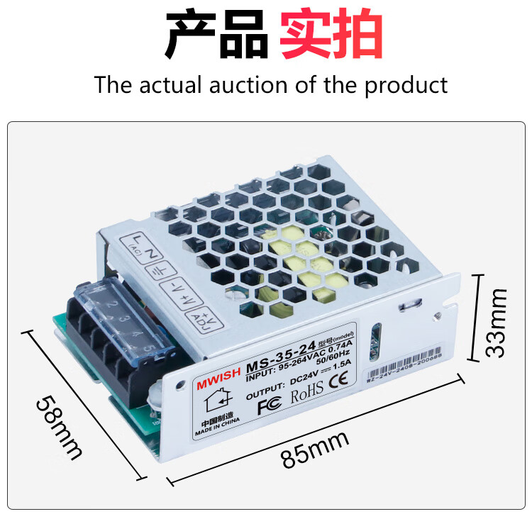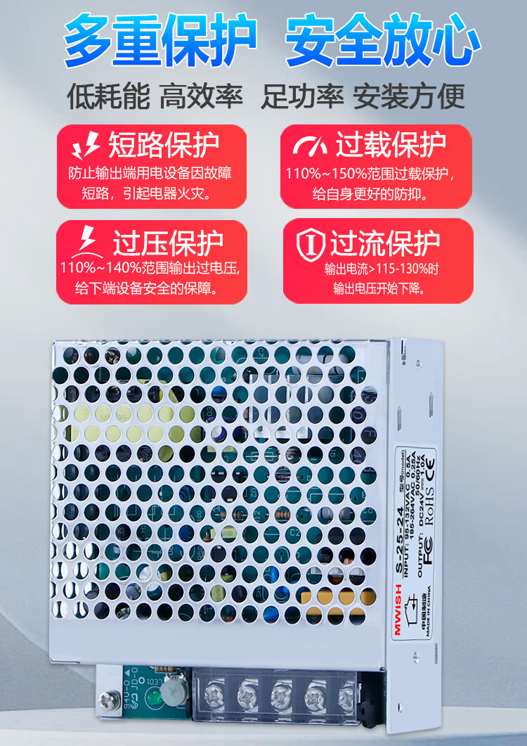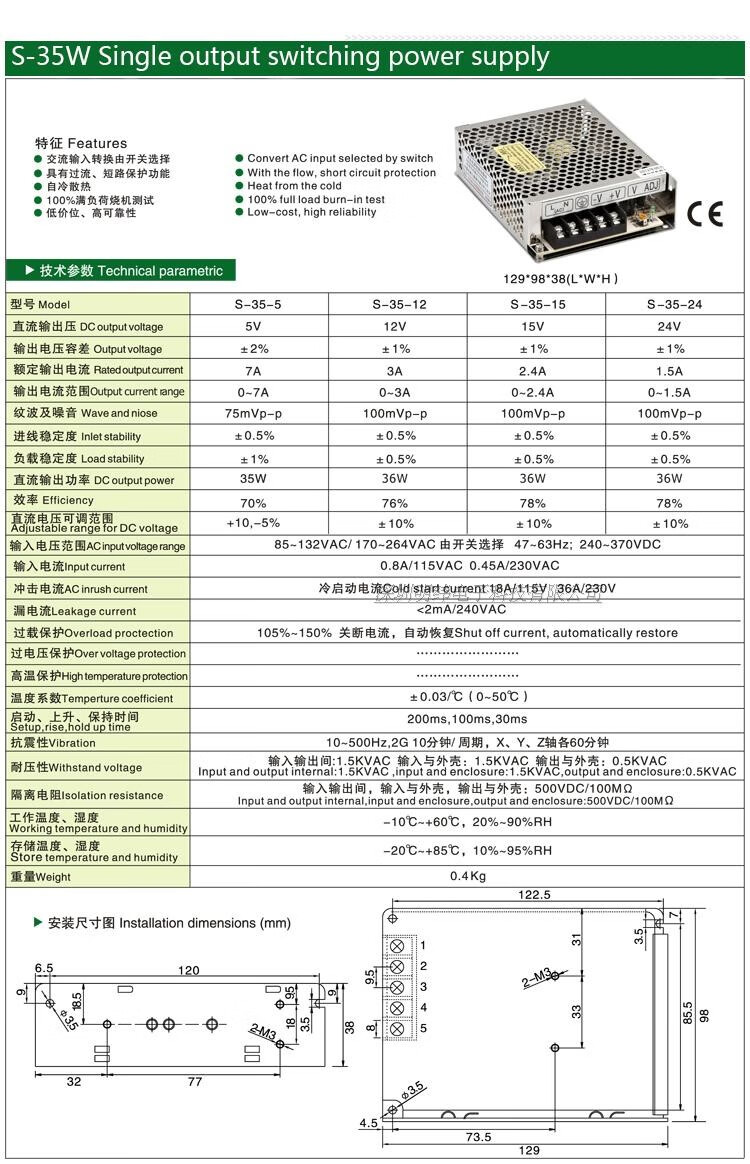 Shenzhen Mingwei S-350W-12V24V36V AC 220 to 48V DC switching power supply adapter transformer S-350-48 | 48V7.3A comes with mounting bracket