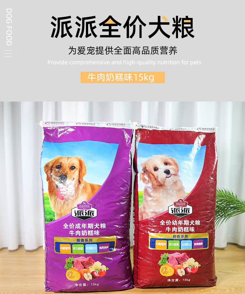 Paipai Dog Food 15kg Golden Retriever Husky Samoyed Labrador Beef Flavored Egg Yolk Milk Cake Adult Dog Food 30Jin Jin equals 0.5kg Paipai Dog Food 20kg Puppy Food 15kg
