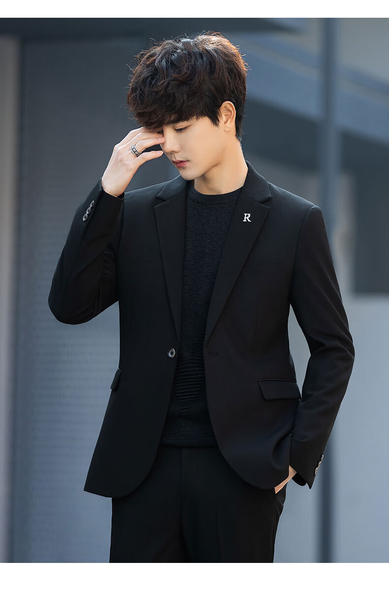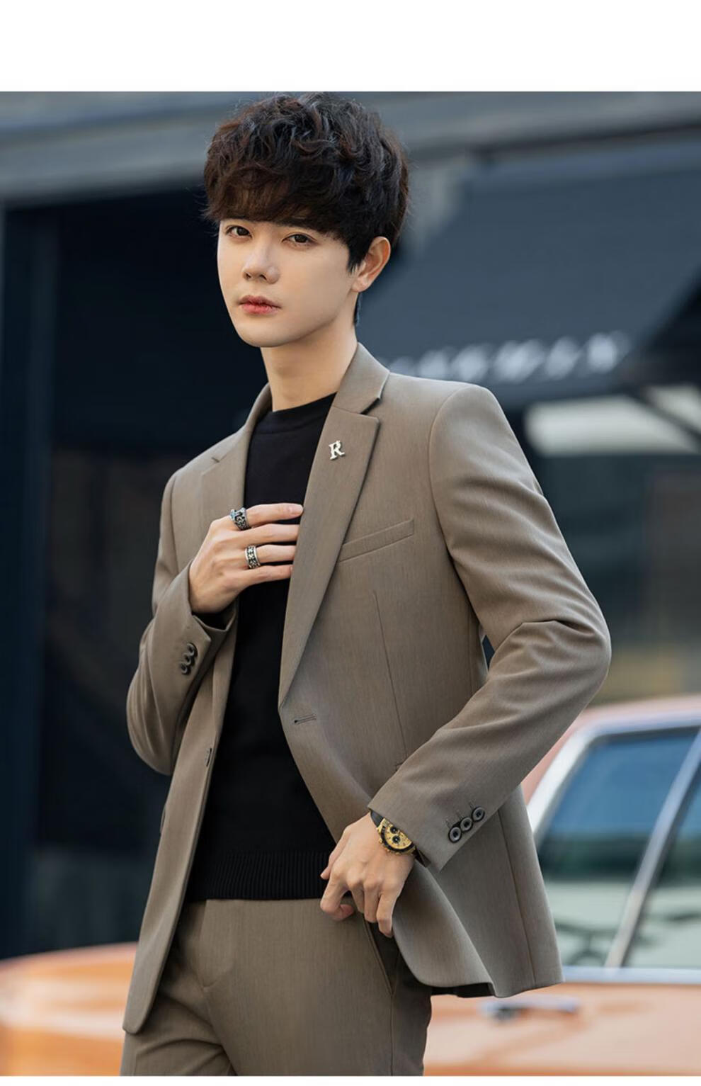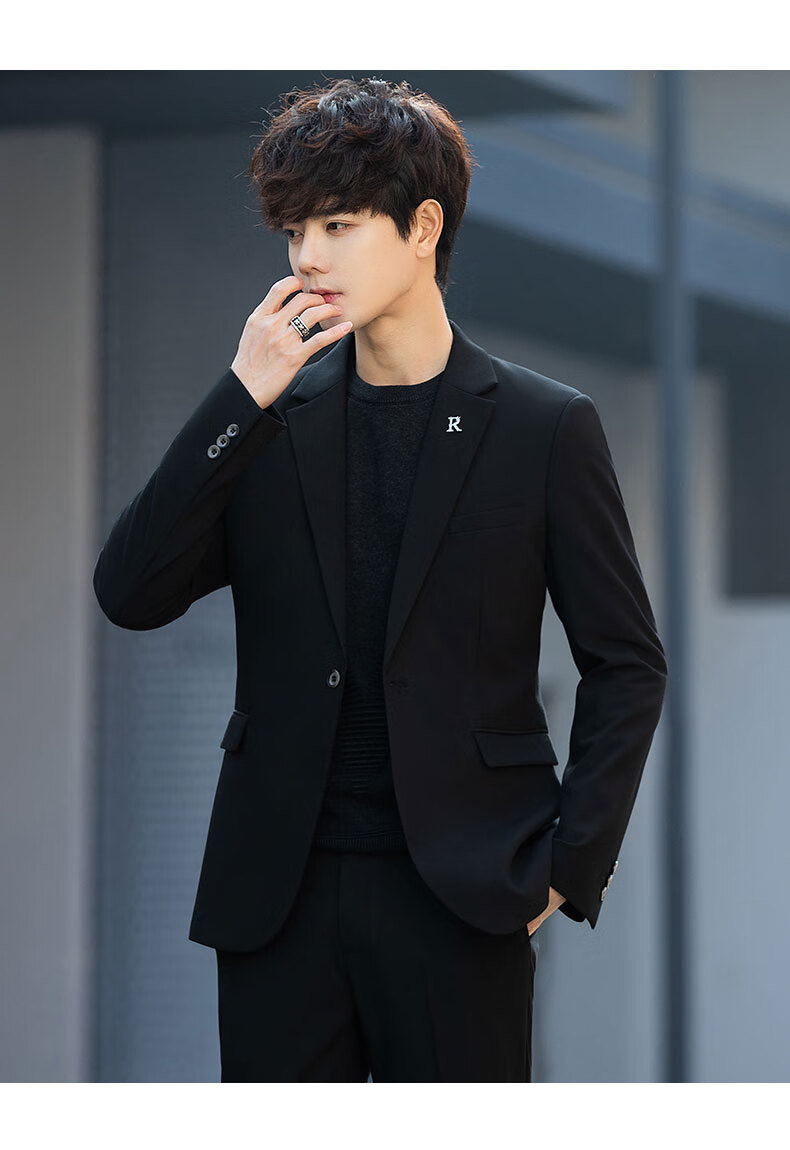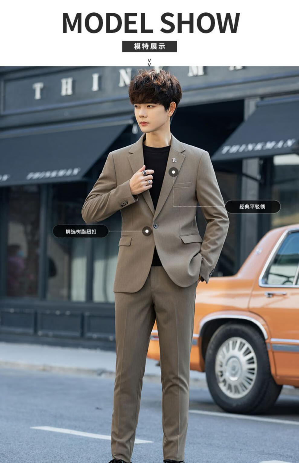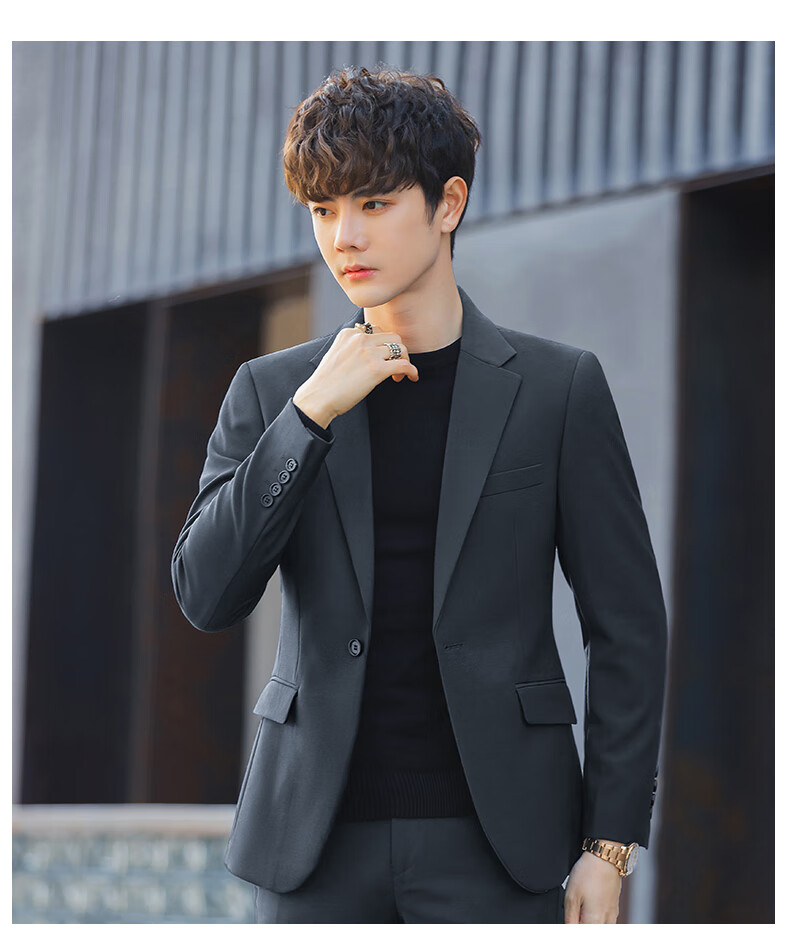 ROMON casual suit suit for men, versatile coat style, Korean style business formal attire, handsome little suit top, new product, blue and gray three-piece suit (top + shirt + pants) M Weight -115Jin Jin is equal to about 0.5 kg