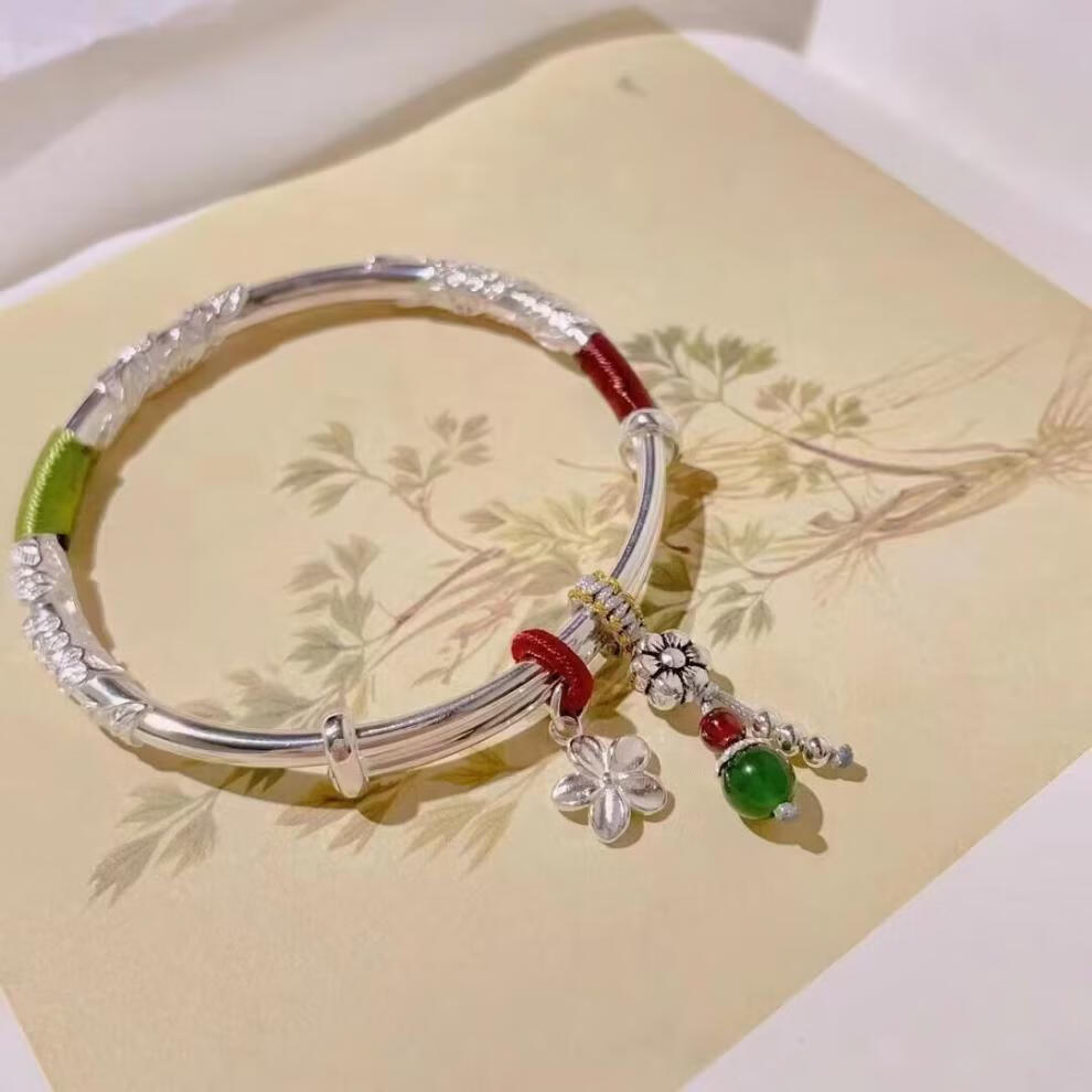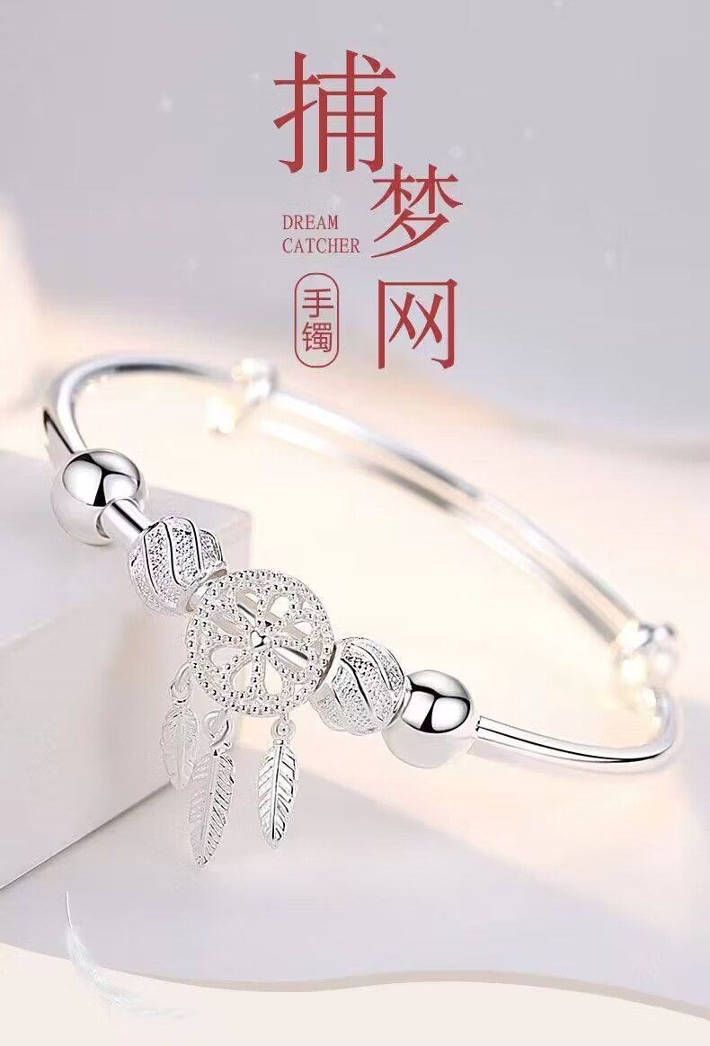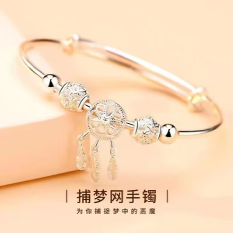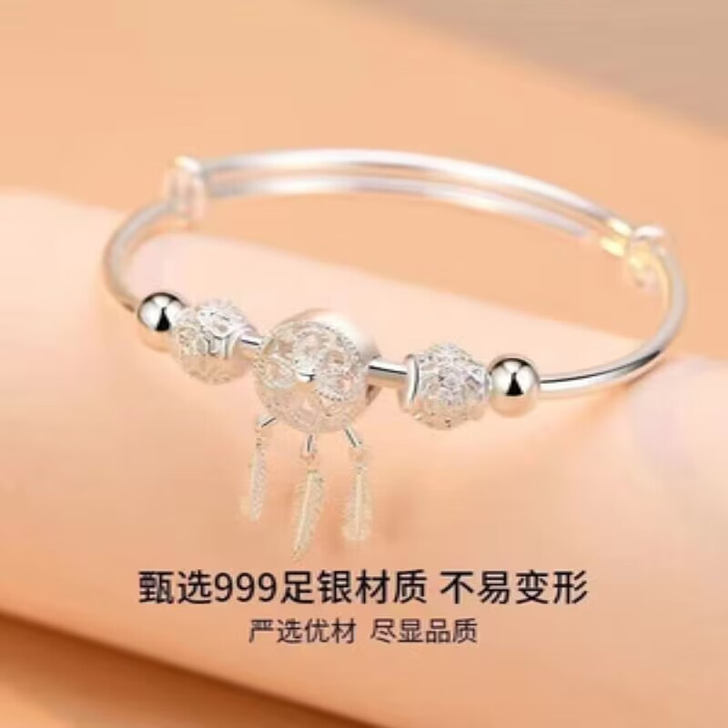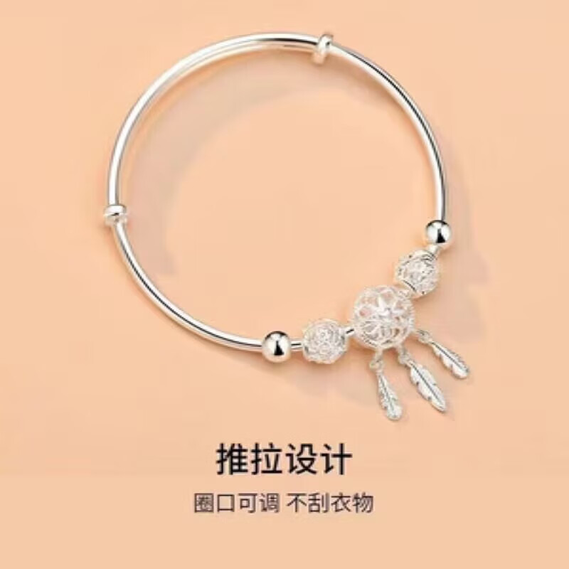 Lao Fengxiang Sansheng III Dream Catcher s9999 sterling silver bracelet niche simple and fashionable gift for girlfriend and lover Lao Fengxiang broken silver bracelet collect and get certificate