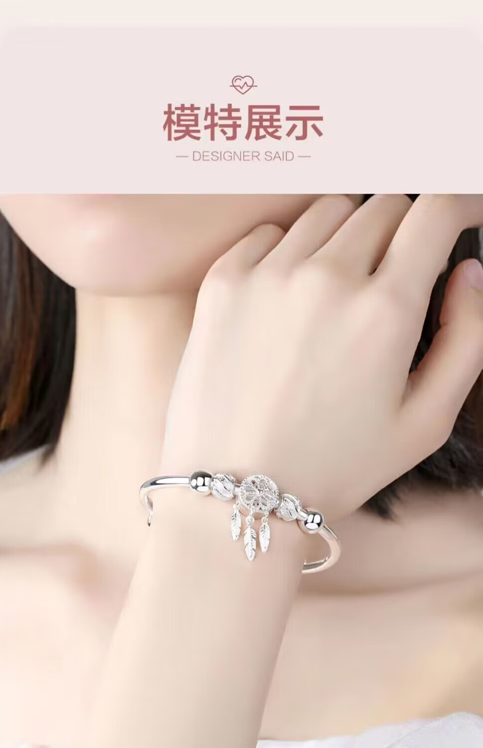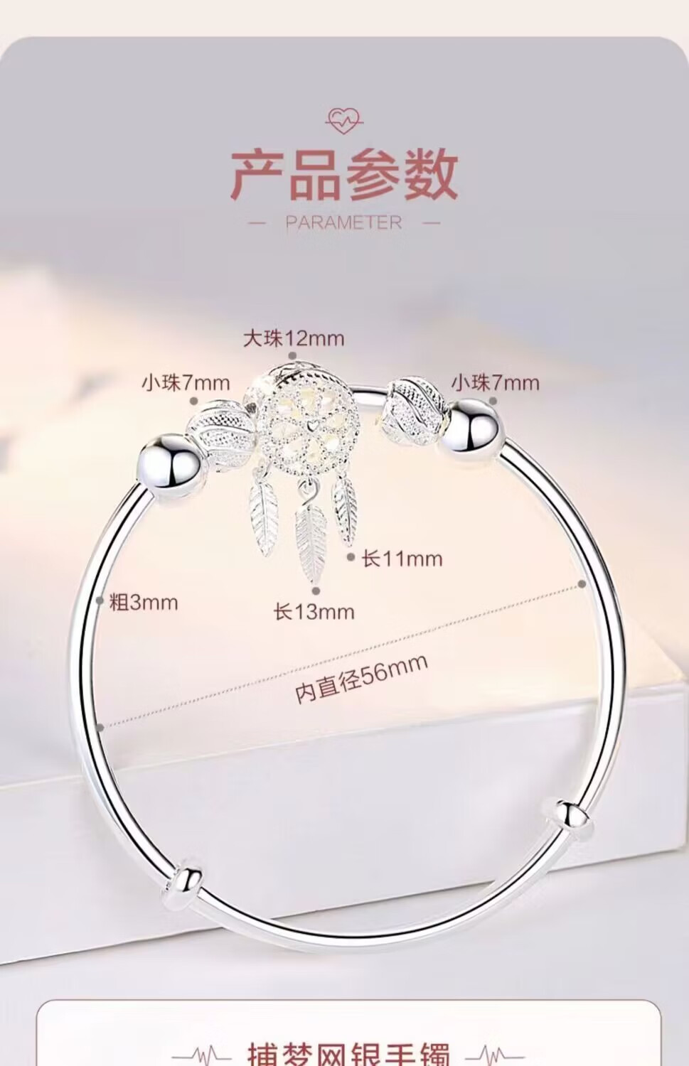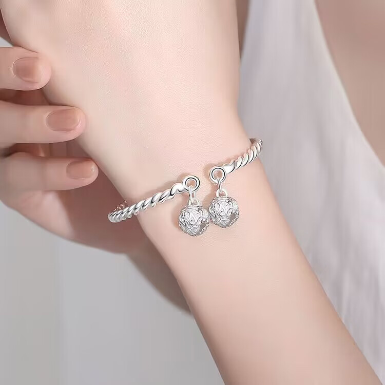 Lao Fengxiang Sansheng III Dream Catcher s9999 sterling silver bracelet niche simple and fashionable gift for girlfriend and lover Lao Fengxiang broken silver bracelet collect and get certificate