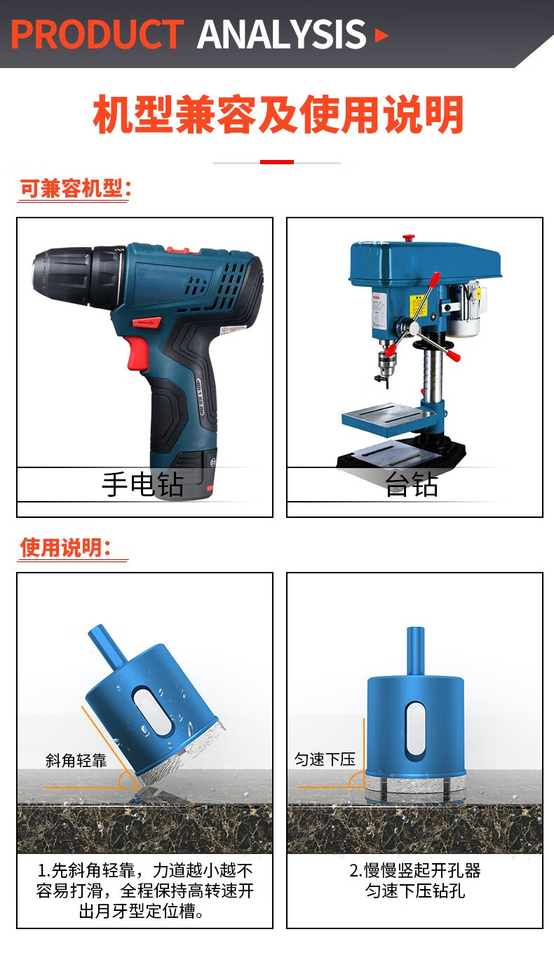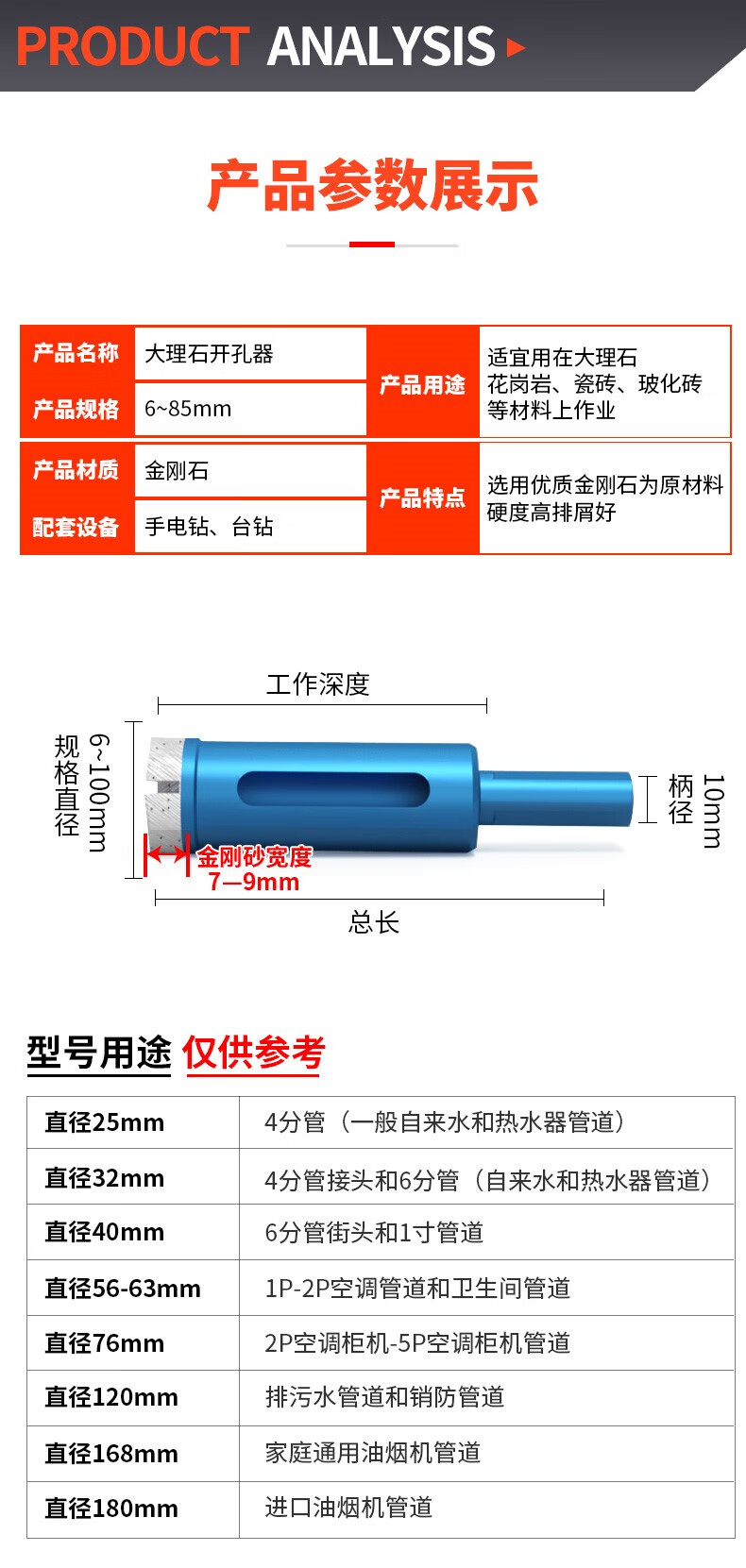 Lansheng marble hole opener granite drill bit glass drill bit stone tile opening stone drilling special punch 6mm 3 pieces