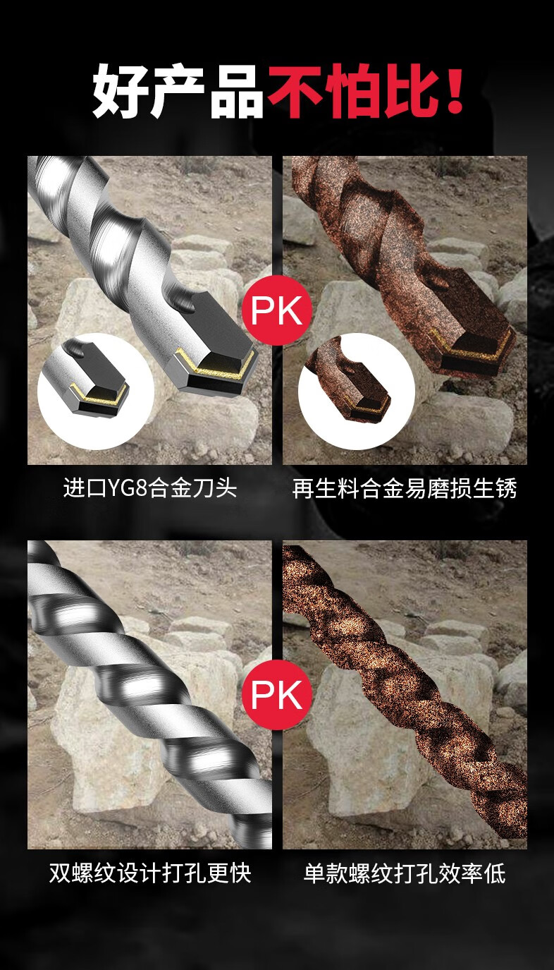 Lansheng extended impact electric hammer drill bit through wall, round handle, two pits, two slots, square handle, four pits, concrete cement wall drilling drill, square handle 8*150mm