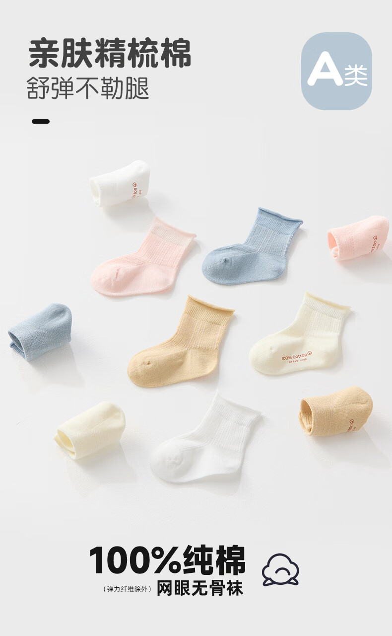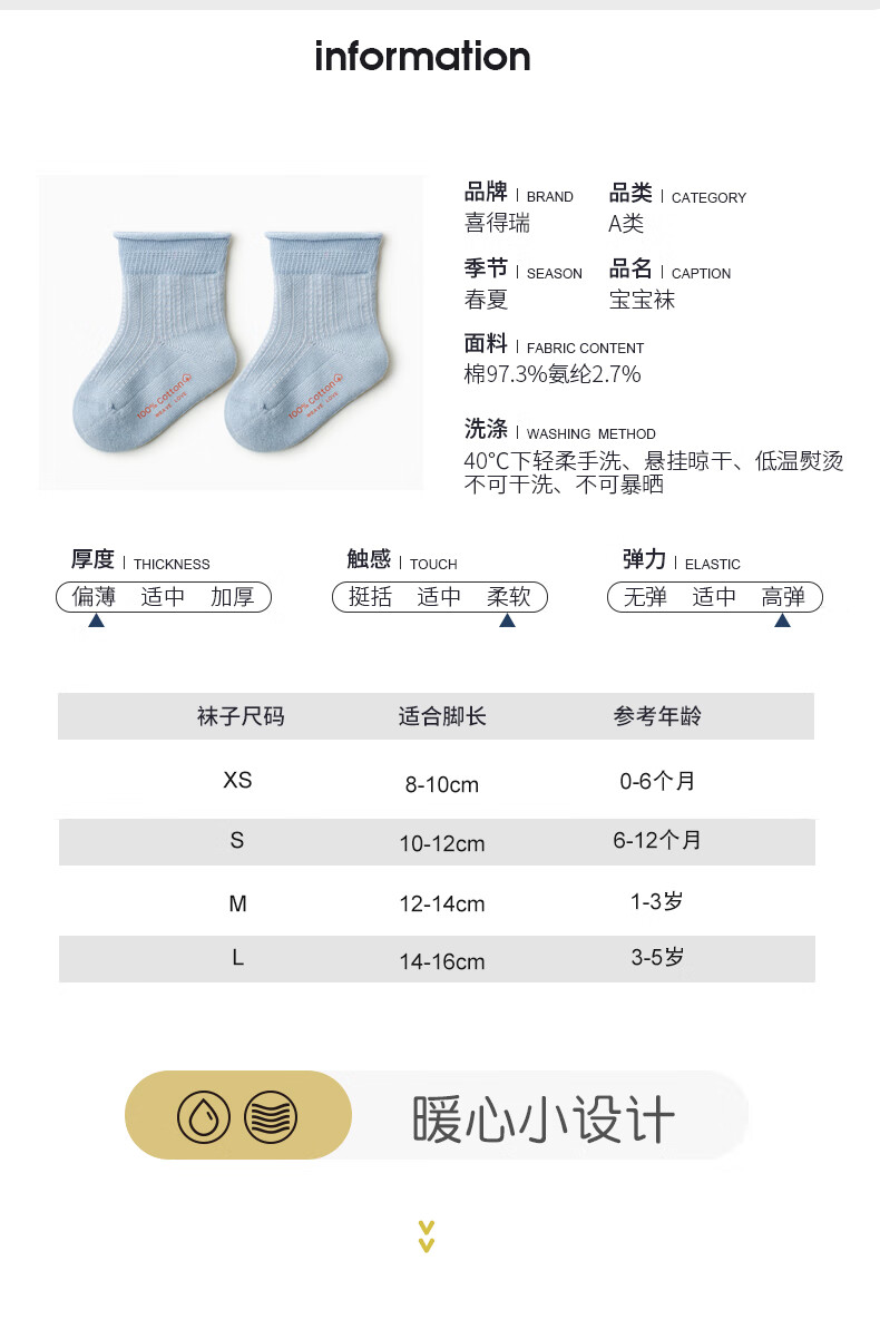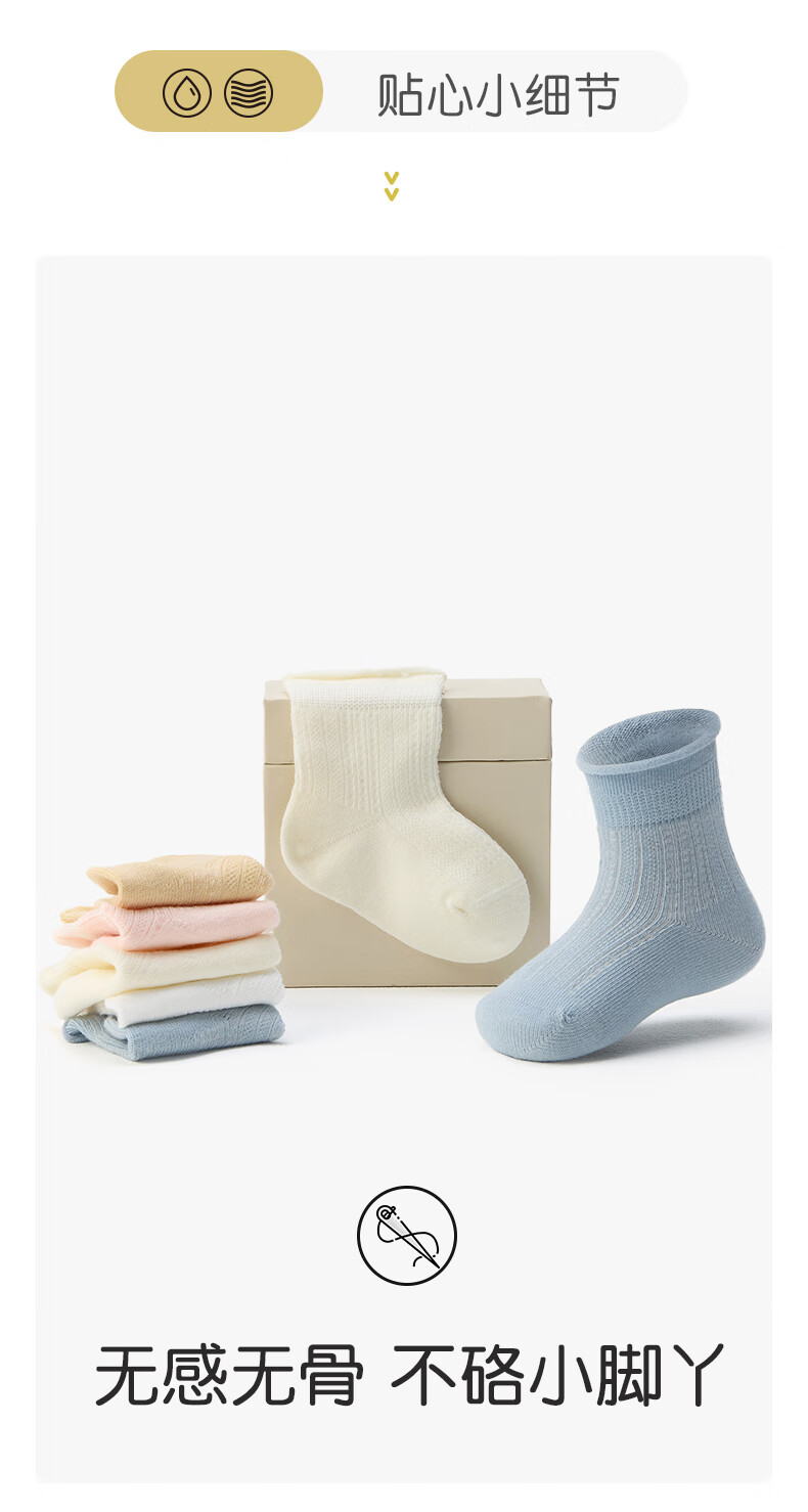 Xiderui Baby Socks Spring and Summer Thin Cotton Newborn Boneless Loose Legs Children's Baby Mesh Socks Blue + Light Yellow + Khaki 3 Pairs 0-6 Months (XS) Recommended Foot Length 8-10CM