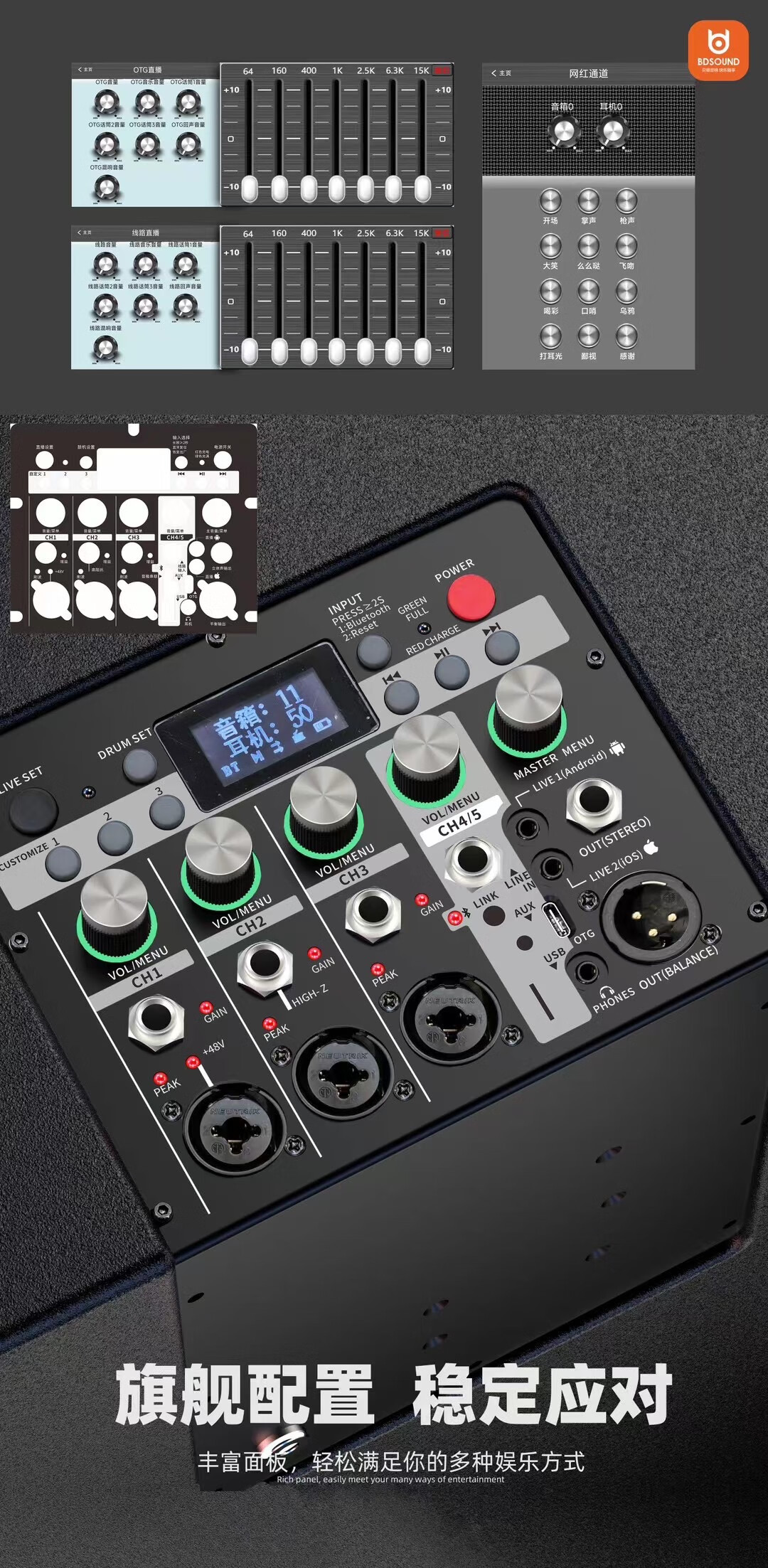 Baddaofeng 1980 outdoor professional performance musical instrument playing and singing karaoke sound card audio column all-in-one machine high-power school square small and medium-sized activities mobile stage roadshow audio BD-H1980A outdoor version
