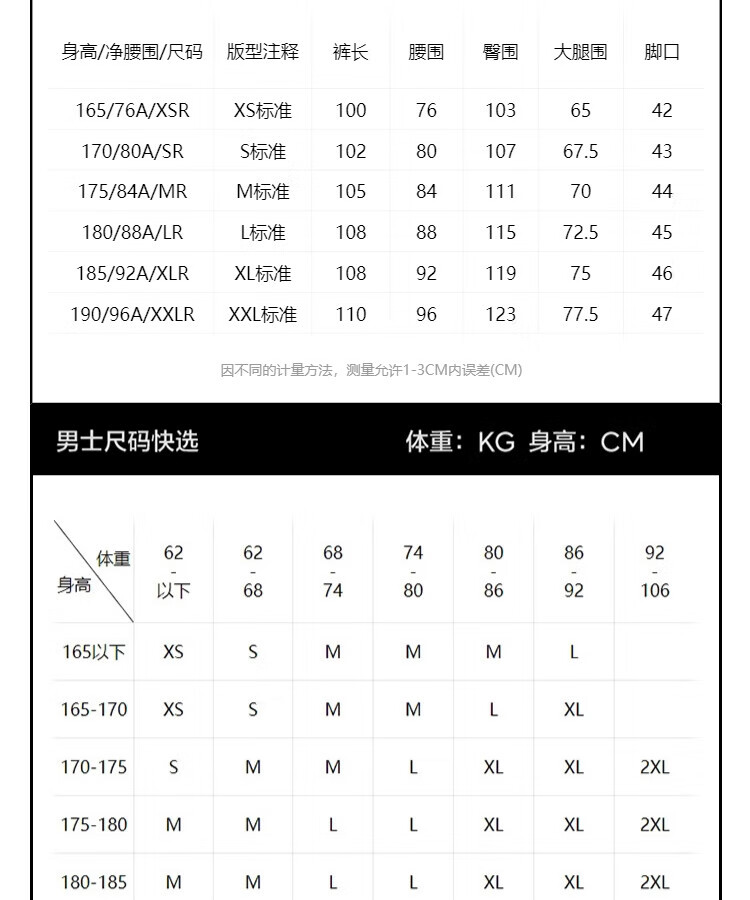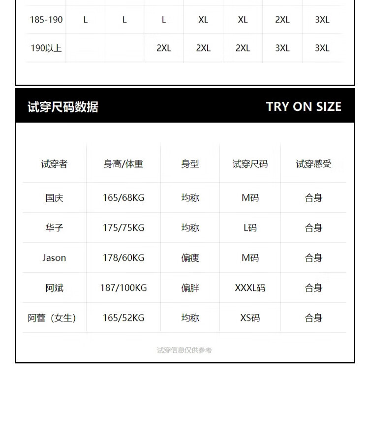 China (cm) 160-165/84-86 165-170 / 88-90 167-172 / 92-96 168-173 / 98-102 170-176 / 106-110